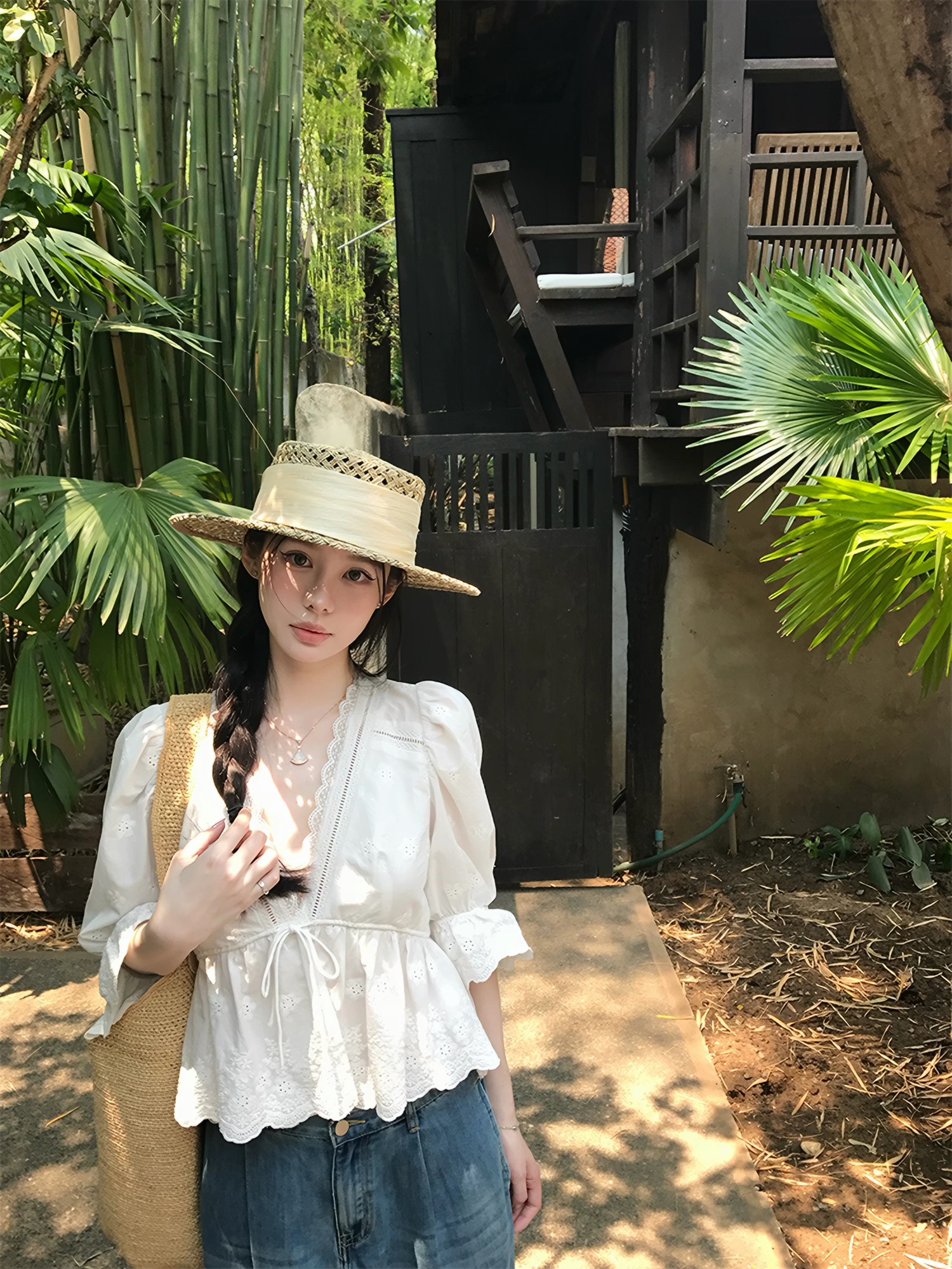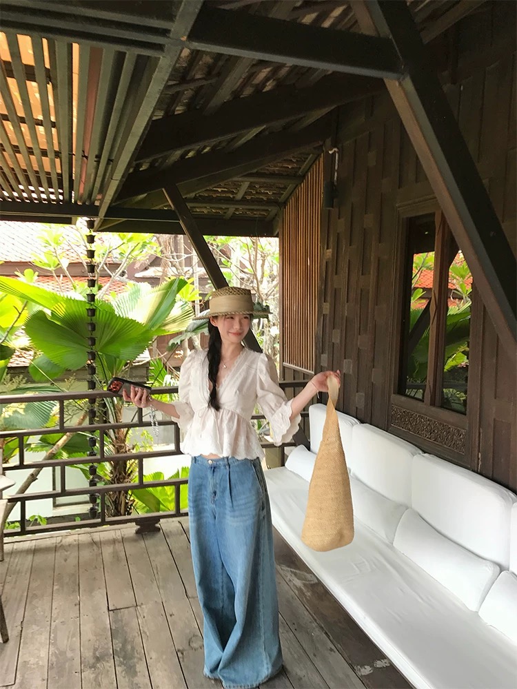 하나 오노 라스베리 프랑스식 부드러운 바람 민소매 셔츠 여성 여름 새로운 고급 센스 몸매 가꾸기 연령 감소 품격 세트