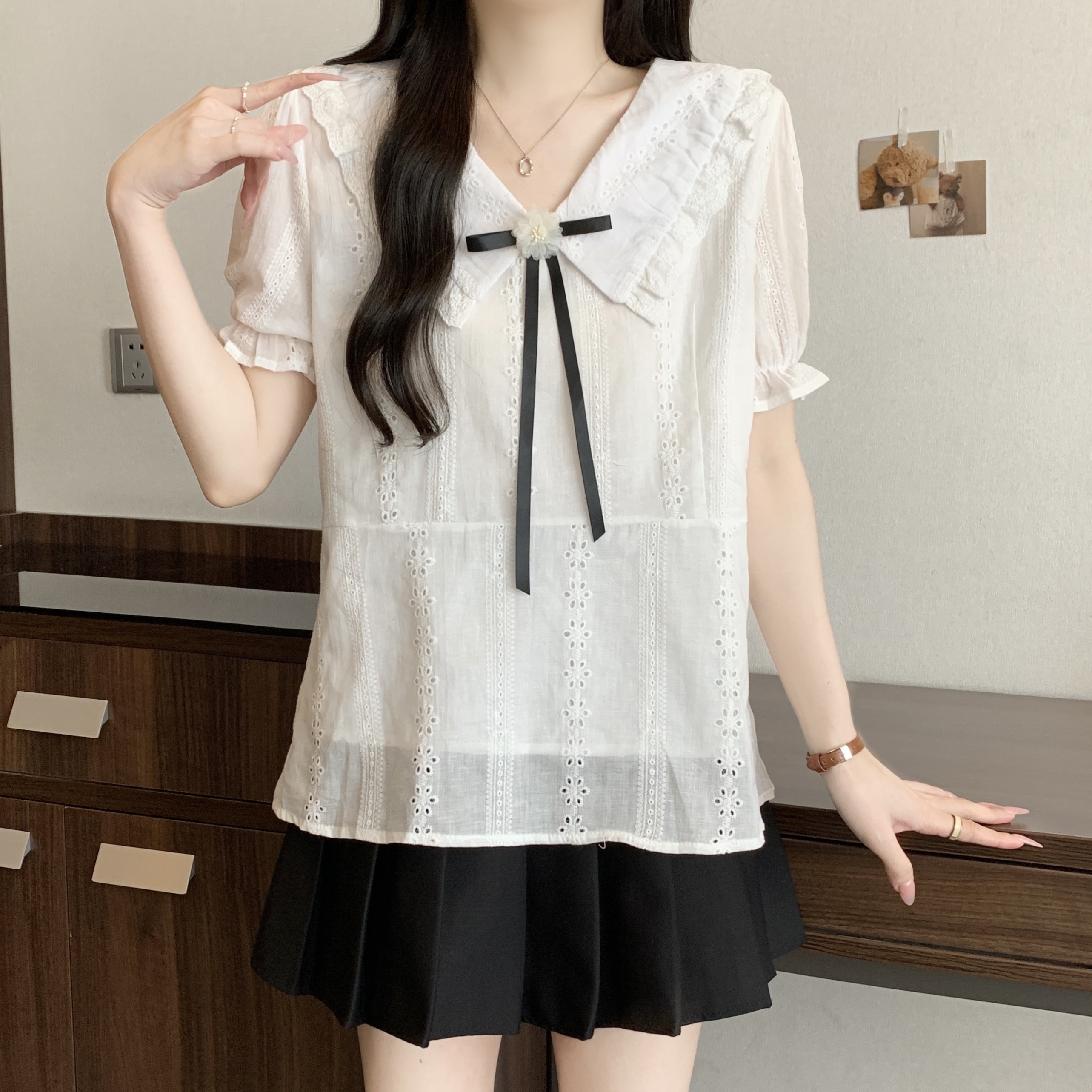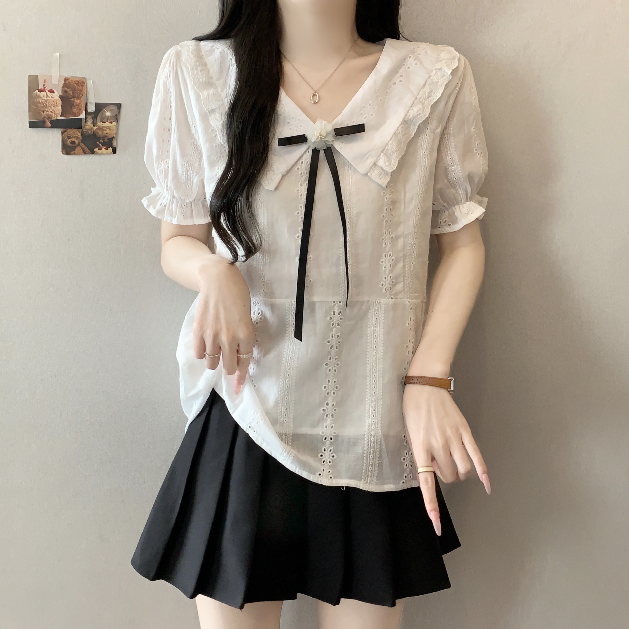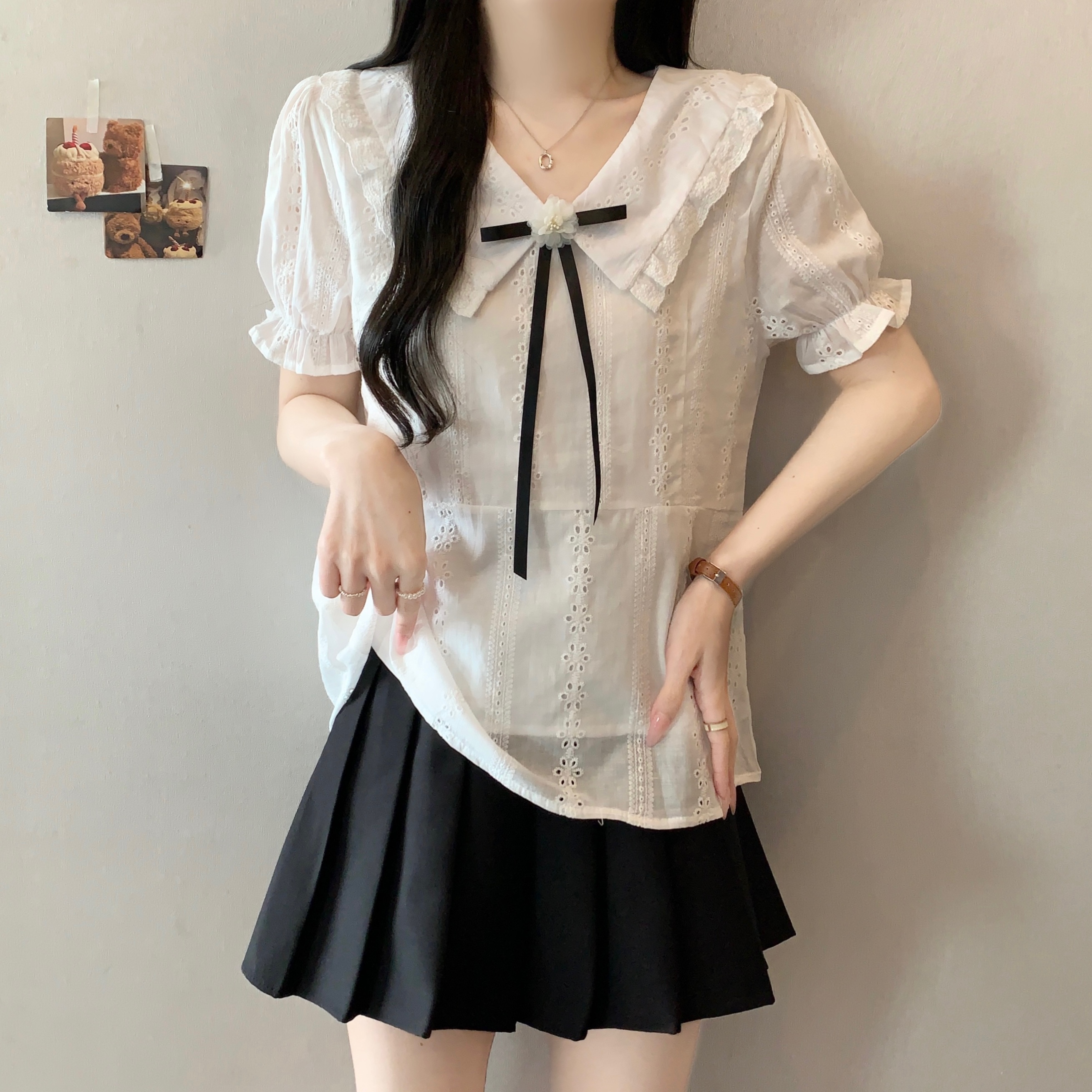 실사 2026 새로운 빅 사이즈 여성 의류 지방 mm 프랑스식 디자인 센스 인형 셔츠 광장 칼라 표지 배 슬림해 보이는 다용도 맨위