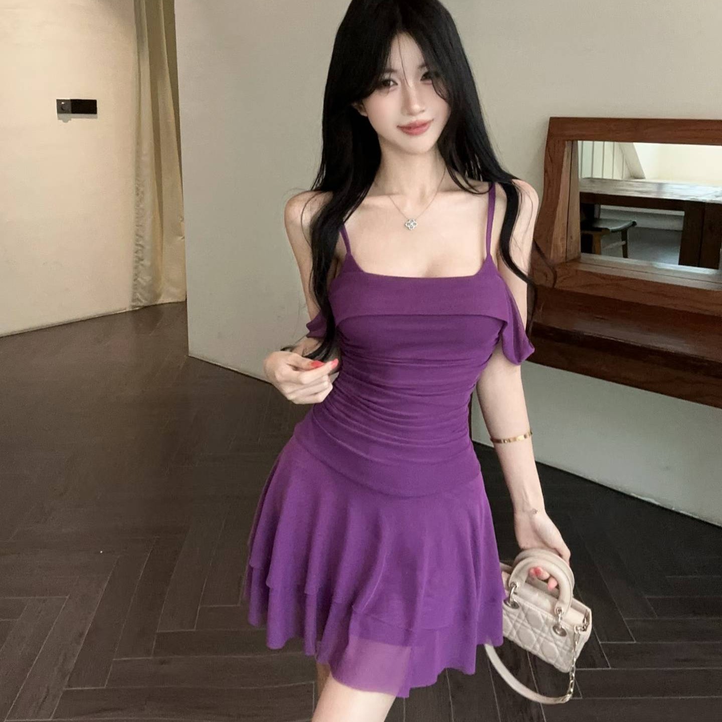 실사 섹시함 핫걸 튜브탑 망사 드레스 순수한 욕망 바람 디자인 센스 몸매 가꾸기 슬림해 보이는 오프숄더 롱 스커트