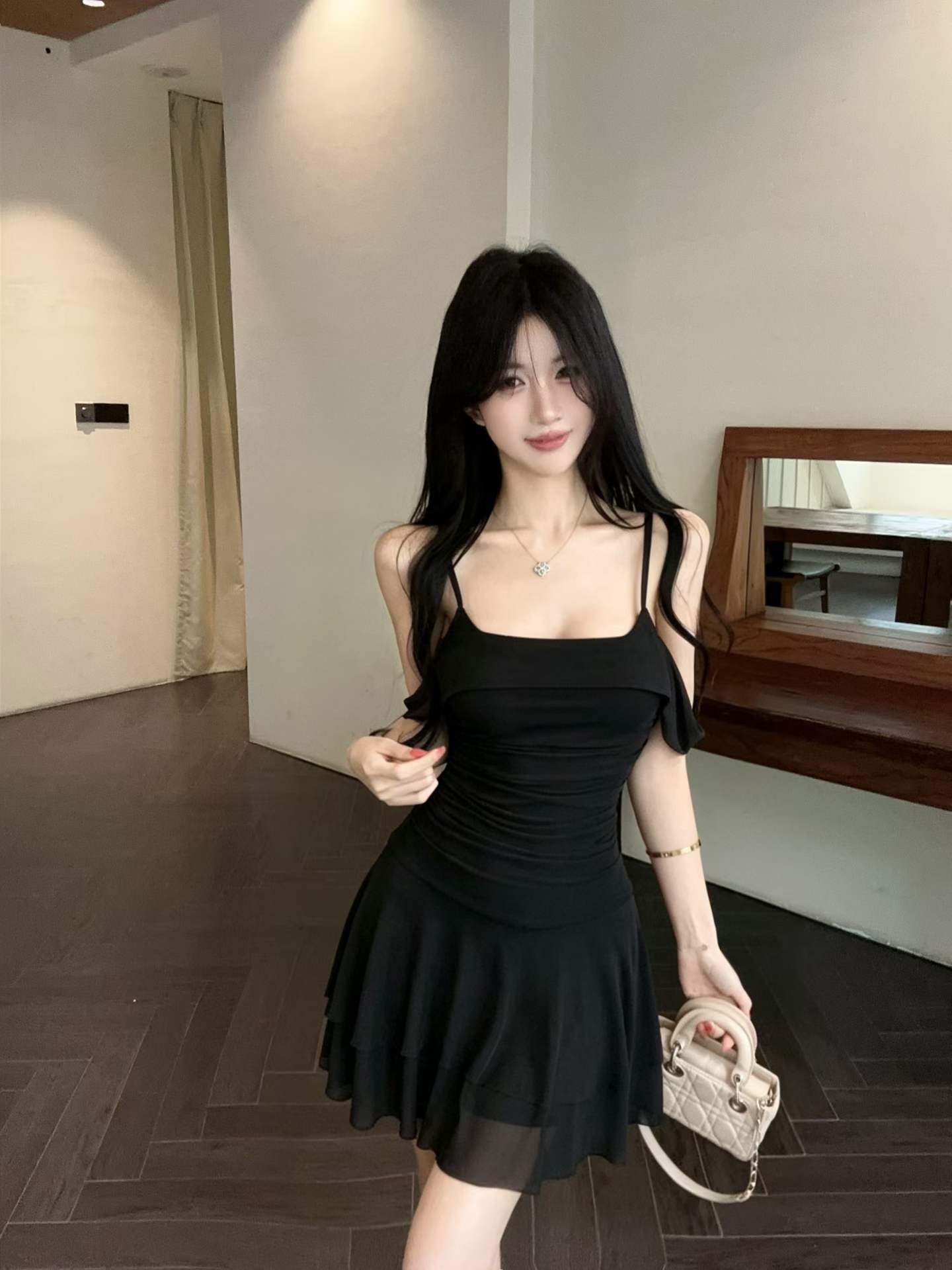 실사 순수한 욕망 섹시함 프릴 쇼트 스타일 타이트 스커트 배색 드레스 복장
