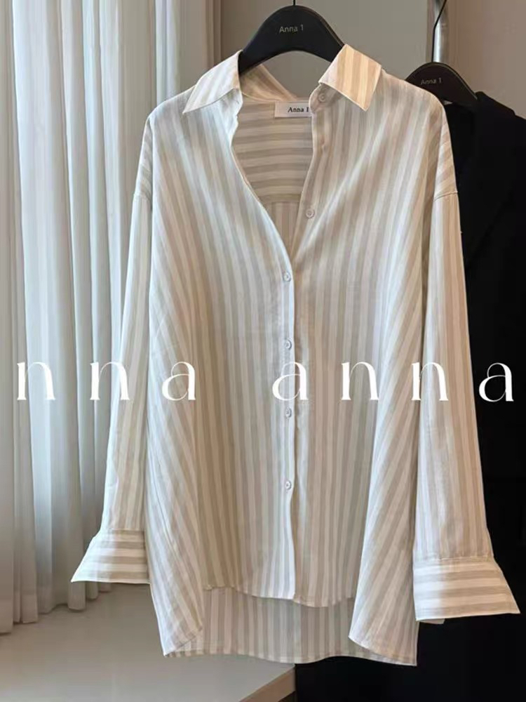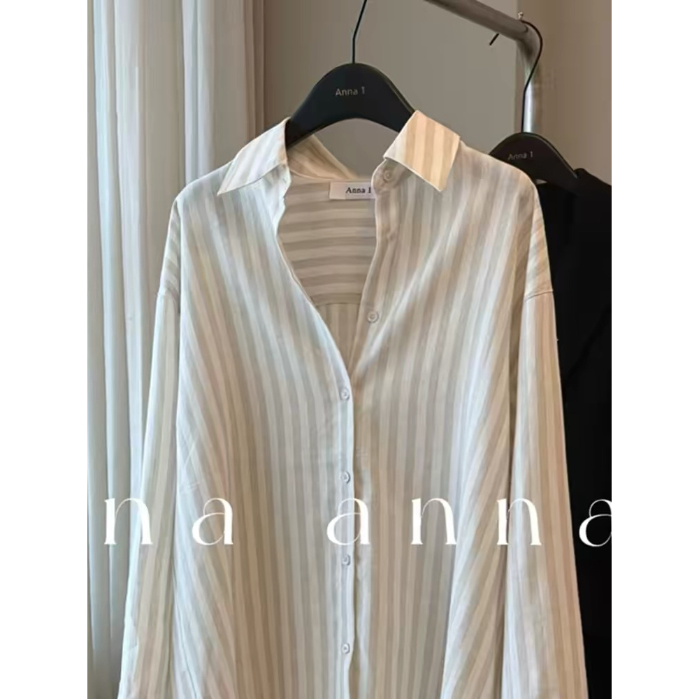 자외선 차단 의류 여성 2026 새로운 스트라이프 셔츠 재킷 여름 긴팔 느긋한 바람 마이크로 ~을 통해 자외선 차단 셔츠 맨위 트렌디