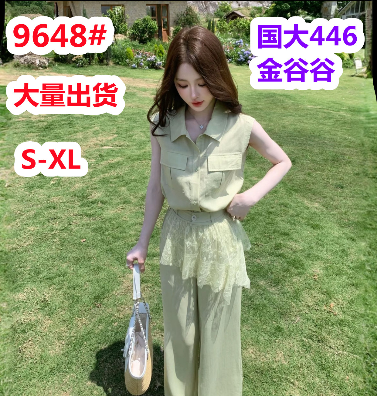 heygirl 블랙 형제 니켈 맛 outfit 프릴 민소매 셔츠 조끼 베스트 맨위 와이드 레그 팬츠 세트