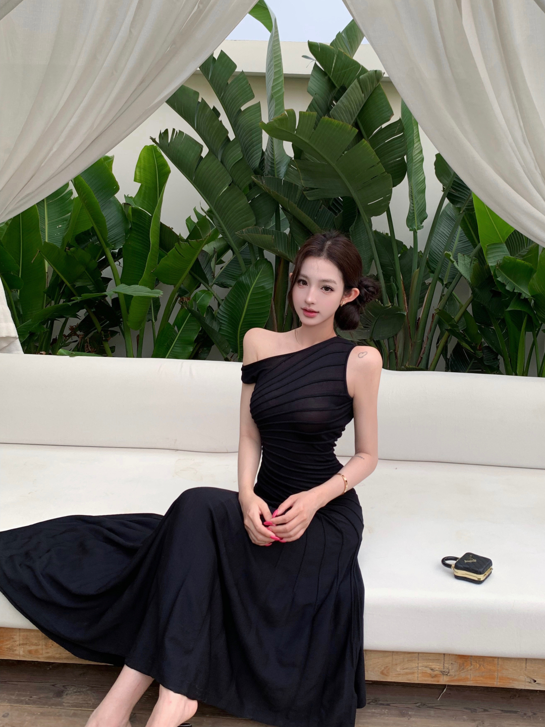 실사 정가 감기 센스 3 차원 명중 Pleat 튜브탑 여성 드레스 여름 새로운 캐주얼 세련된 롱 스커트