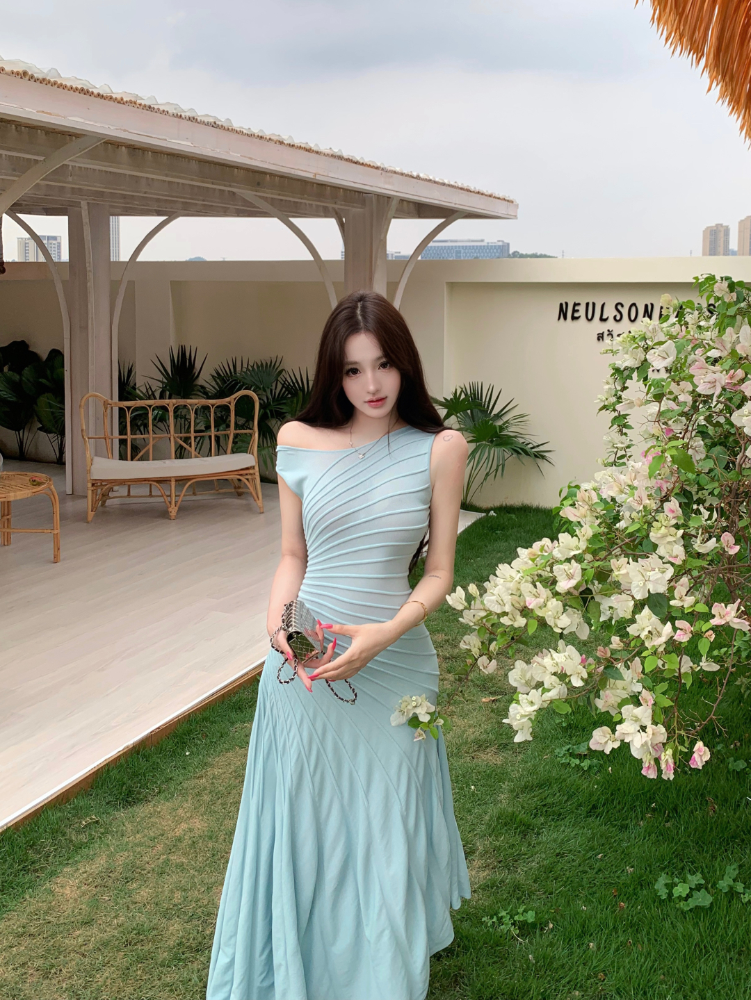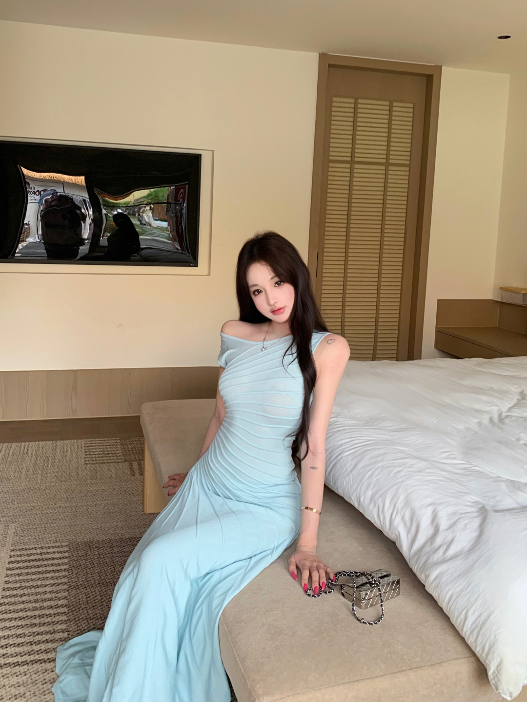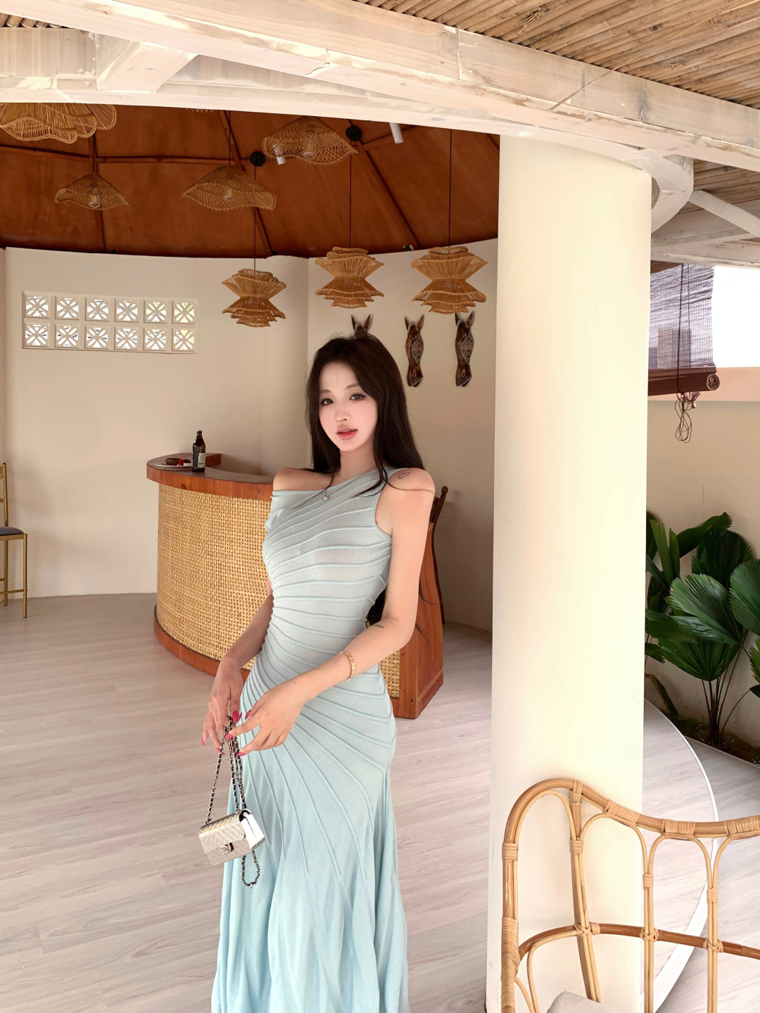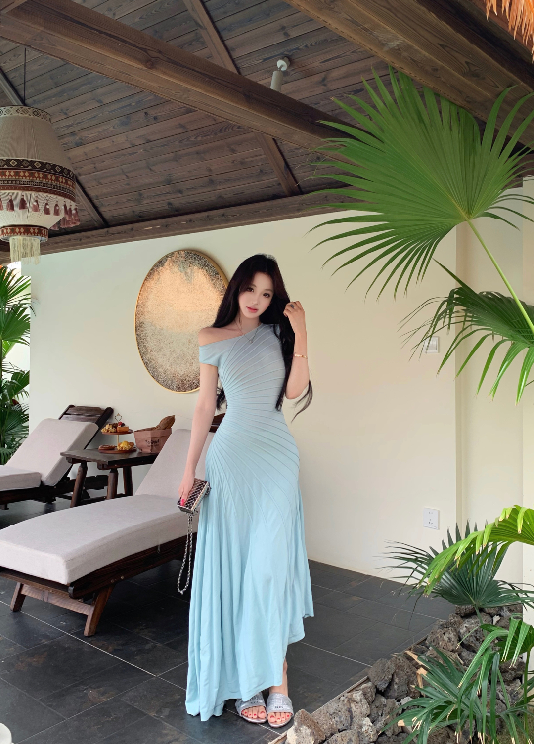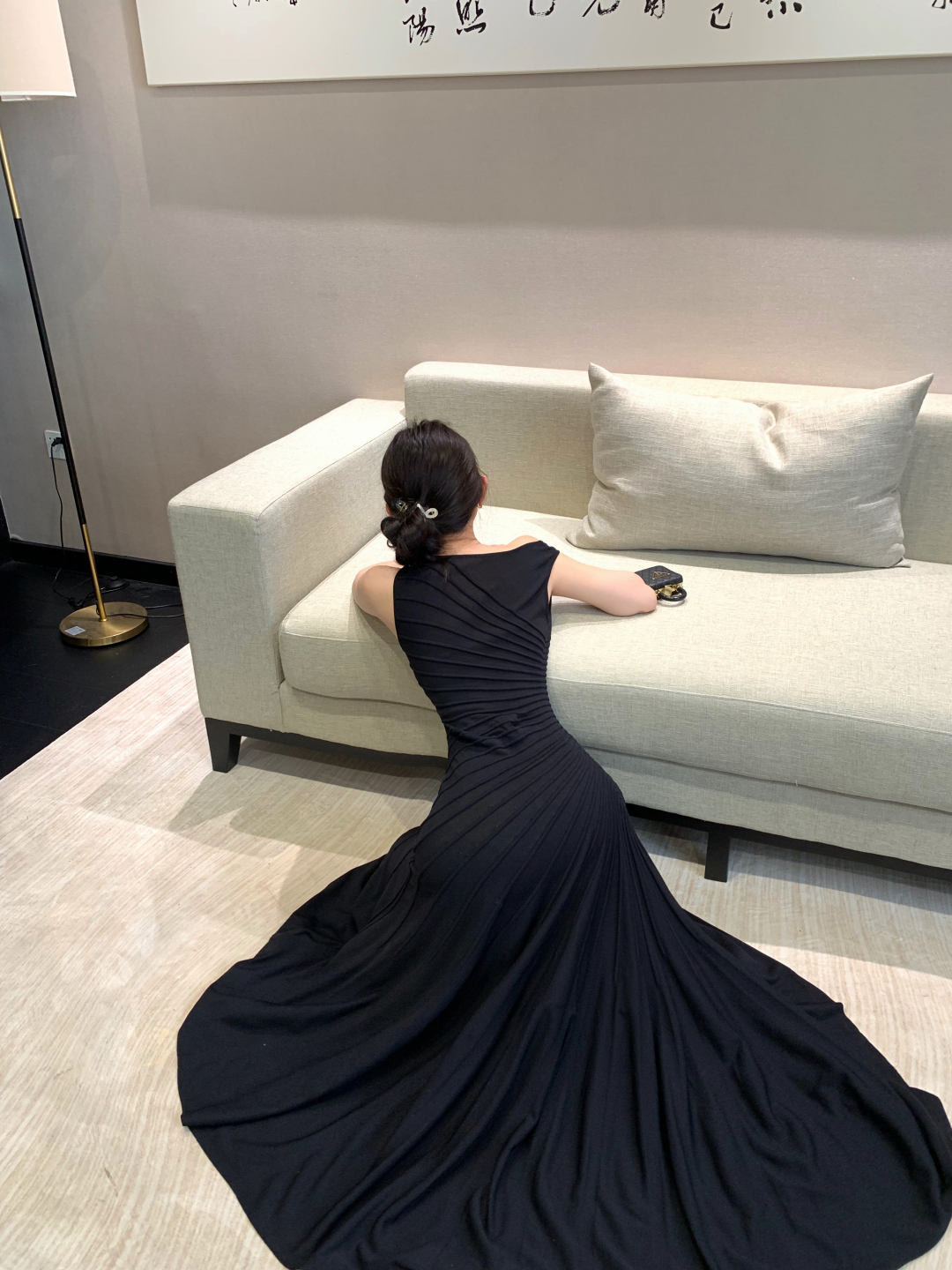 실사 정가 로얄 블루 휴가 바람 여성 드레스 몸매 가꾸기 슬립 백리스 인어 꼬리 타이트 스커트 생일 예복 롱 스커트