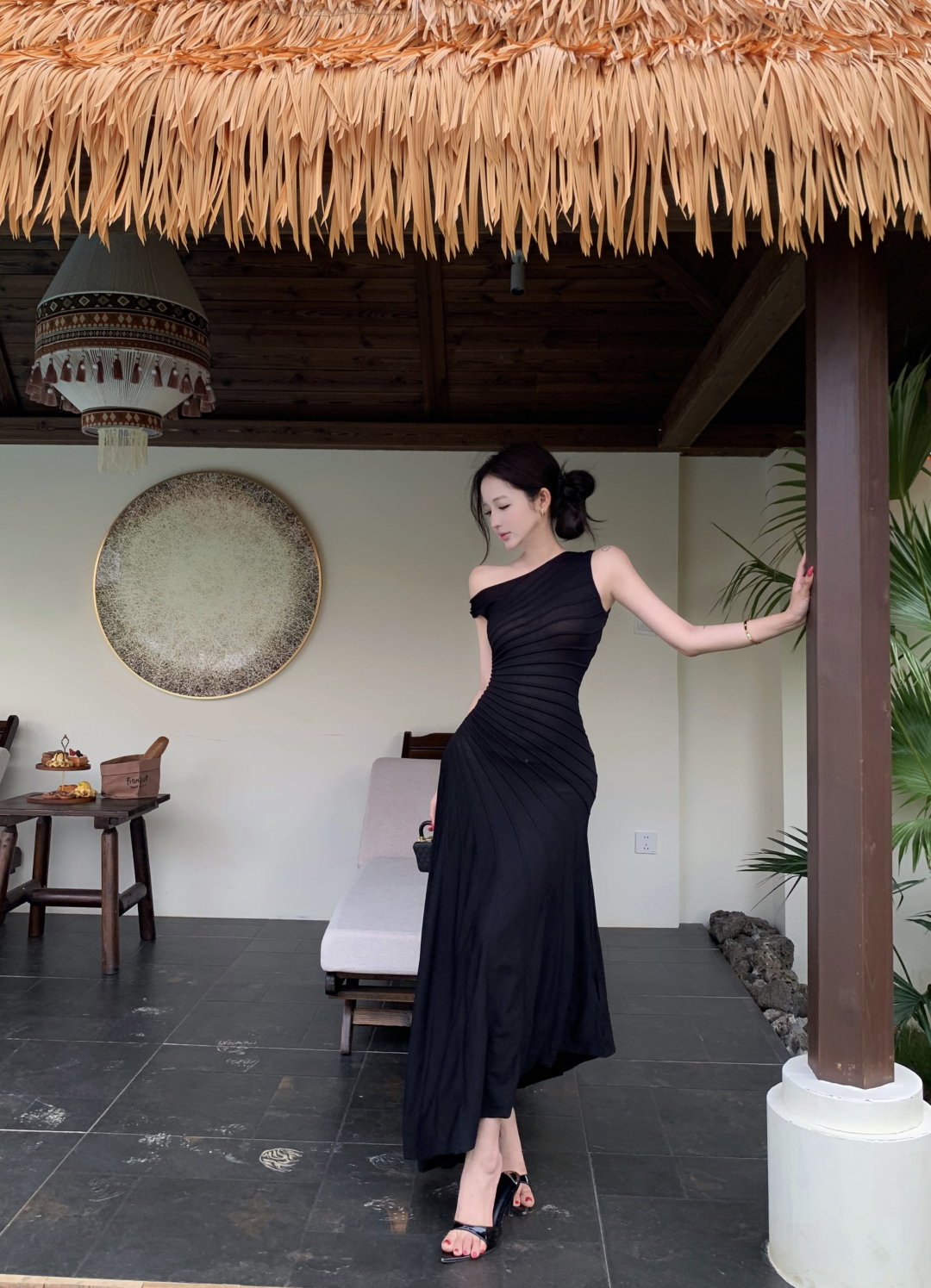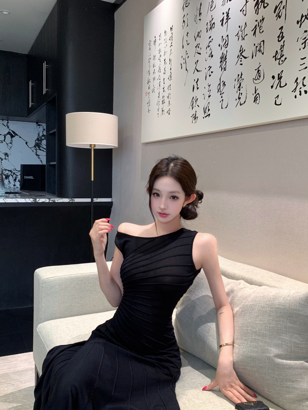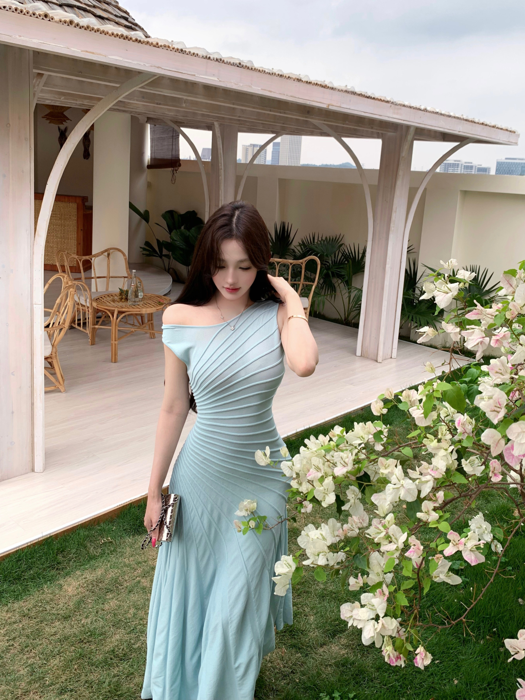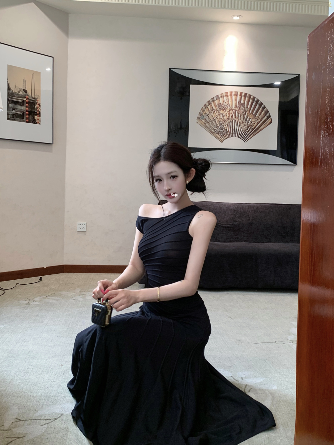 실사 정가 사설 서비스 한 여성 회색 행침 목 몸매 가꾸기 케이크 드레스 섹시함 핫걸 허리 수축 민소매 쇼트 스타일 드레스