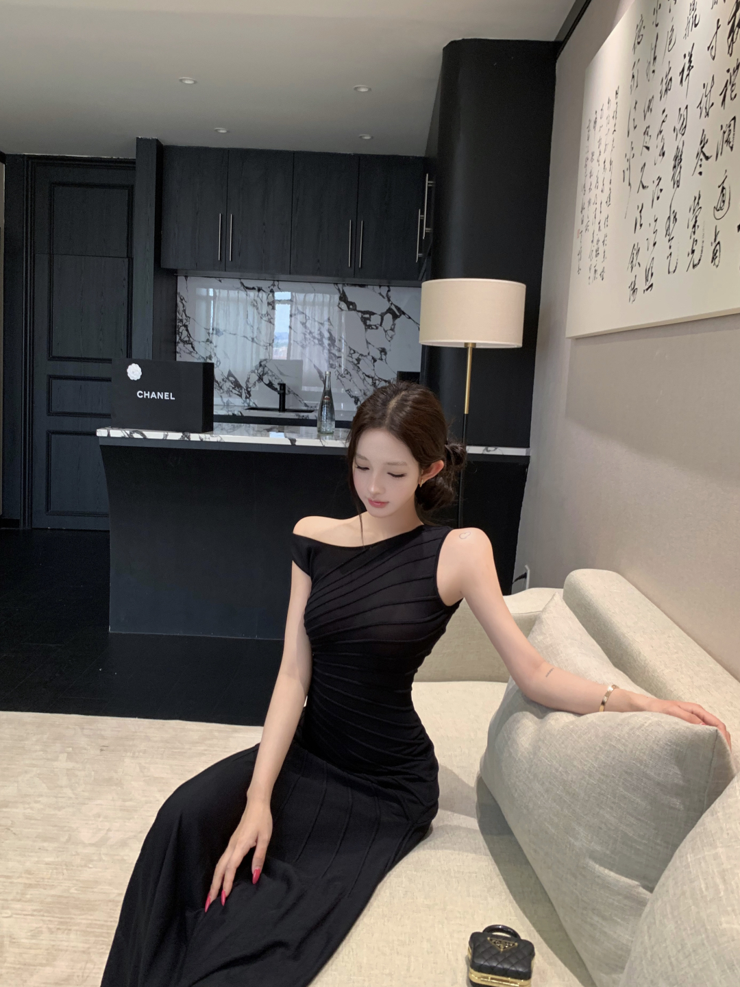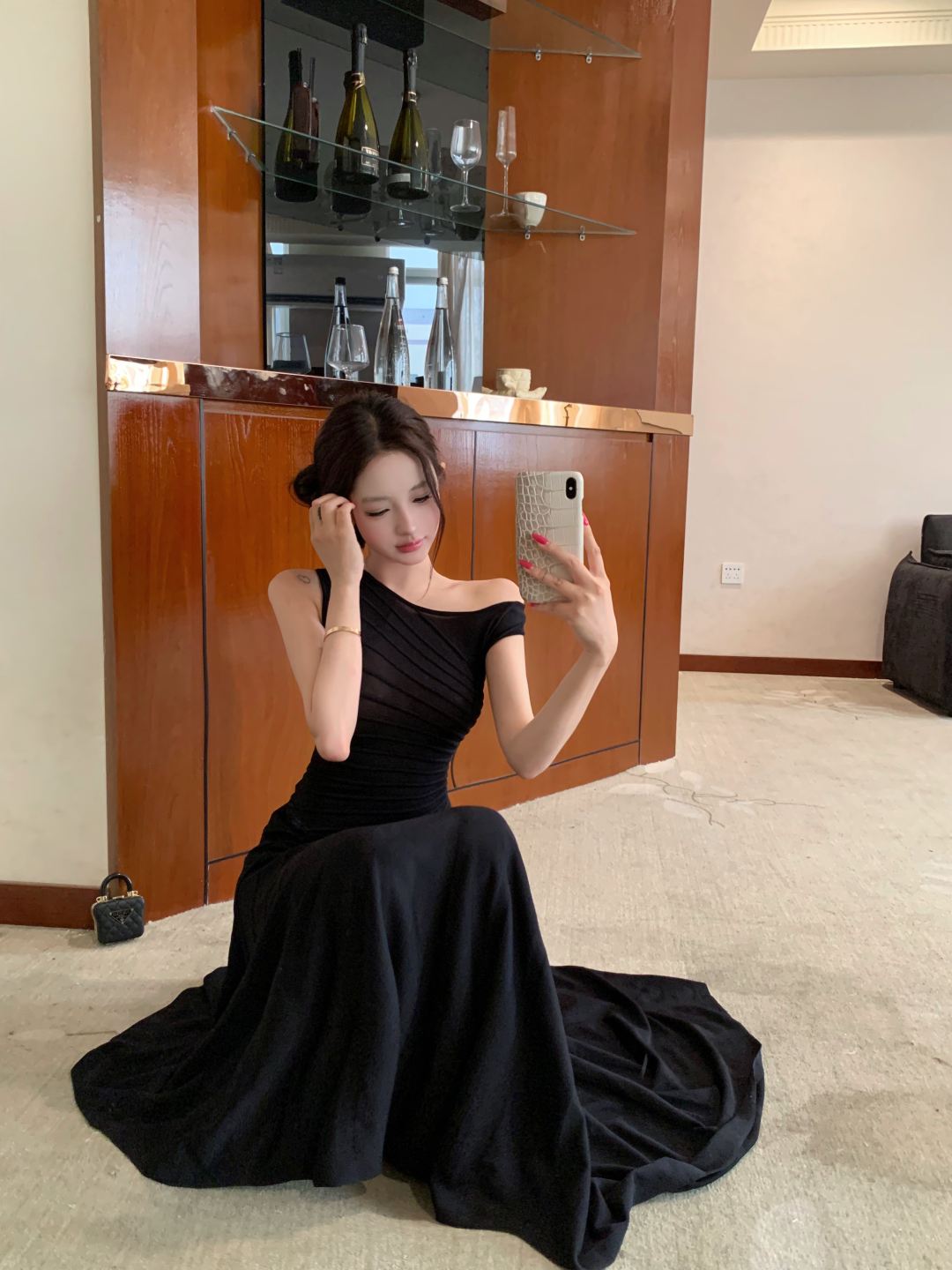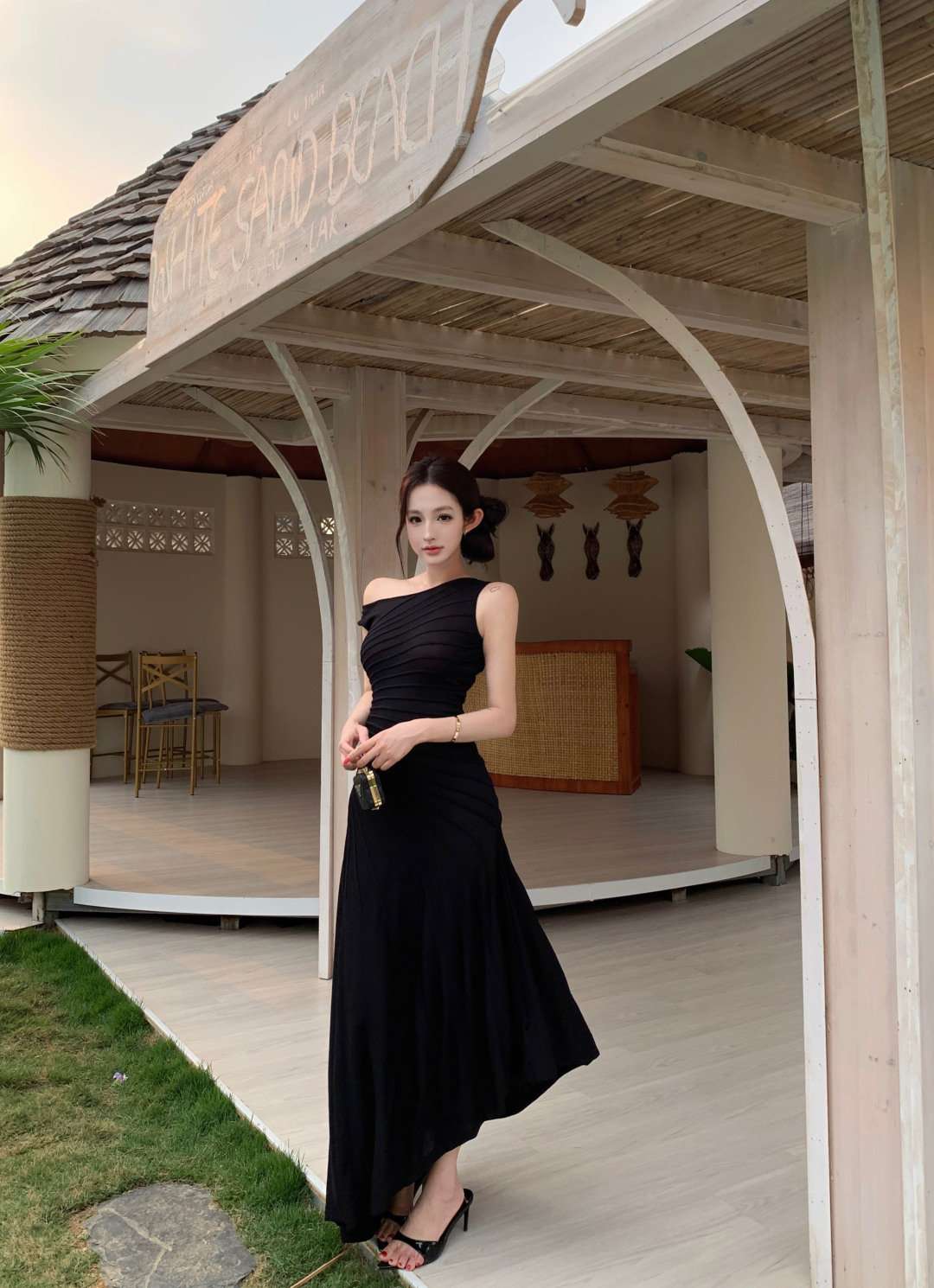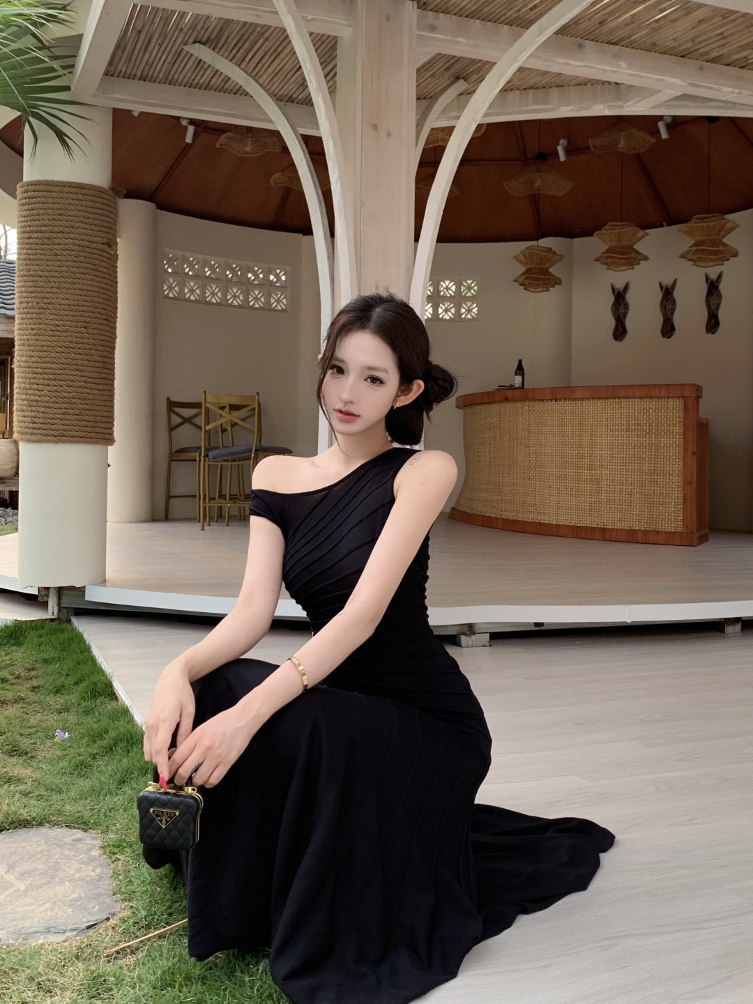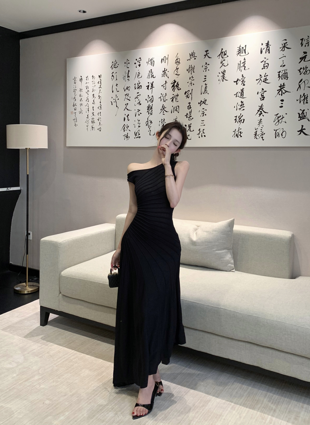 실사 정가 사설 서비스 한 여성 회색 행침 목 몸매 가꾸기 케이크 드레스 섹시함 핫걸 허리 수축 민소매 쇼트 스타일 드레스