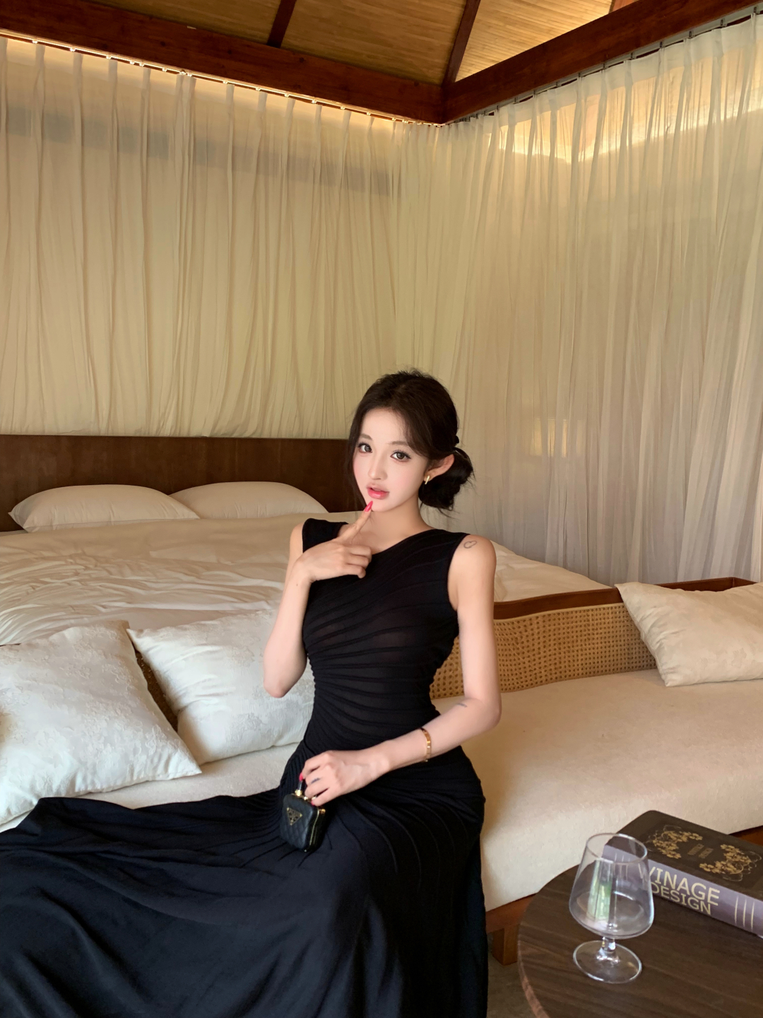 실사 정가 이슬 실크 착용 가져 가라. 시스루 홀로우 아웃 V넥 긴팔 자외선 차단 블라우스 명중 가져 가라. V넥 슬립 드레스