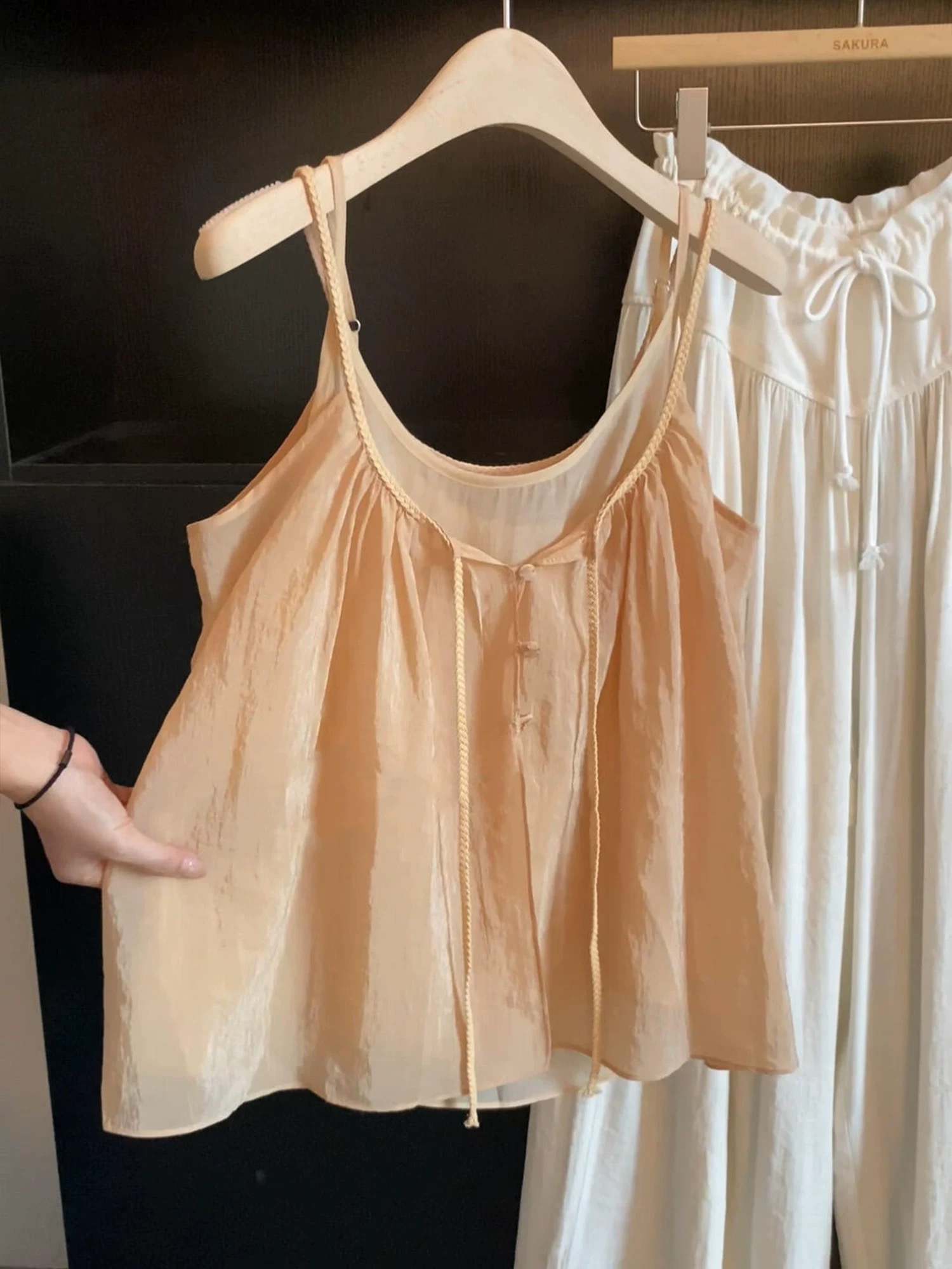있음 도착 녹색 행침 목 작은 슬링 조끼 여성 여름 핫걸 착용 가져 가라. 디자인 센스 외출용 민소매 아름다움 뒤쪽에 의류