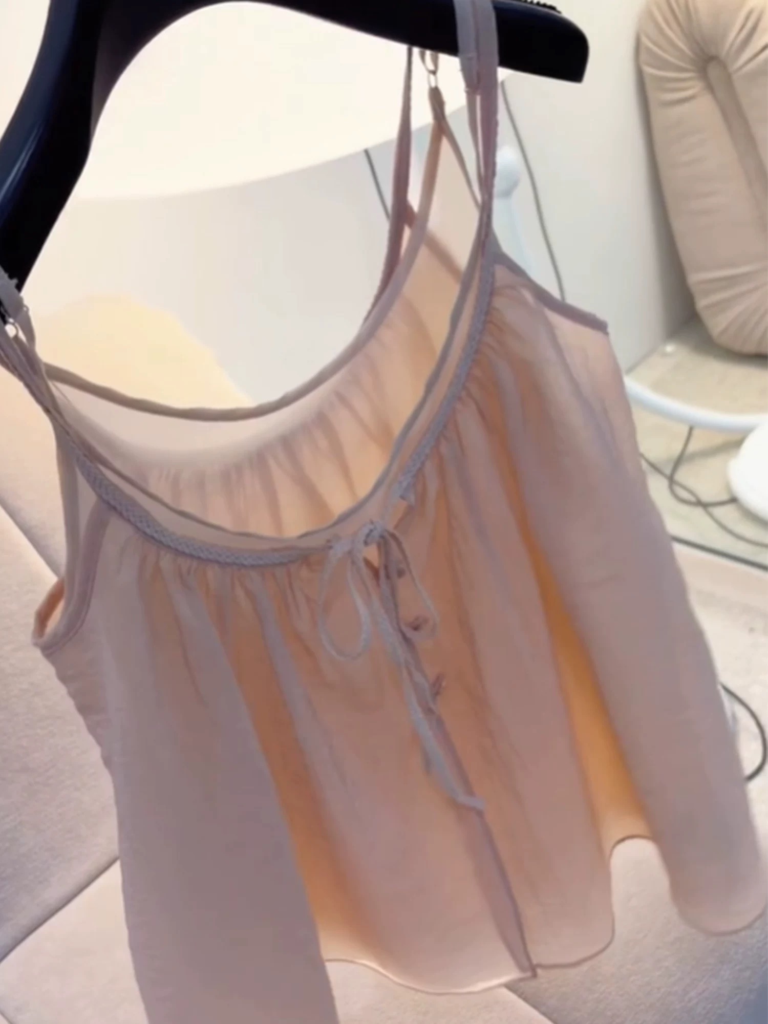 한 부서 디자인 센스 프릴 V넥 스트랩 민소매 작은 셔츠 여성 여름 새로운 조끼 맨위
