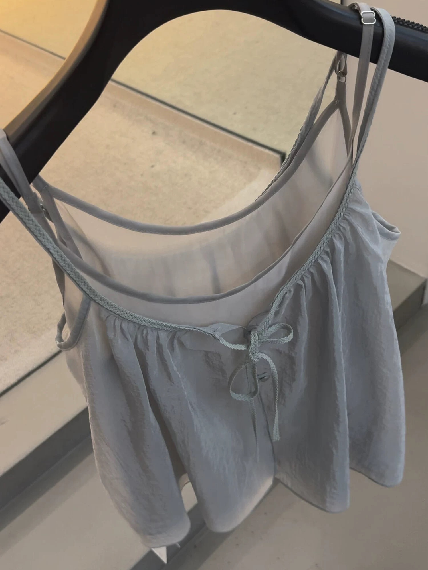 열세 개 회색 펌프 Pleat 짜임 레이스업 투피스 조끼 여성 여름 분위기 센스 얇은 스타일 망사 민소매 맨위