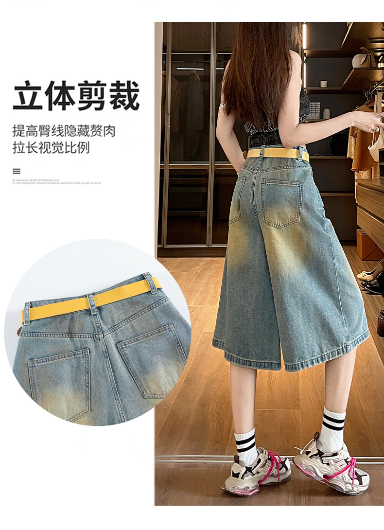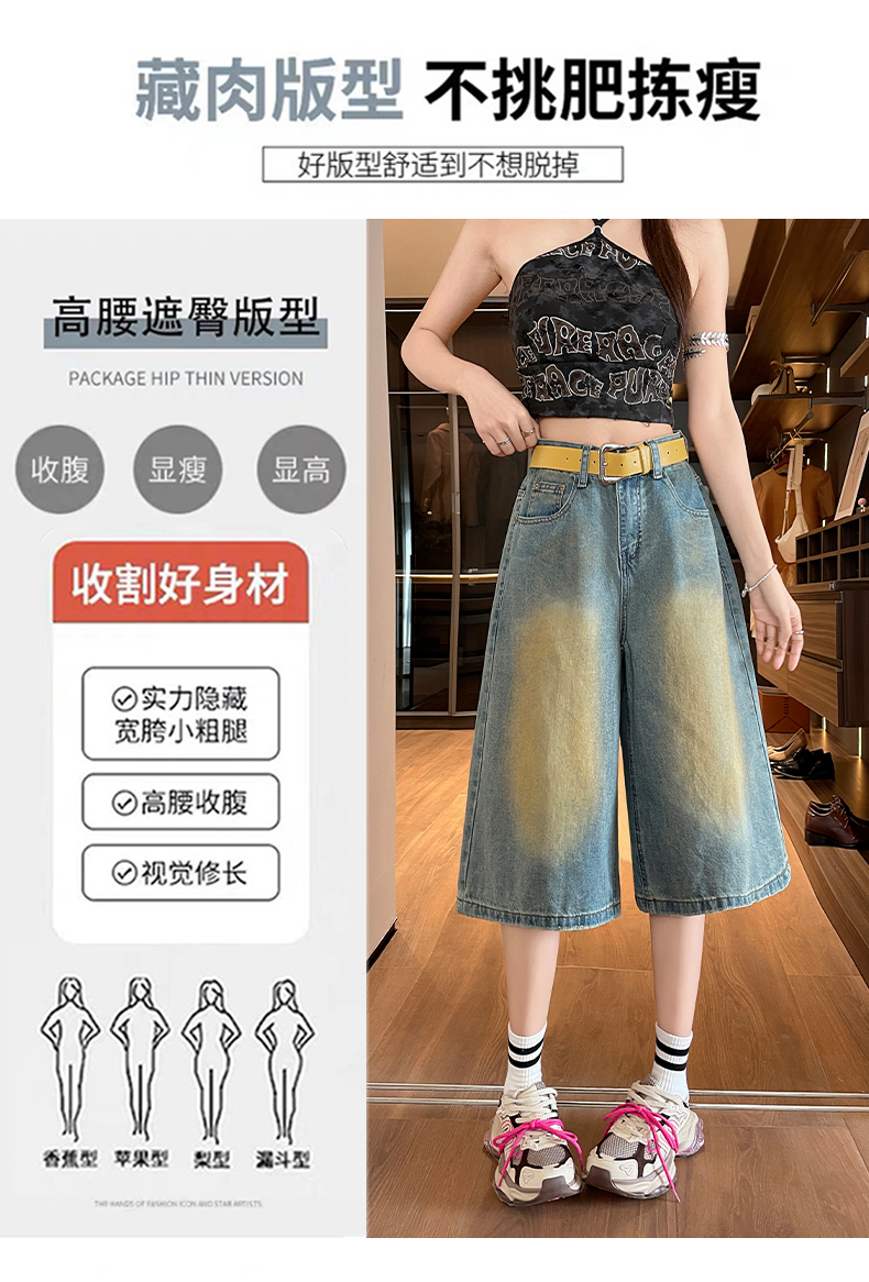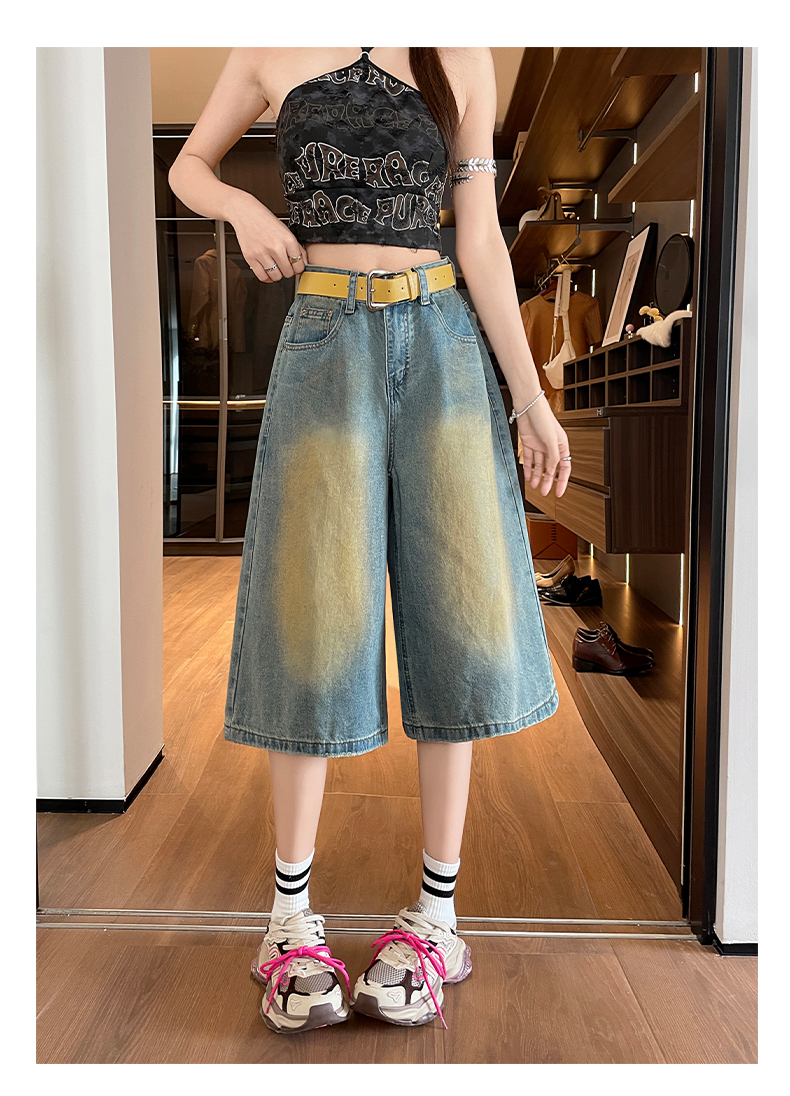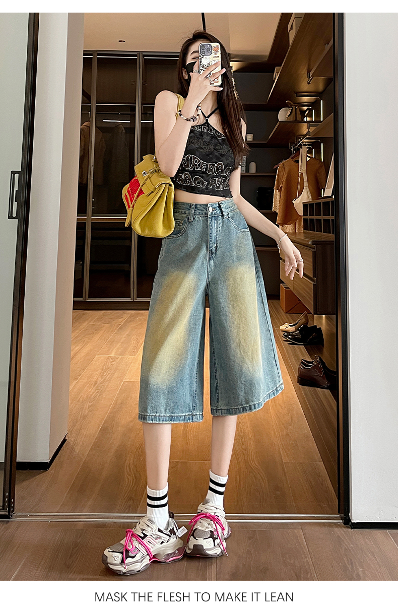 실사 아메리칸 레트로 마 오래된 5 점 청바지 여성 2026 여름 새로운 루즈핏 다용도 스트레이트 와이드 레그 팬츠 트렌디
