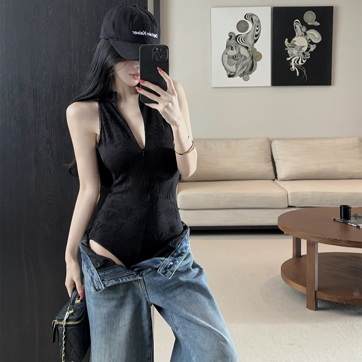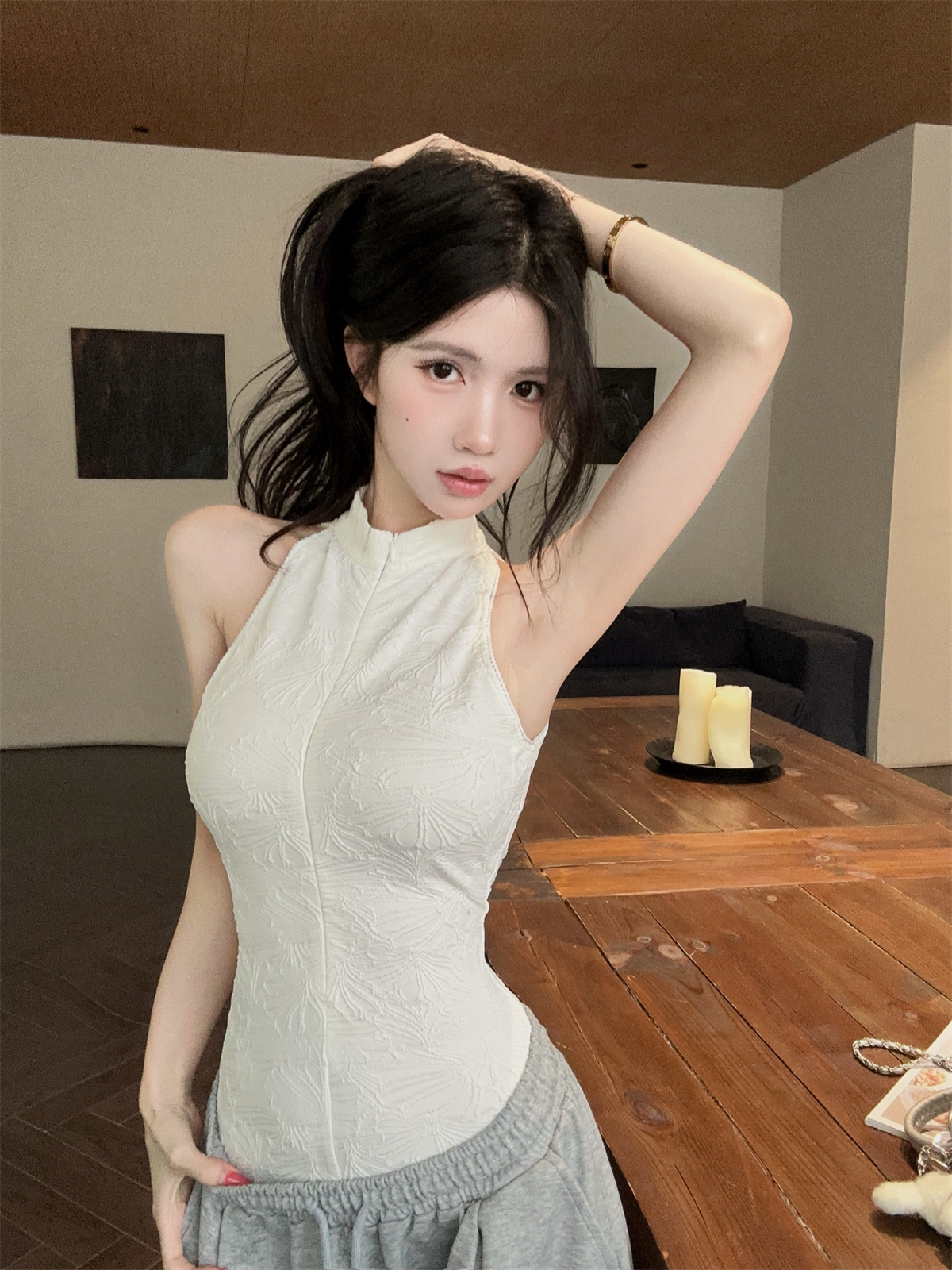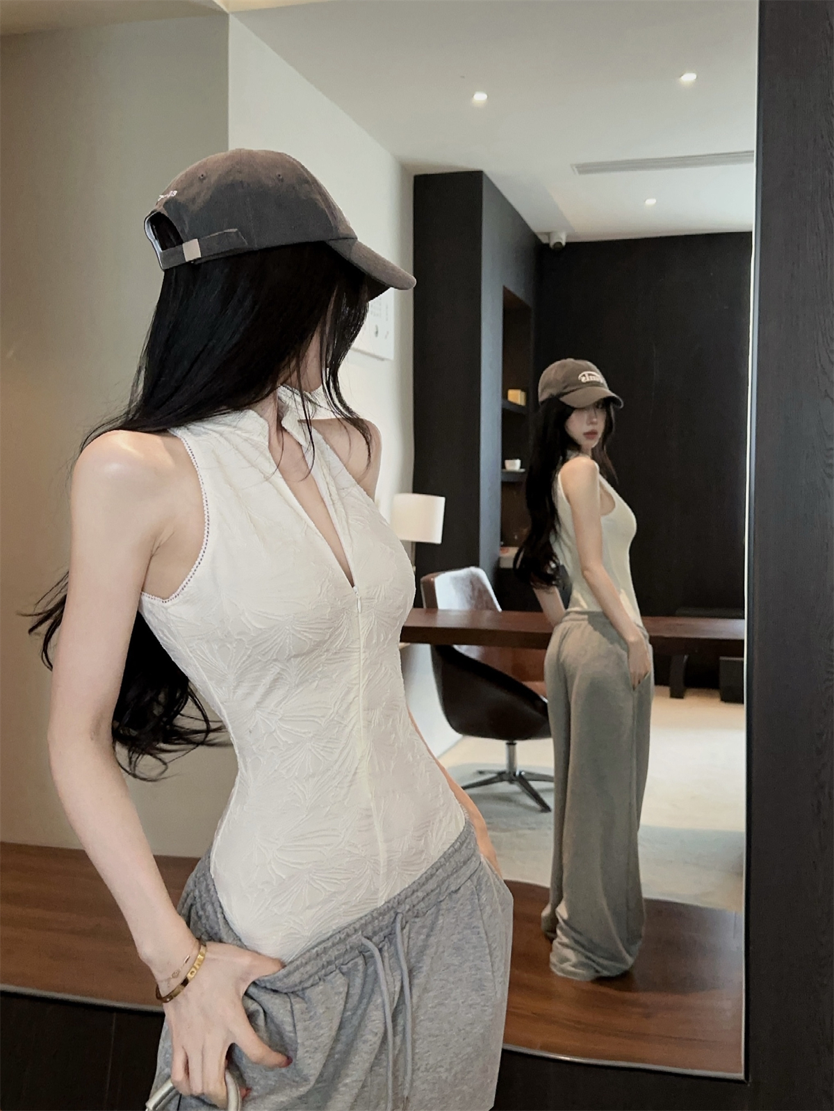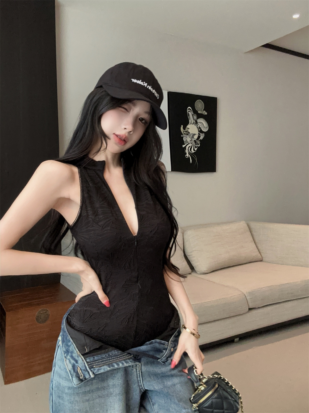 실사 정가 차가운 바람의 소리 핫걸 지퍼 조끼 민소매 질감 센스 맨위 올인원 의류 여성 여름
