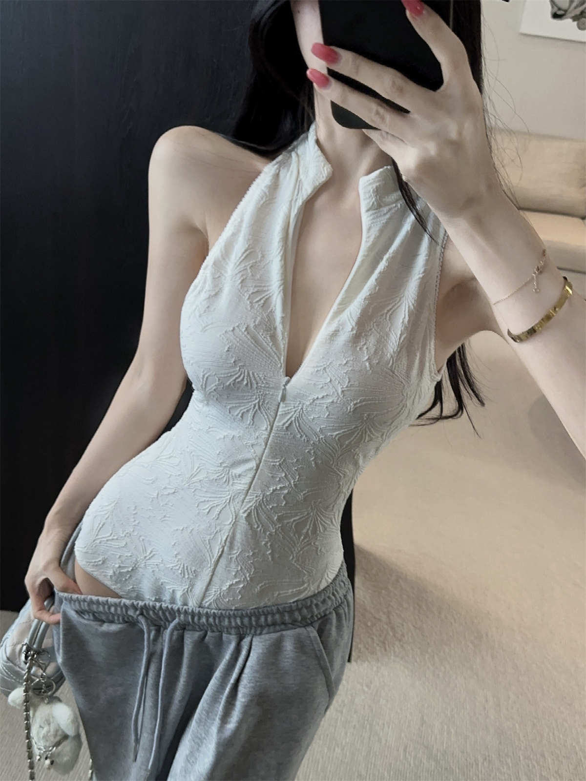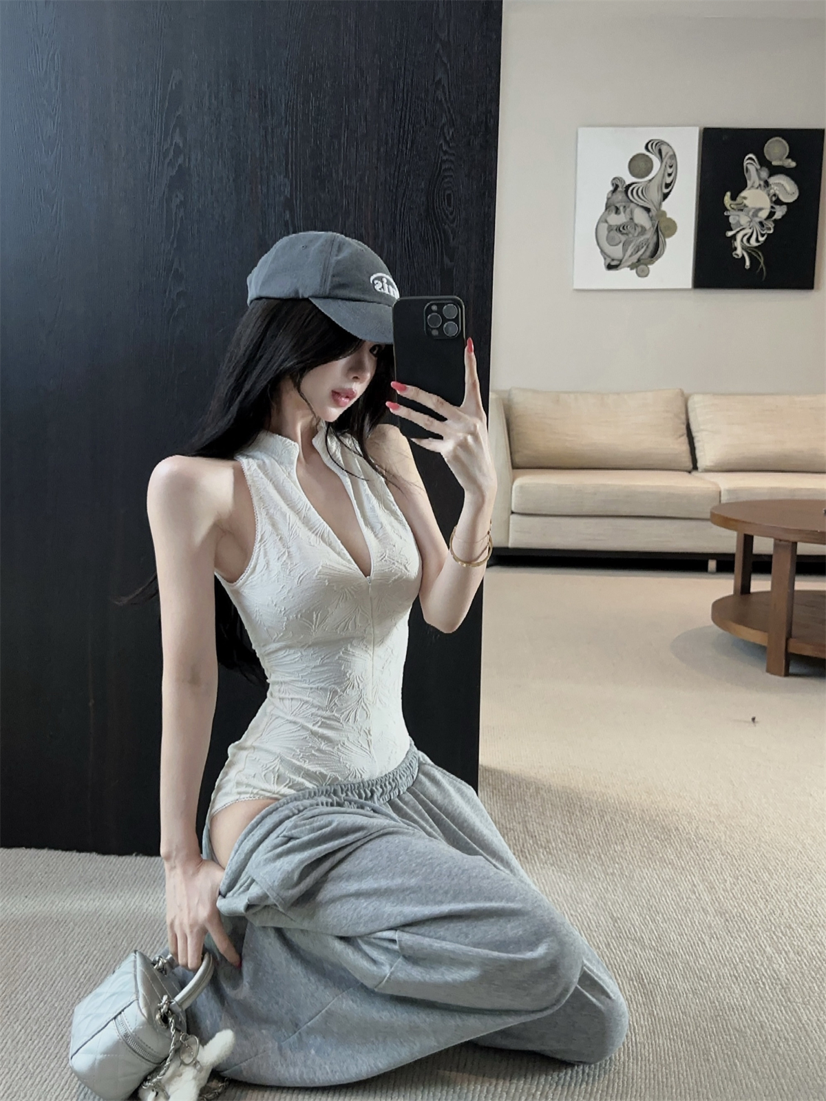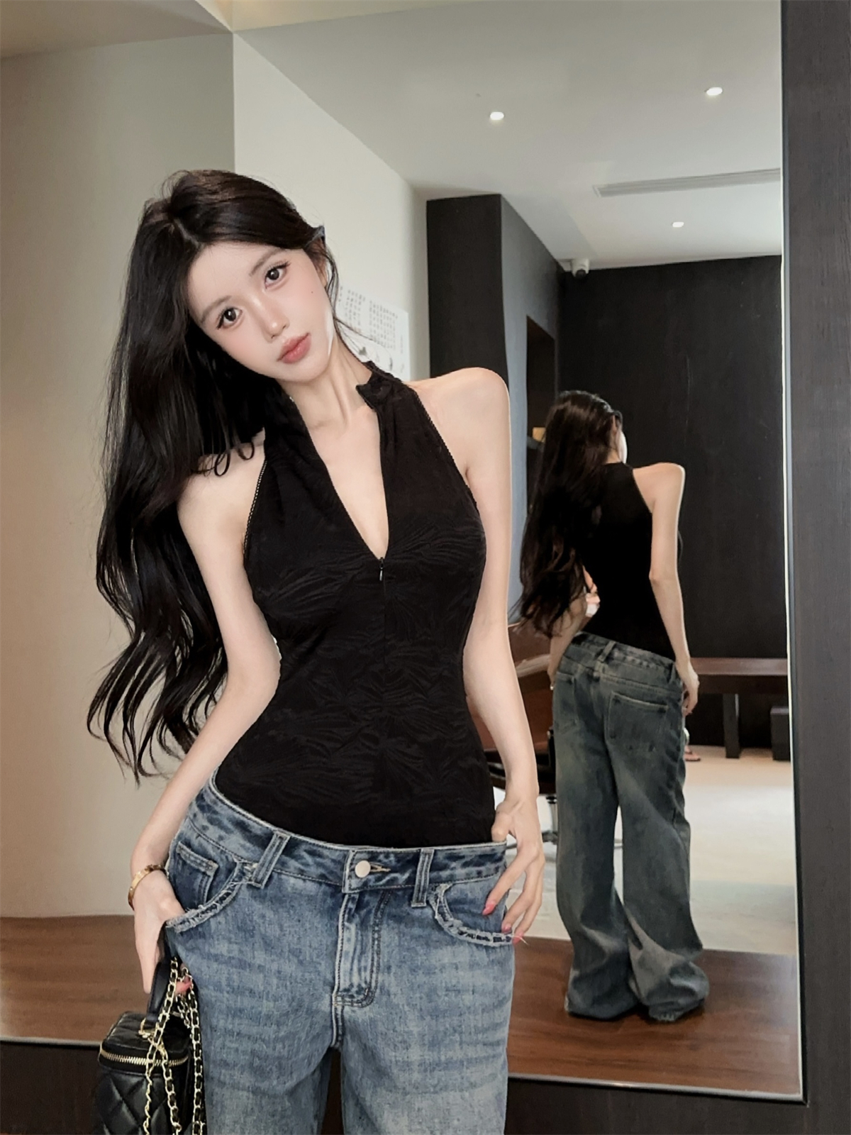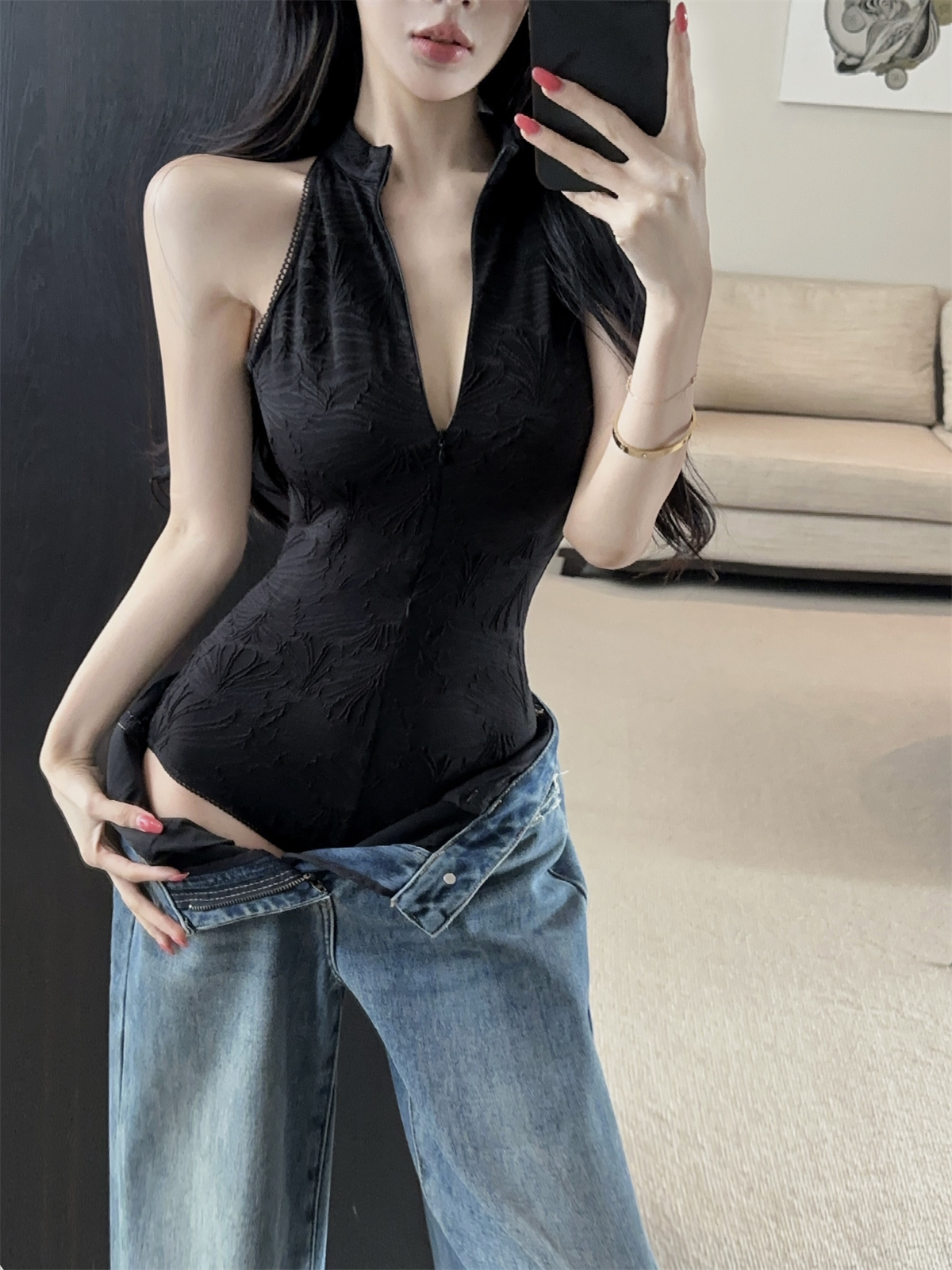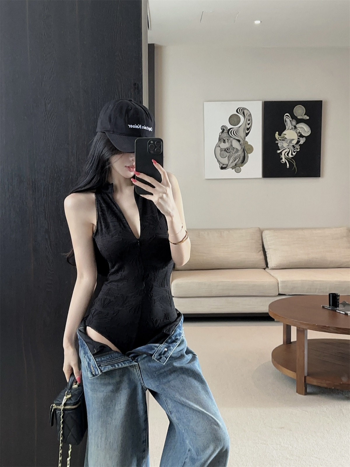 실사 정가 차가운 바람의 소리 핫걸 지퍼 조끼 민소매 질감 센스 맨위 올인원 의류 여성 여름