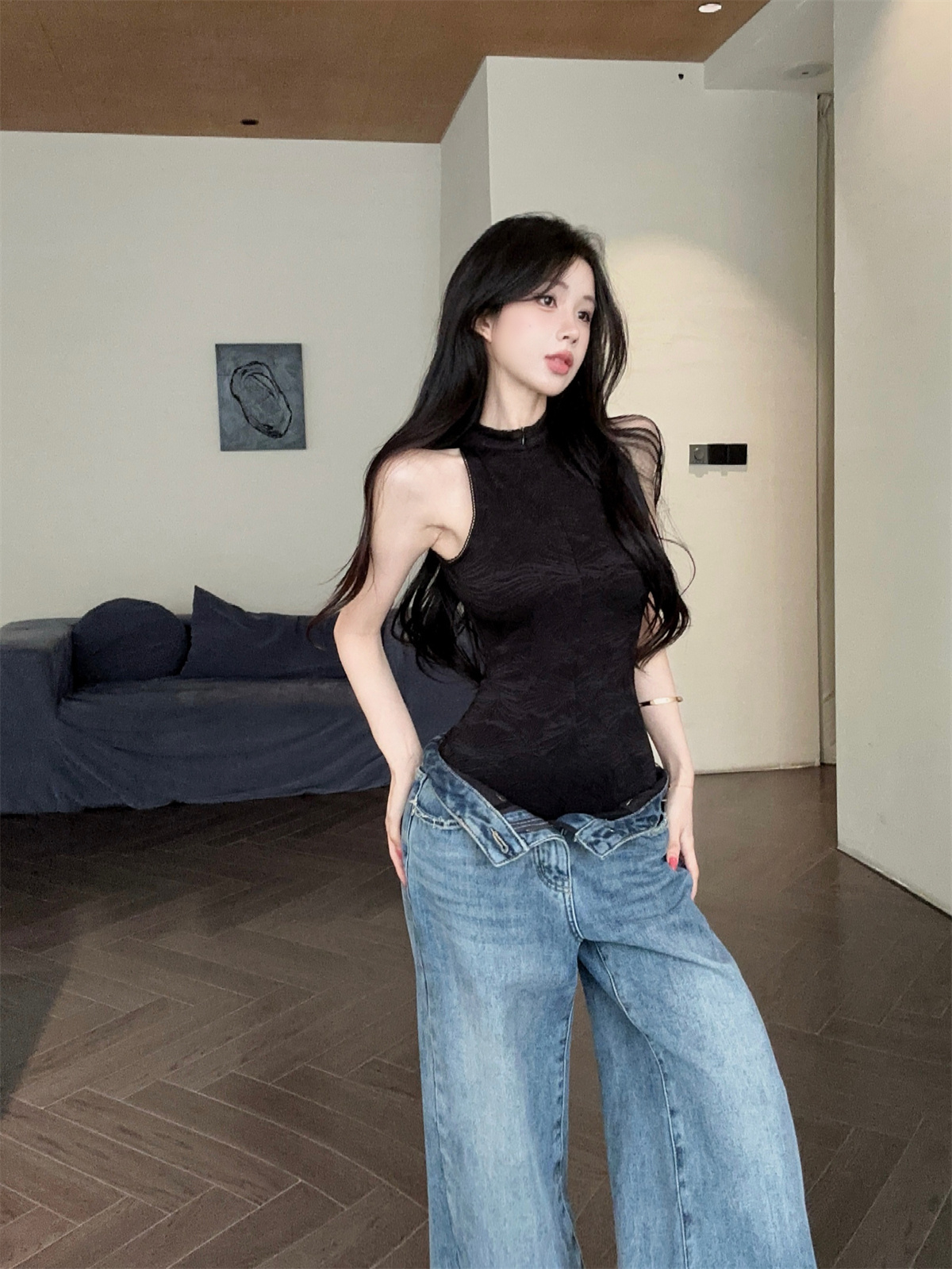 실사 정가 차가운 바람의 소리 핫걸 조끼 민소매 질감 센스 맨위 올인원 의류 여성 여름