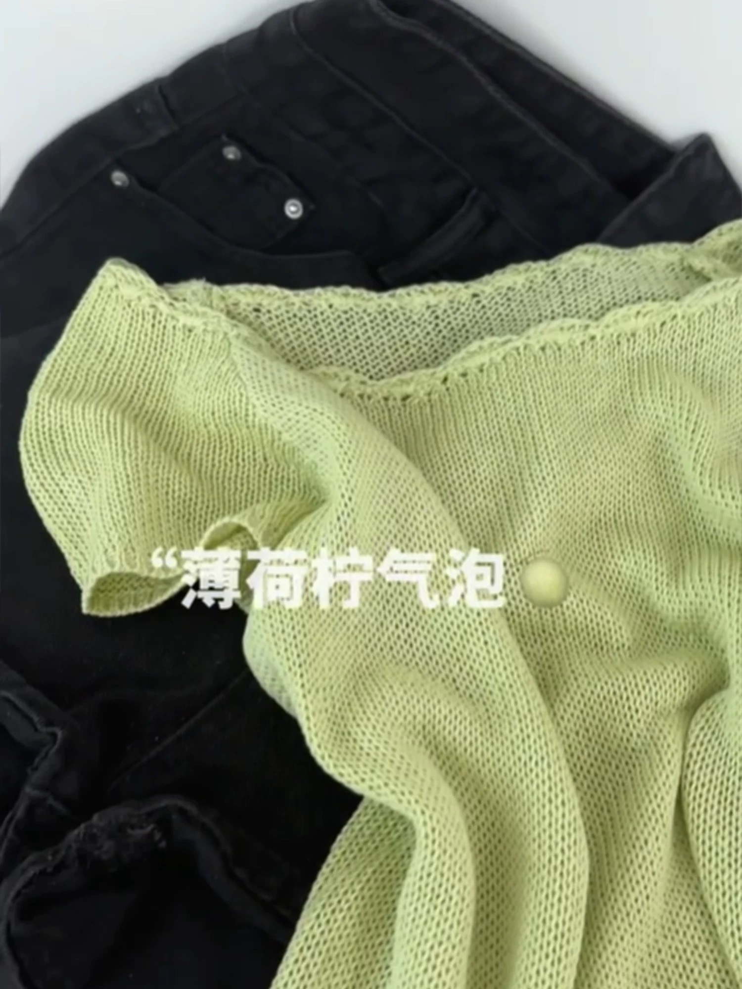 너무 아름다워. 아 크리 딘 박하 녹색 녹색 레몬 녹색 니트 반팔 티셔츠 여성 여름 통기성 슬림해 보이는 다용도 맨위