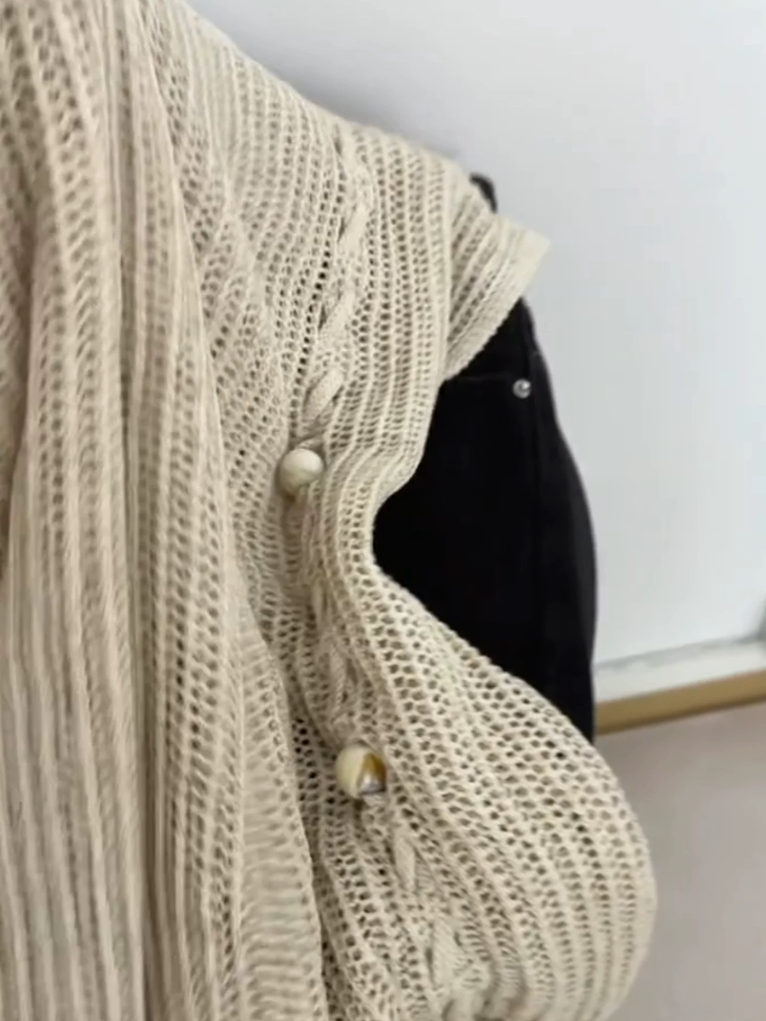 한 부서 목이버섯 레이스 화이트 홀로우 아웃 반팔 니트 오픈 가디건 여성 여름 슬림해 보이는 얇은 스타일 맨위