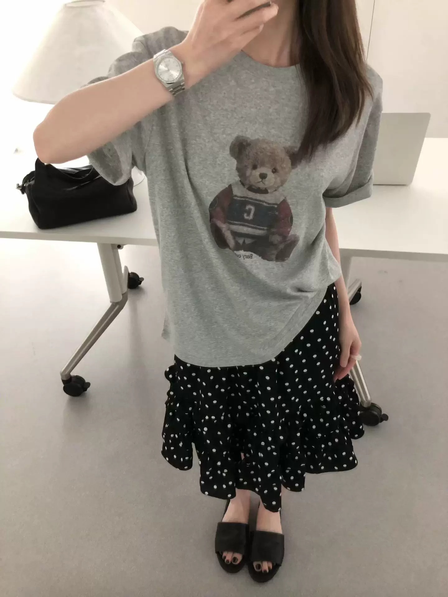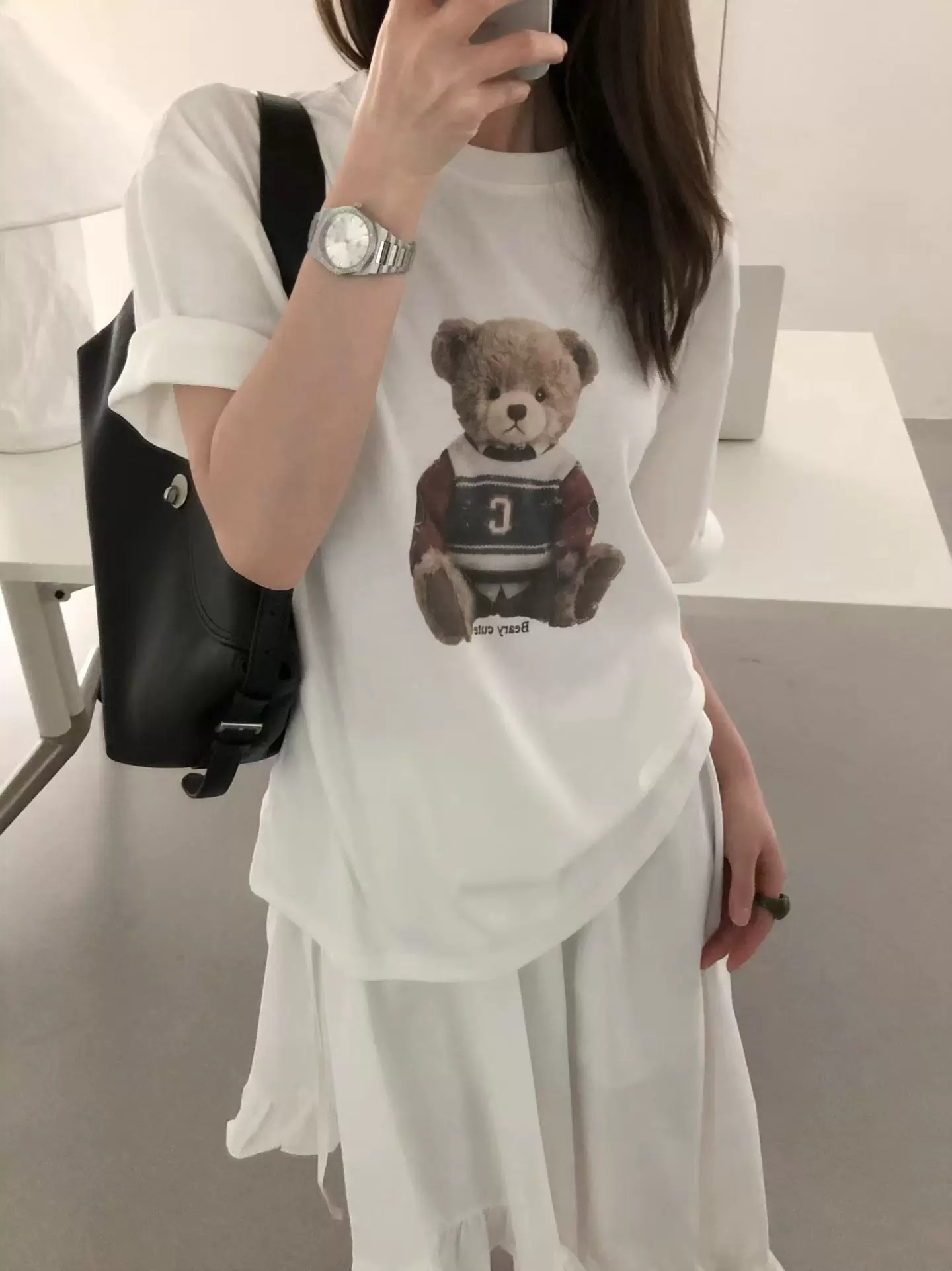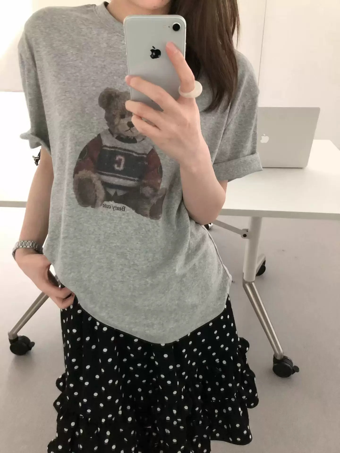 21 순면 210 그램 여름 드레스 느긋한 루즈핏 만화 프린트 반팔 티셔츠 한 부서