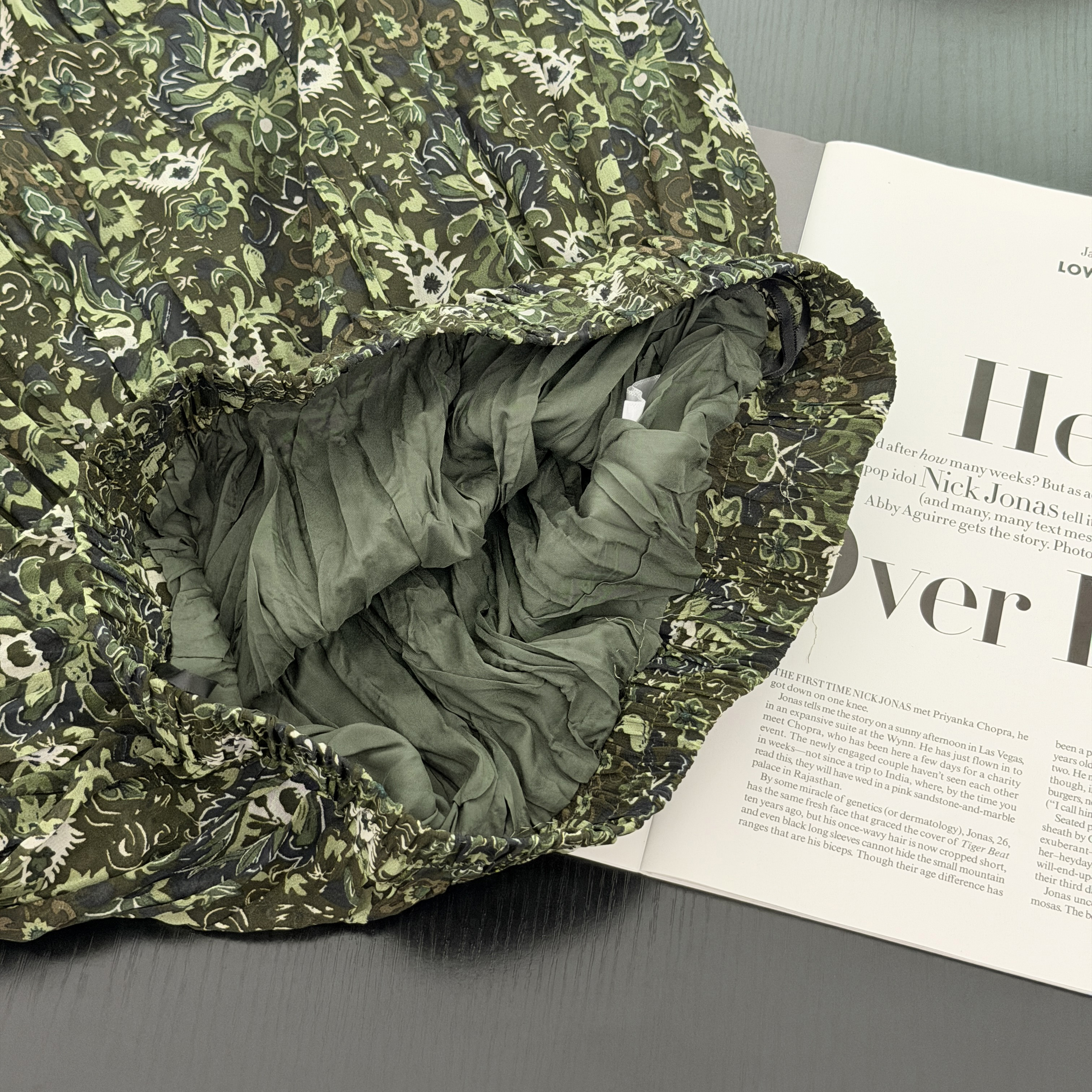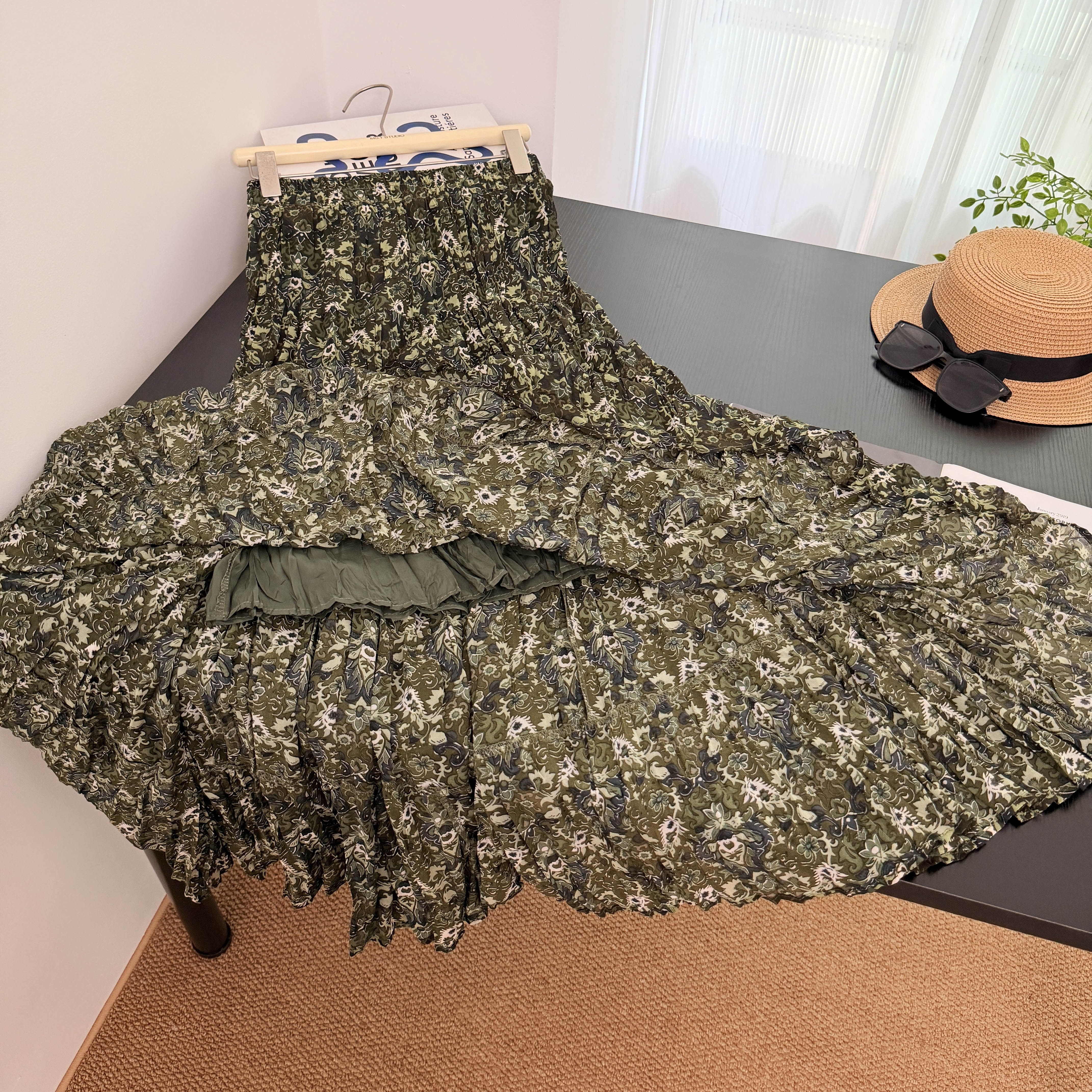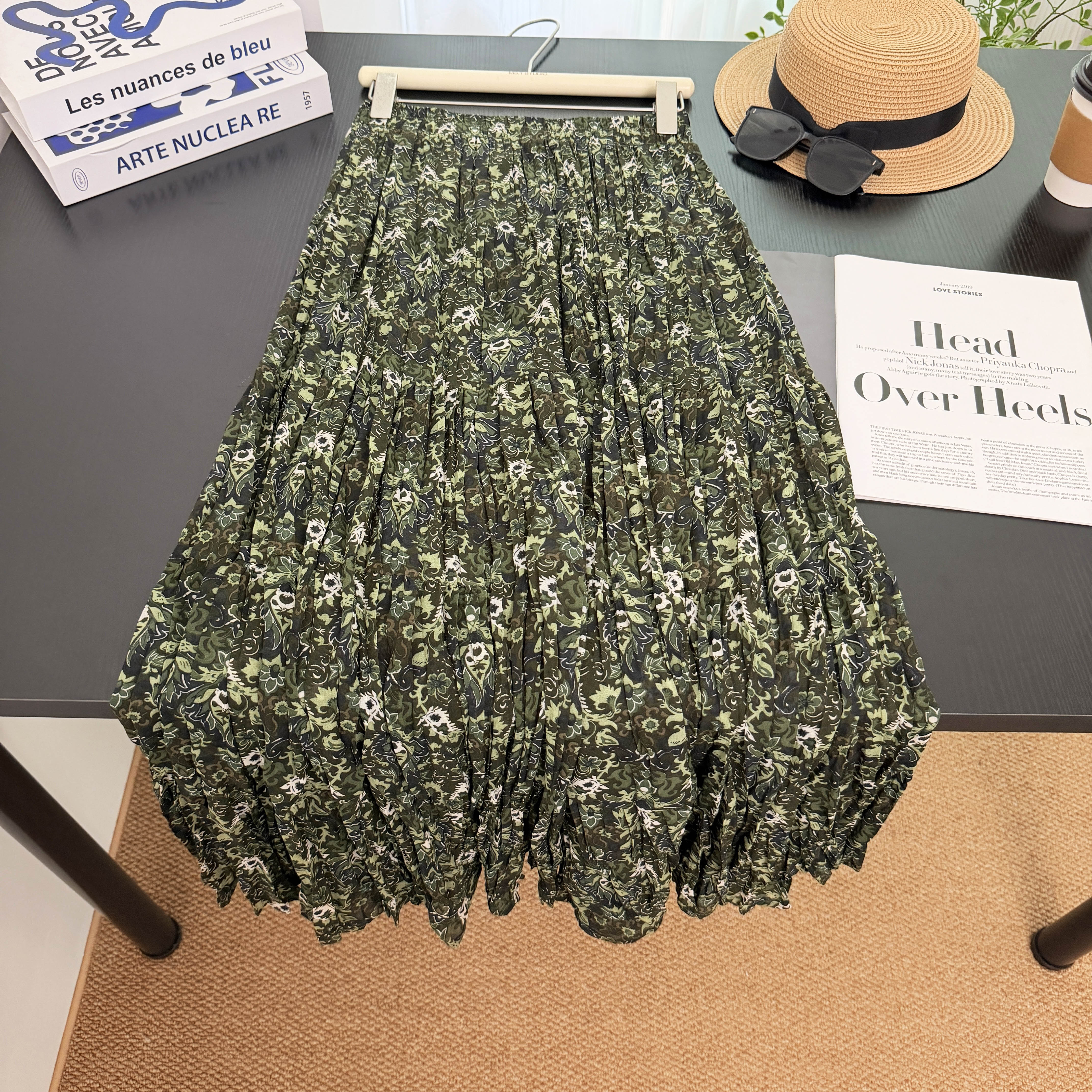 실사 전원 바람 녹색 프린트 반신 스커트 여성 2026 봄 드레스 새로운 우아한 플리츠 중간 길이 스커트 꽃무늬 치마