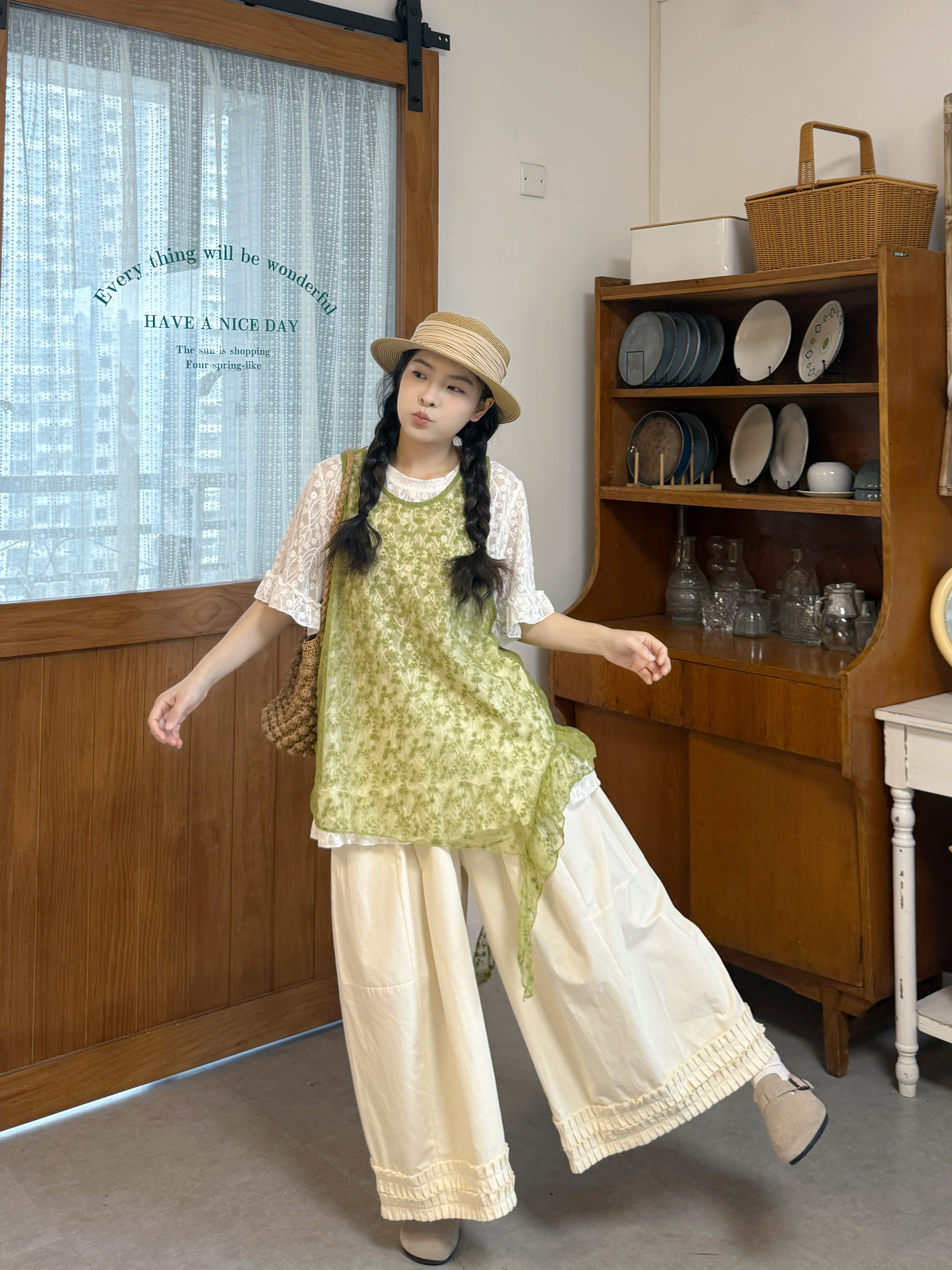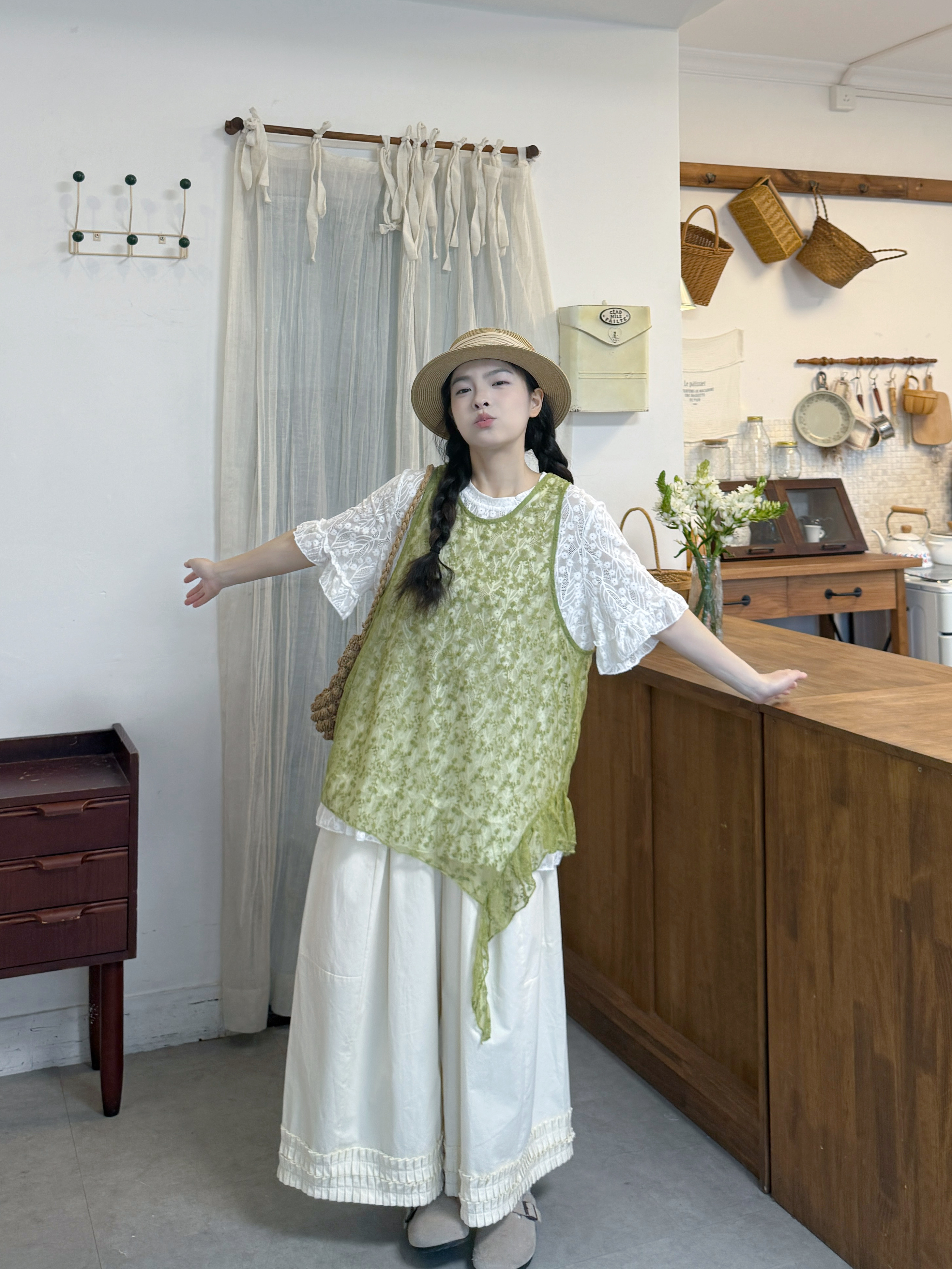 실사 자수 홀로우 아웃 베스트 반팔 만나는 티셔츠 레이스 바지