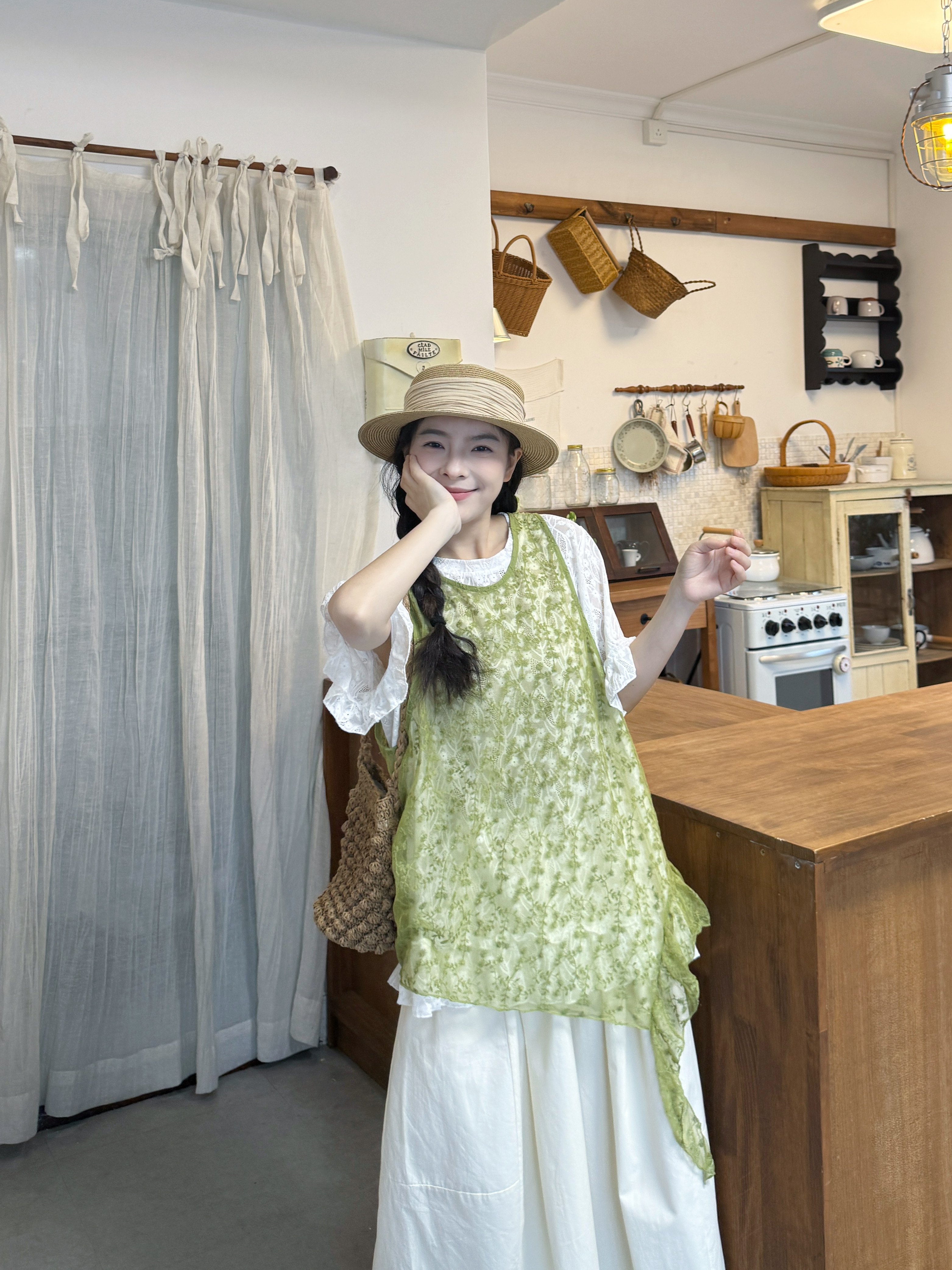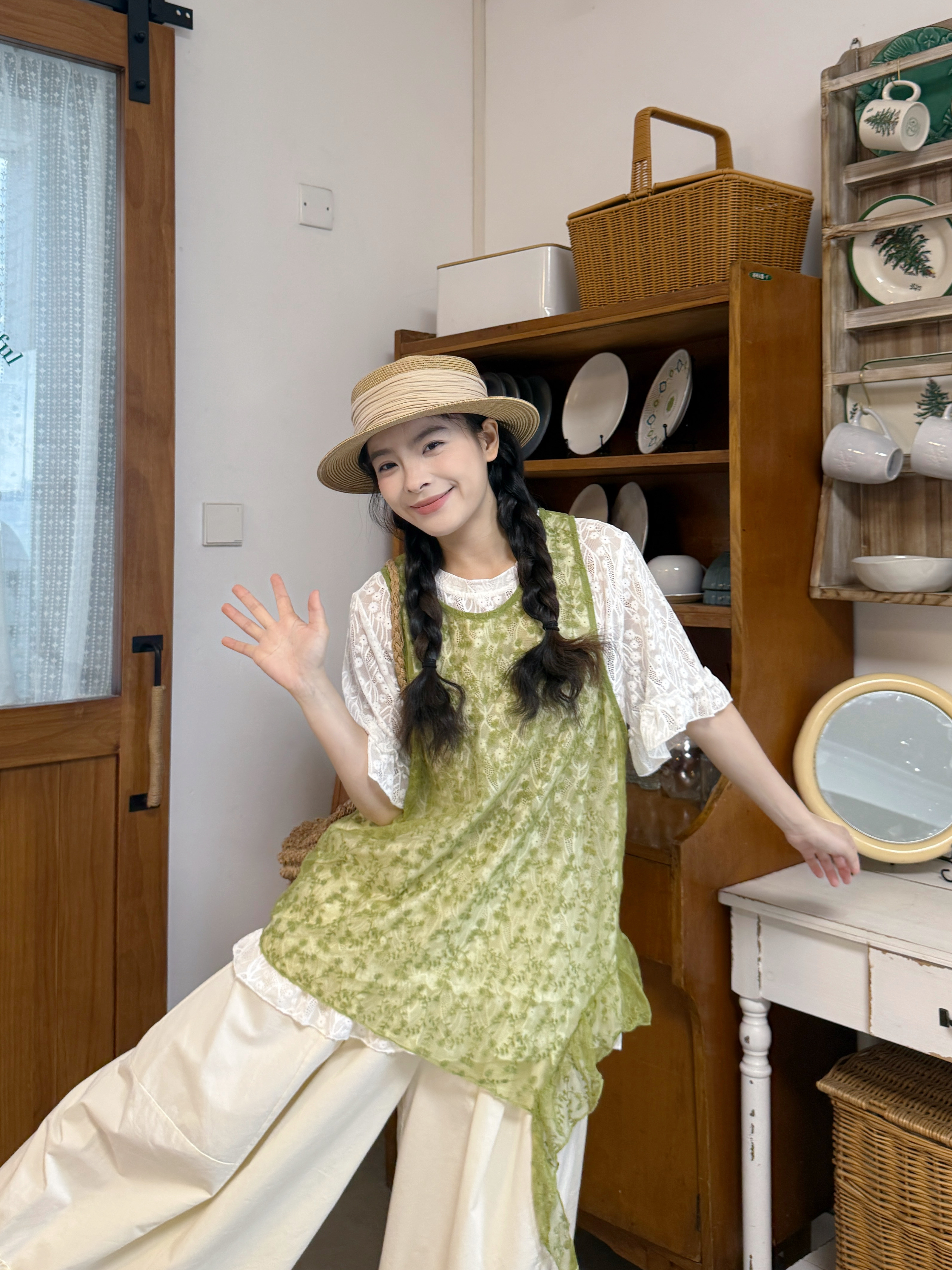 실사 달콤함 스택 착용 망사 베스트 불규칙 만나는 티셔츠 바지