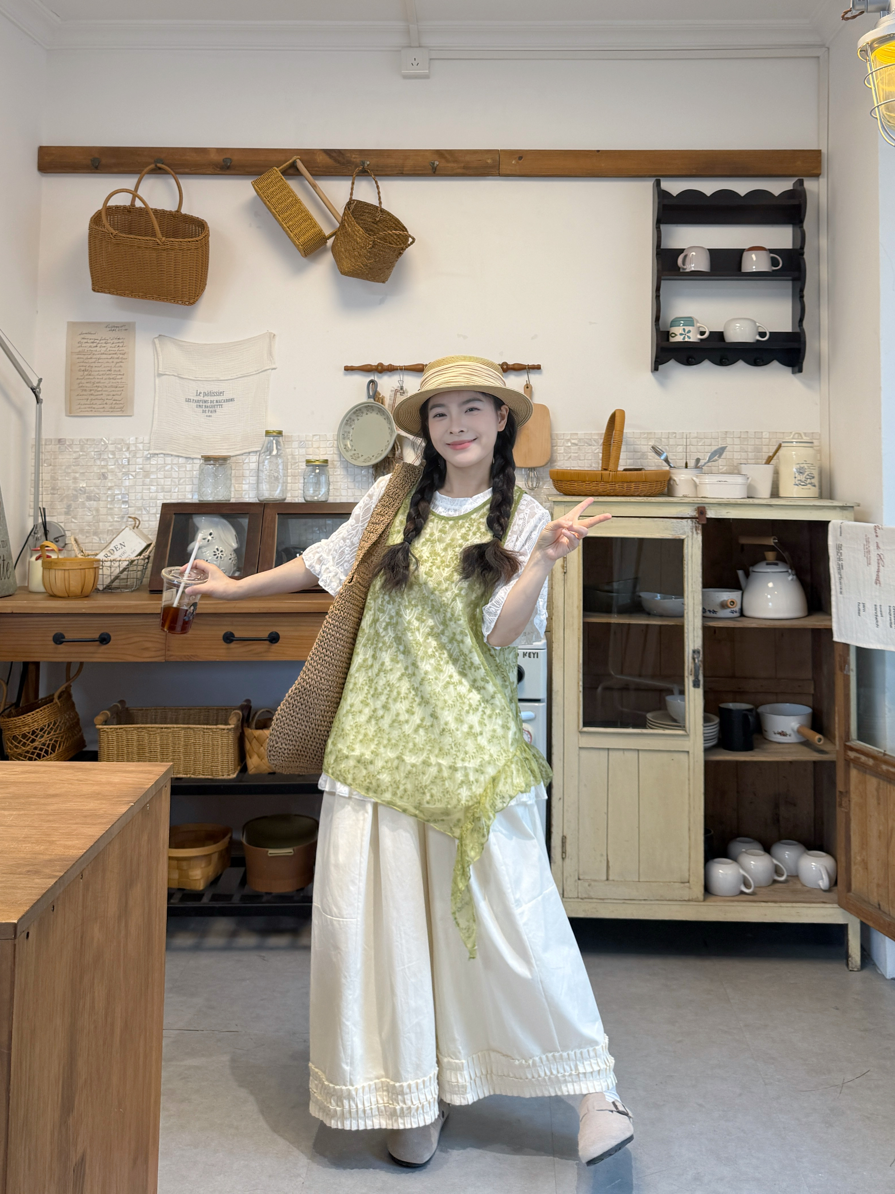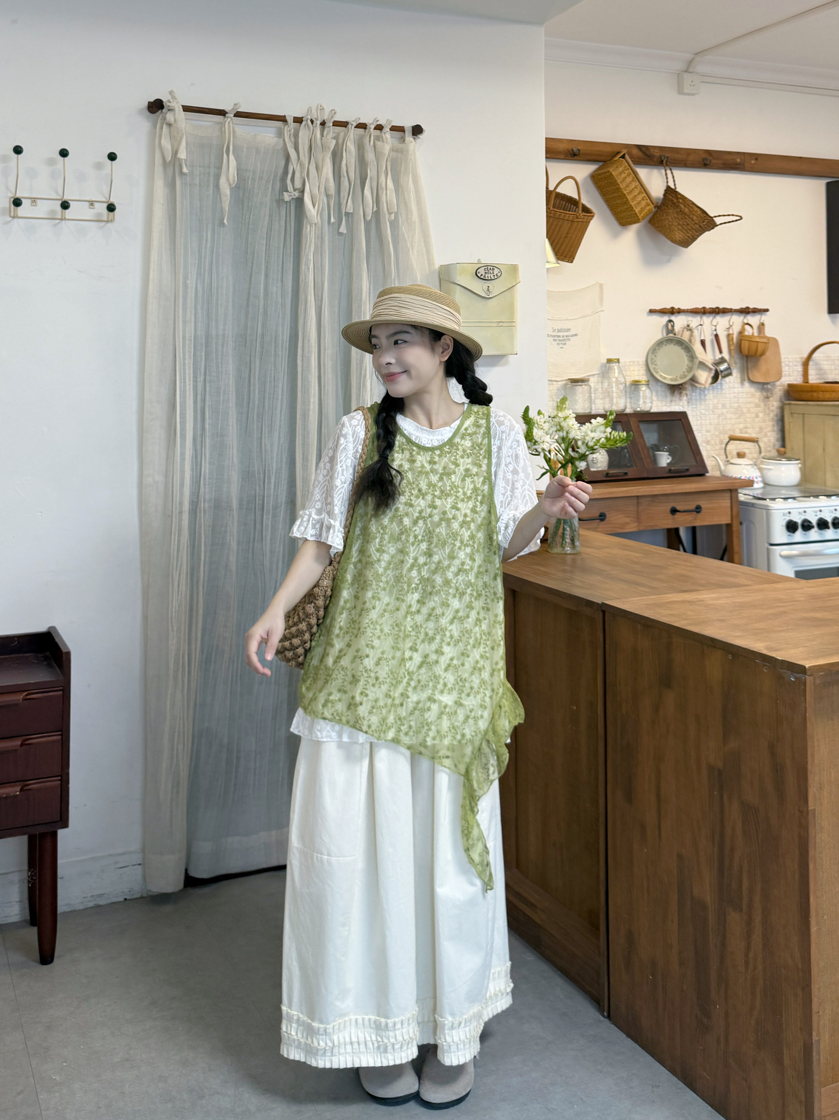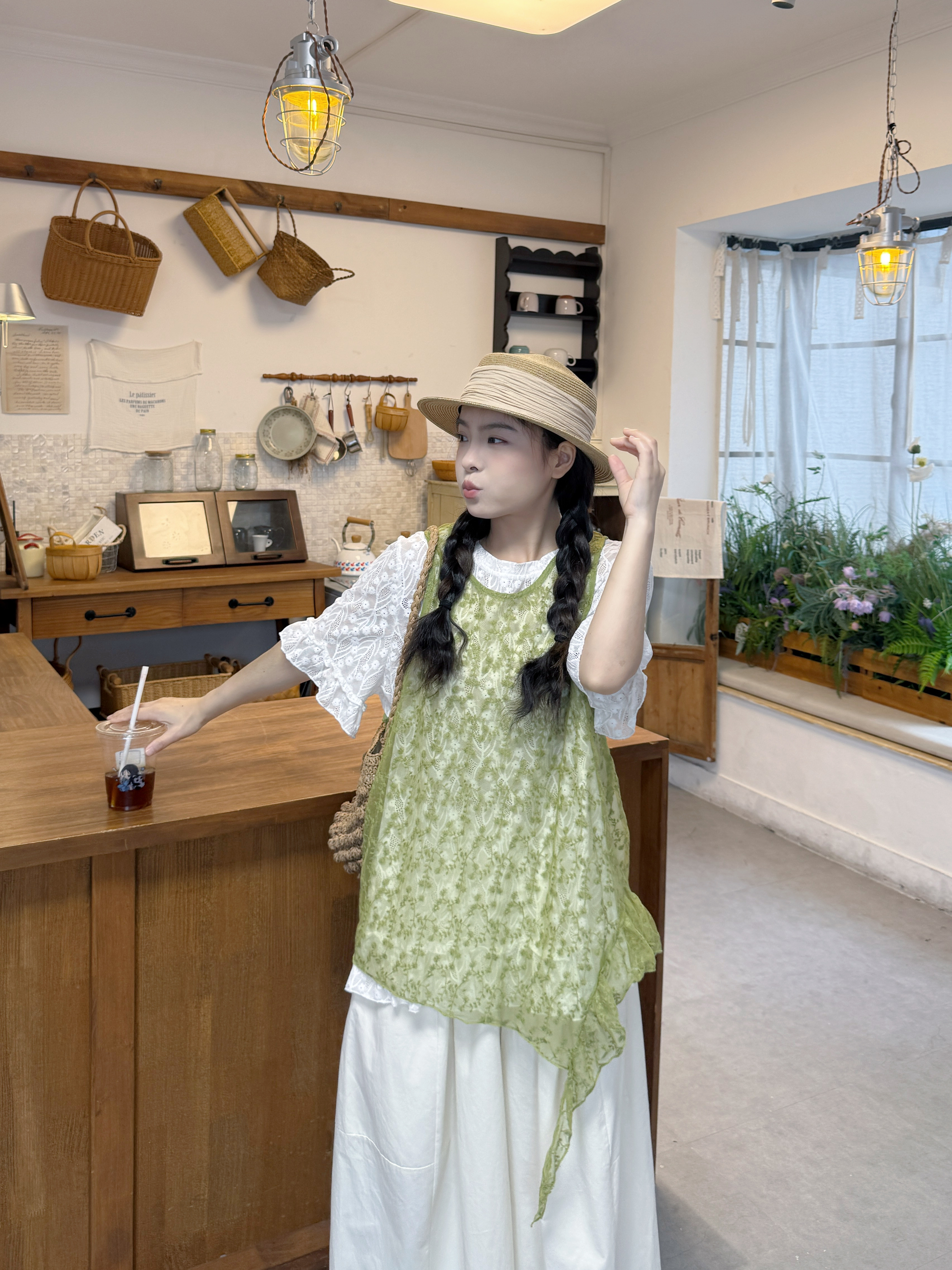 실사 레이스 베이비 칼라 반팔 셔츠 꽃밭 치마