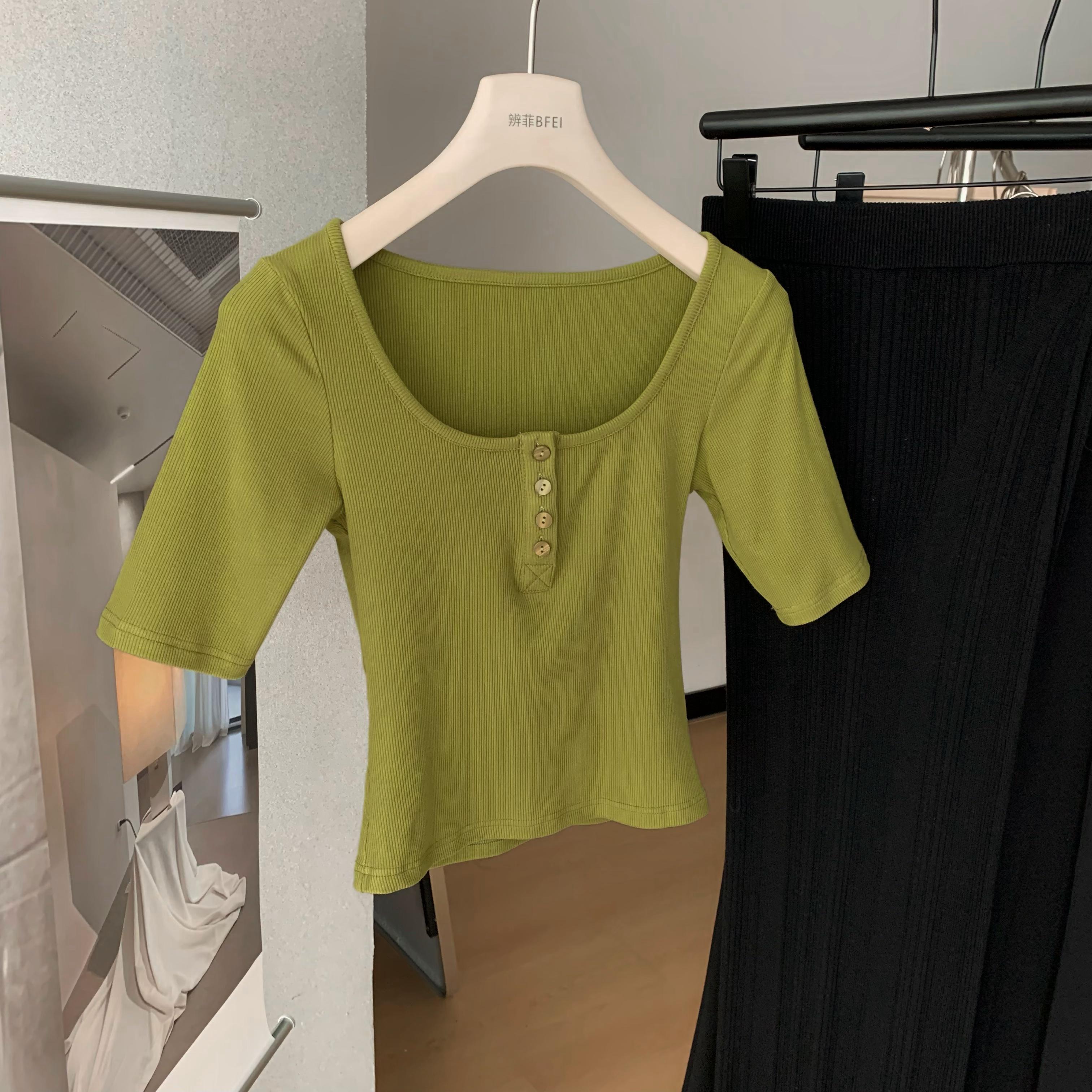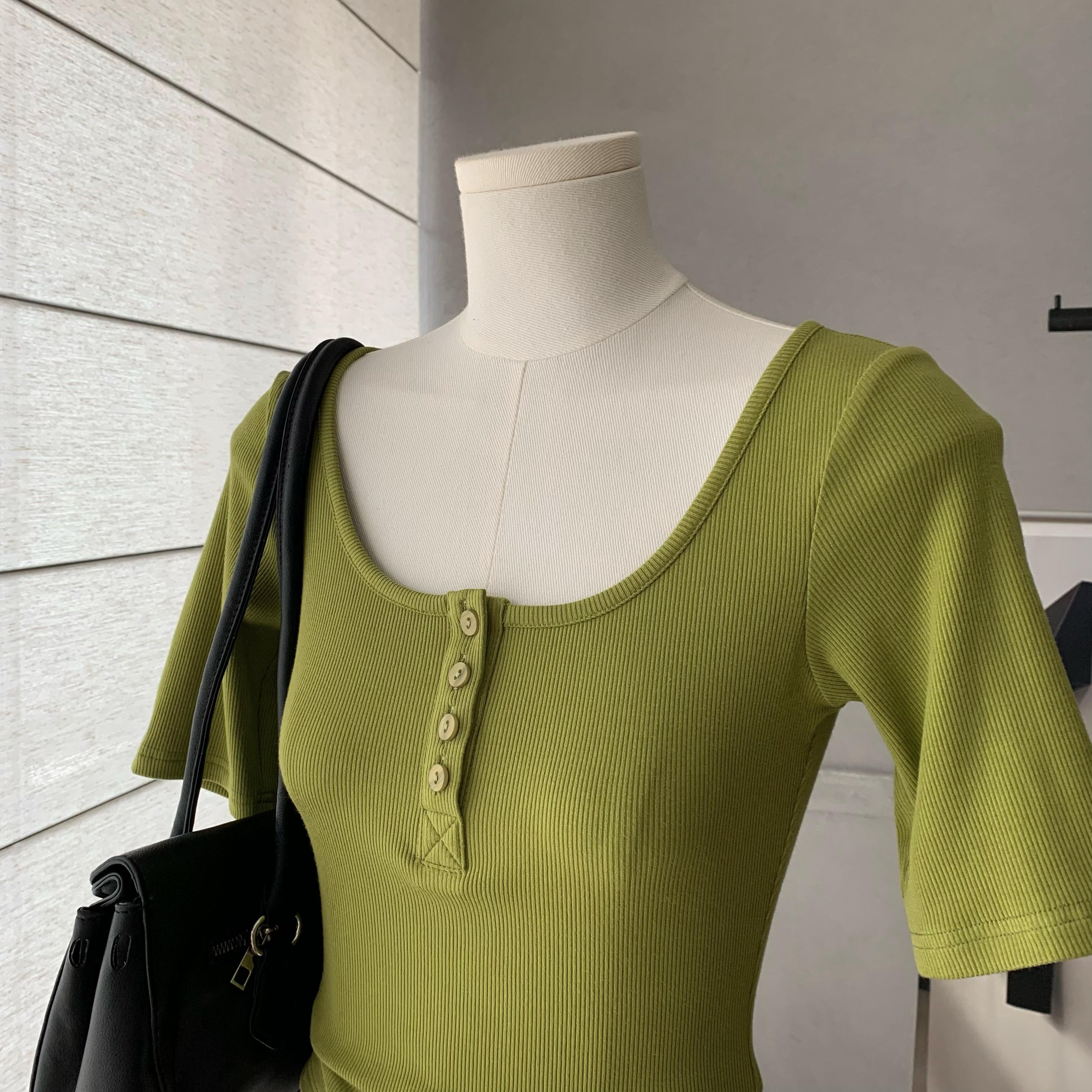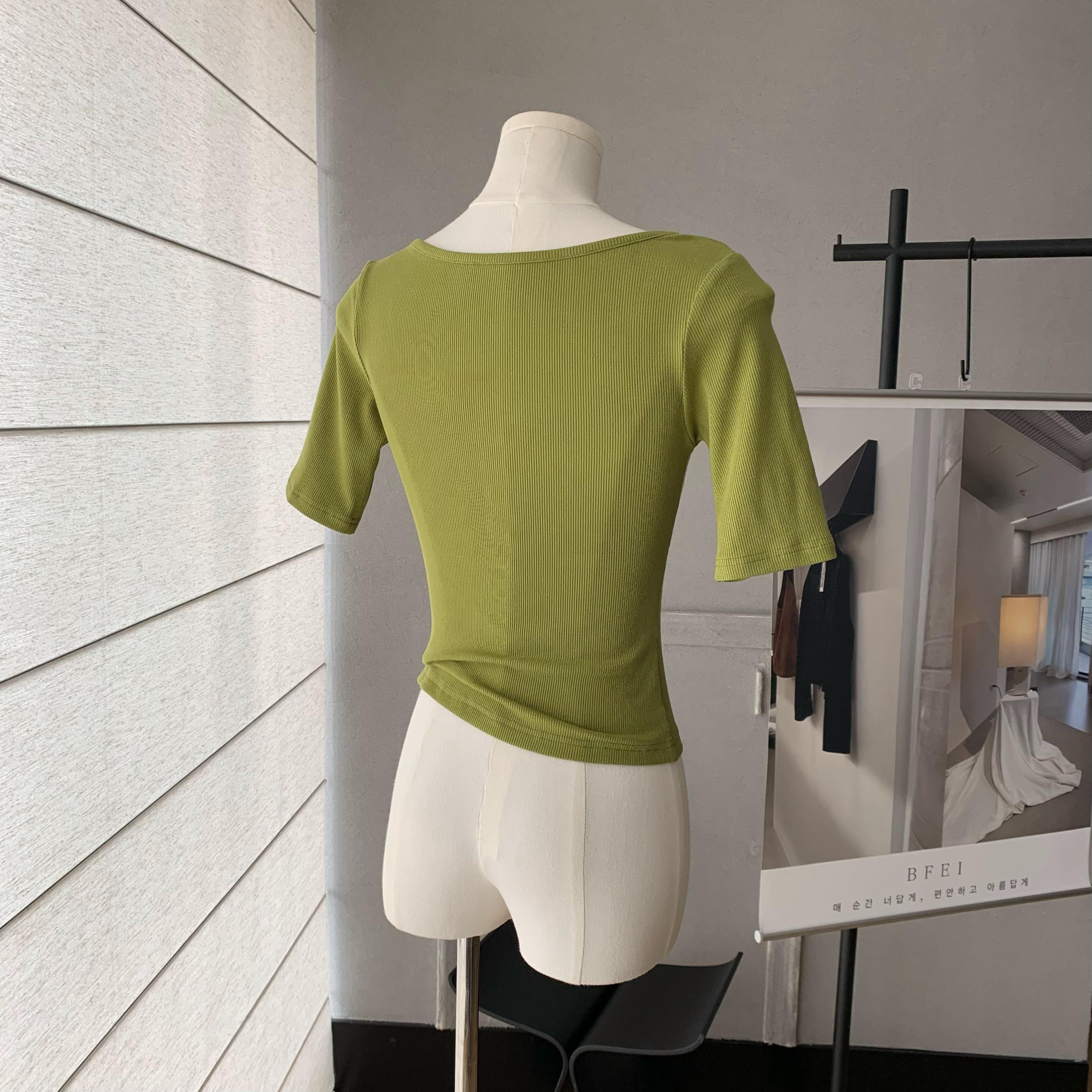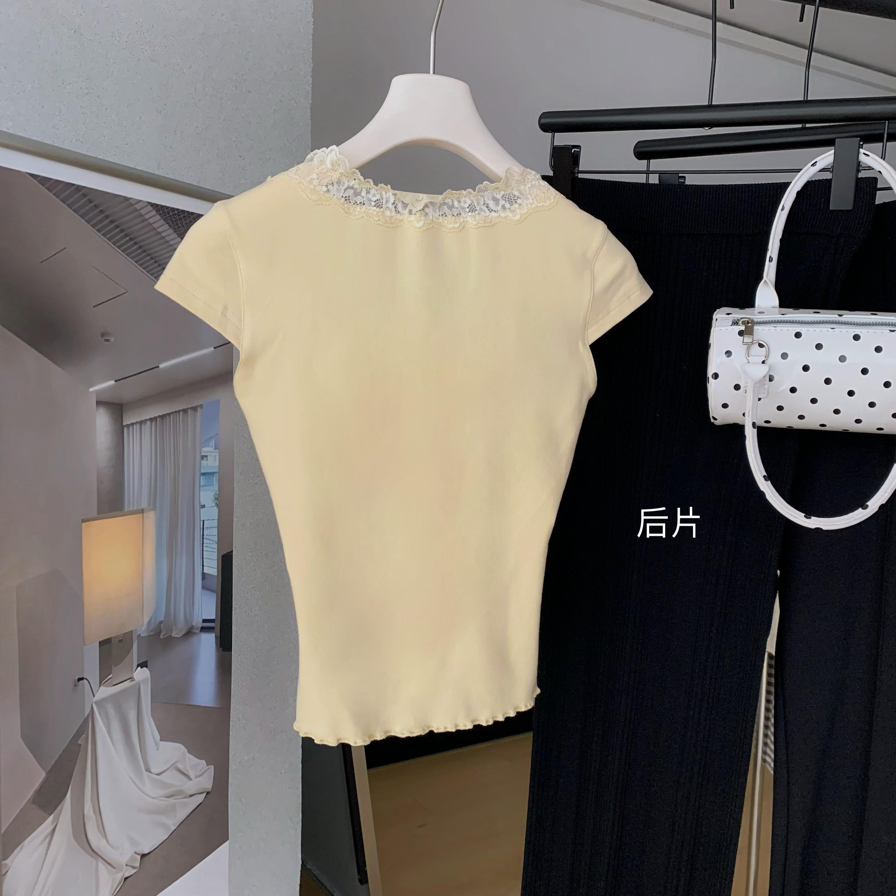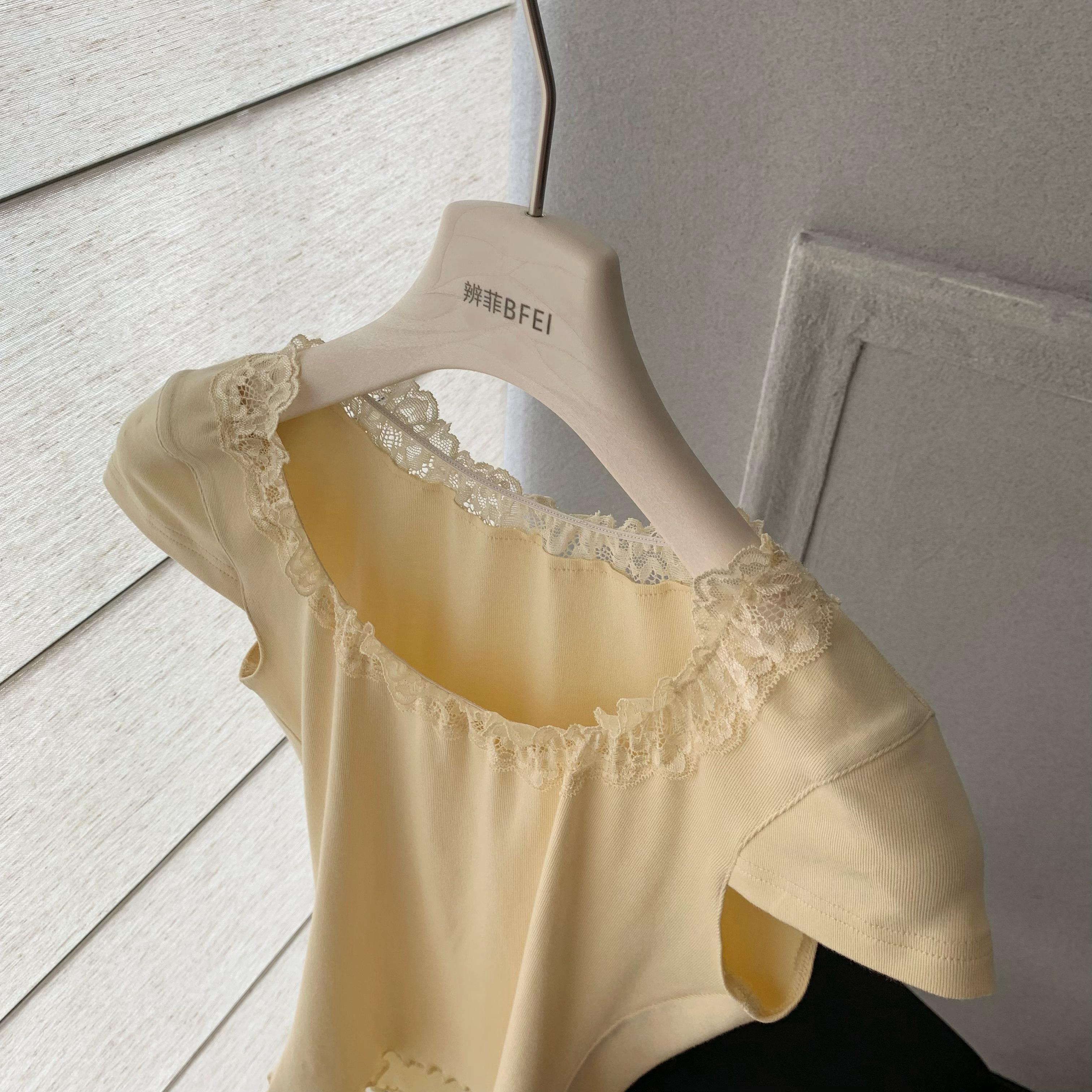bigking 다이 킨 홈 얕은 욕망 마이크로 대 u 칼라 레이스 측면 반팔 티셔츠 여성 몸매 가꾸기 순수한 욕망 맨위