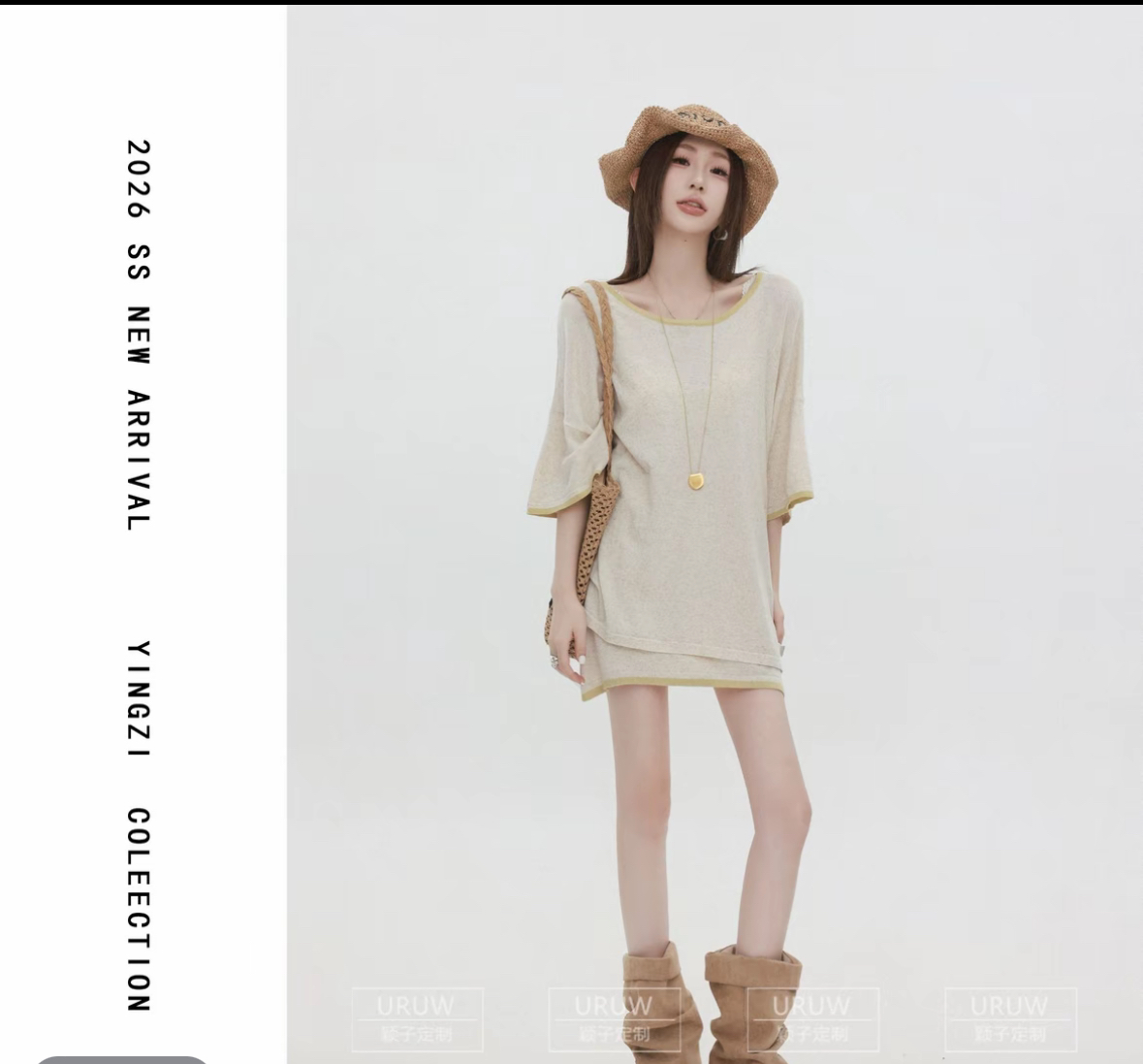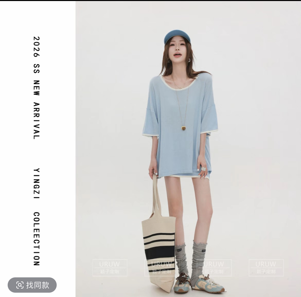 huihui 새로운 느긋한 바람 루즈핏 반팔 맨위 가져 가라. 반신 스커트 세 조각 세트