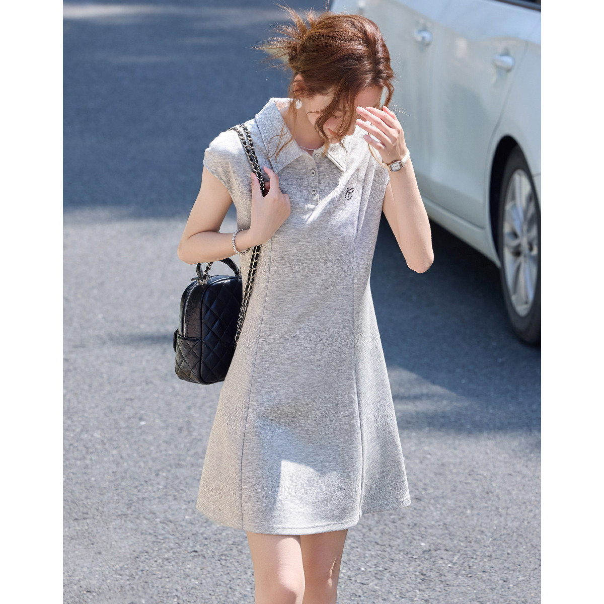 학원 스타일 연령 감소 허리 수축 드레스 아모이 폴로 칼라 민소매 다용도 편안함 티셔츠 치마