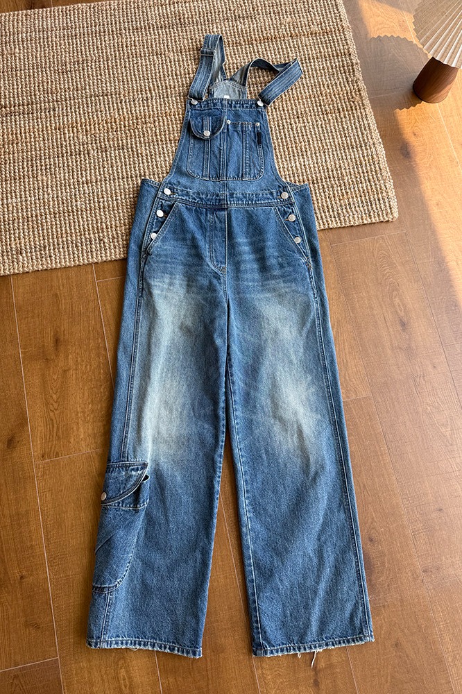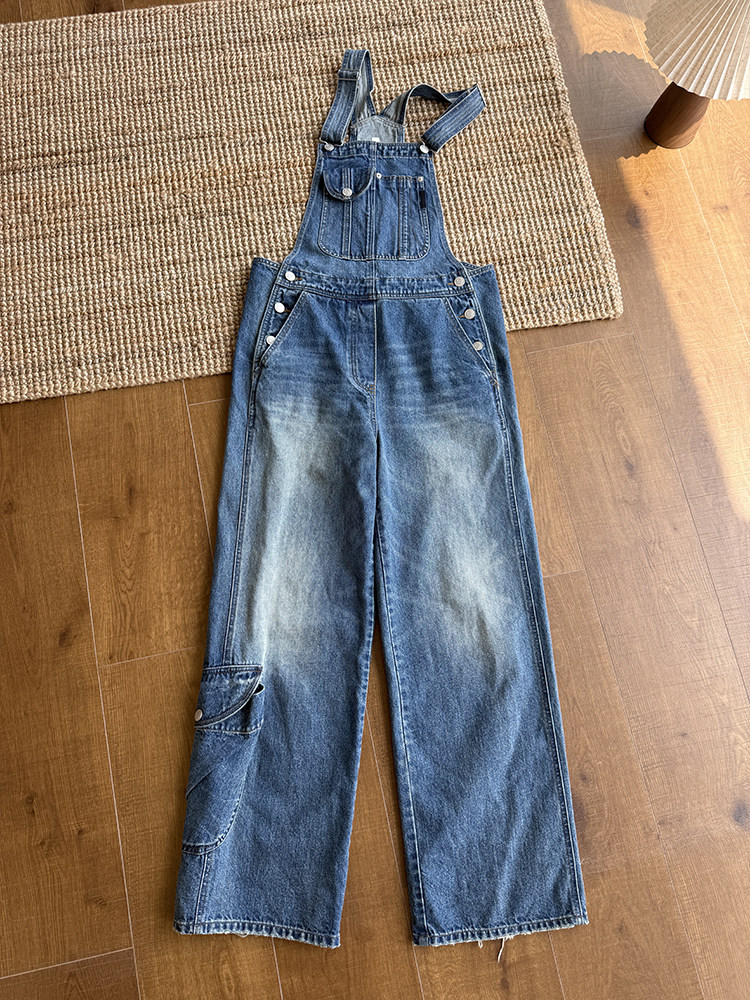 2026 여름 워크웨어 바람 멜빵 바지 스트레이트 청바지 여성 루즈핏 캐주얼 연령 감소 올인원 바지 넓은 다리 길이 바지
