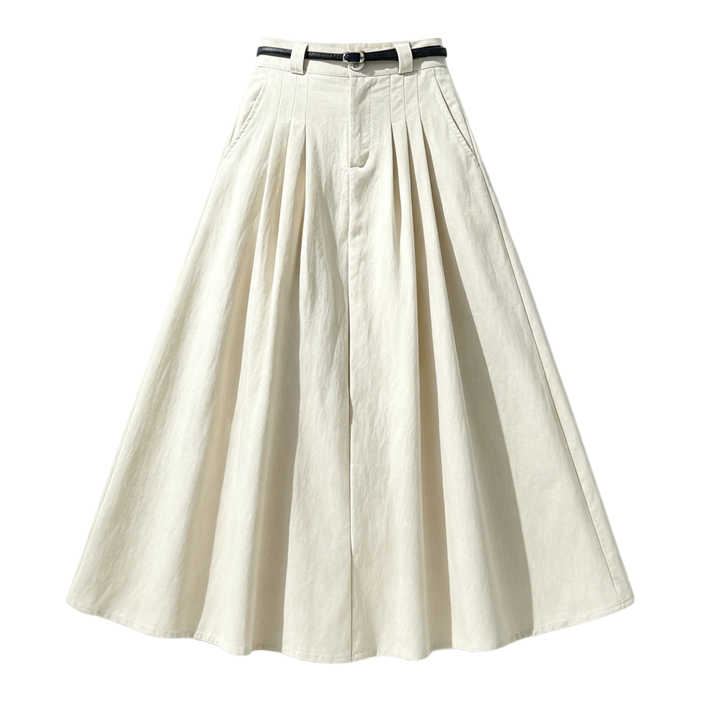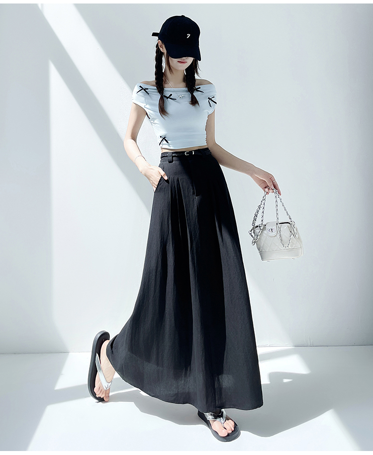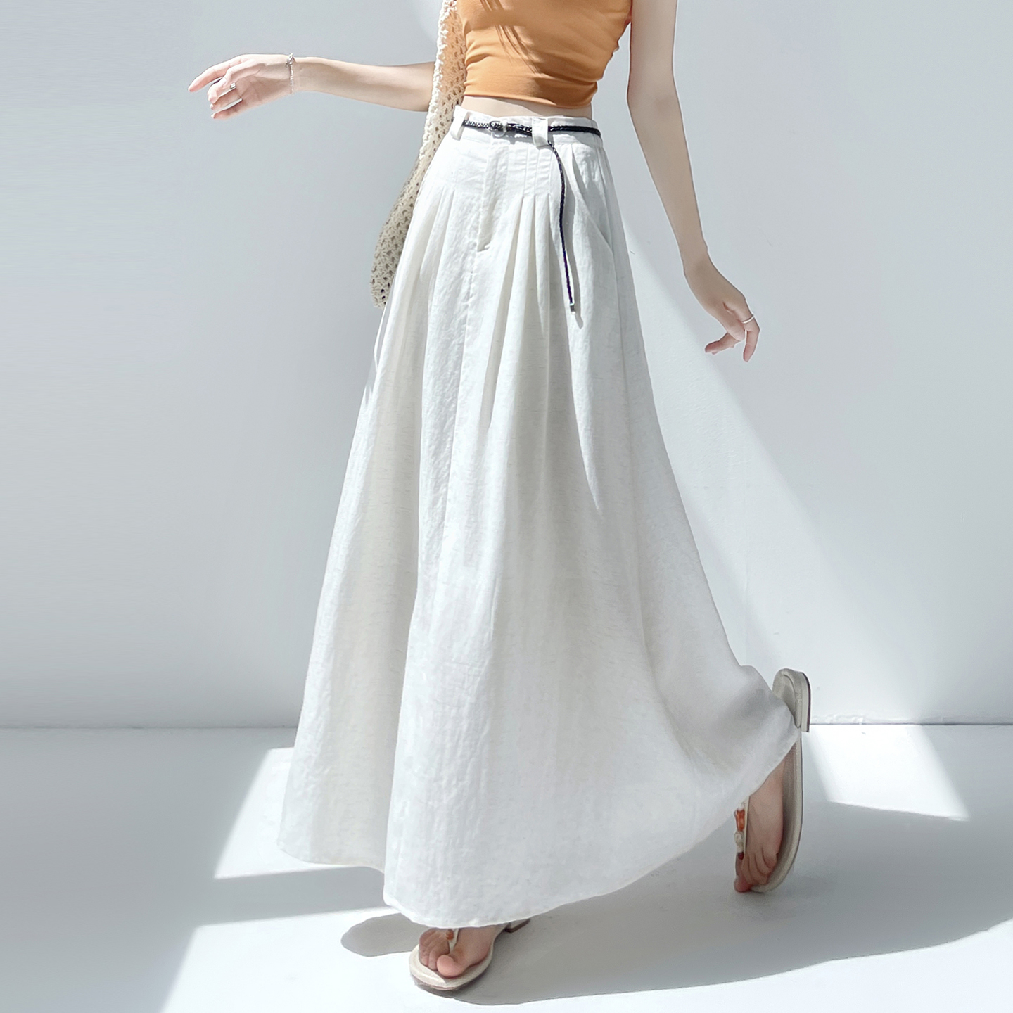 실사 2026 여름 한 부서 표지 넓적 다리 슬림해 보이는 짜임 벨트 디자인 중간 길이 면 린넨 도루 센스 한 마디 반신 스커트 우산 치마