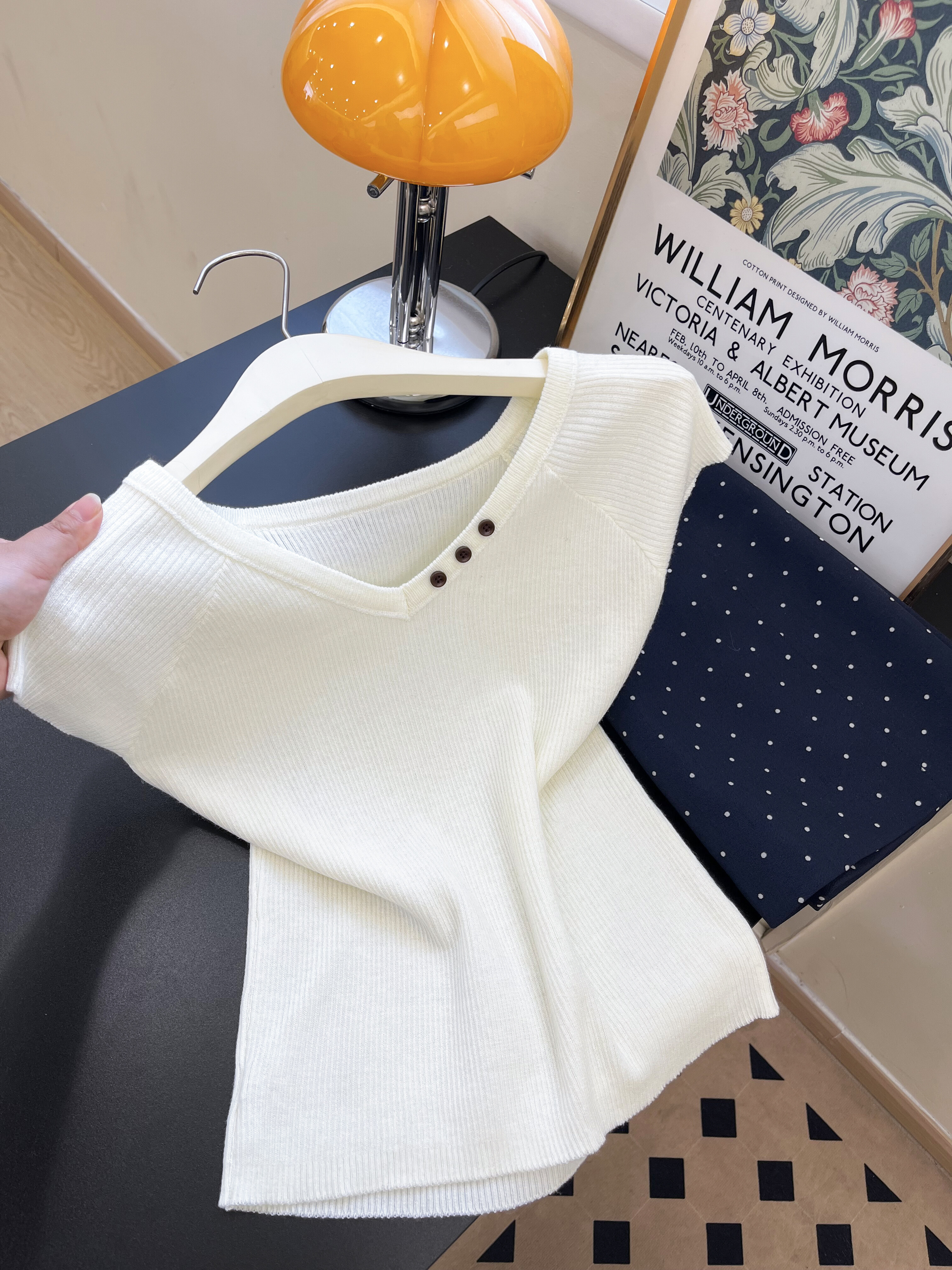 있음 도착 한국 스타일 비스듬한 어깨 니트 스웨터 여성 2026 여름 몸매 가꾸기 슬림해 보이는 반팔 맨위 Chic
