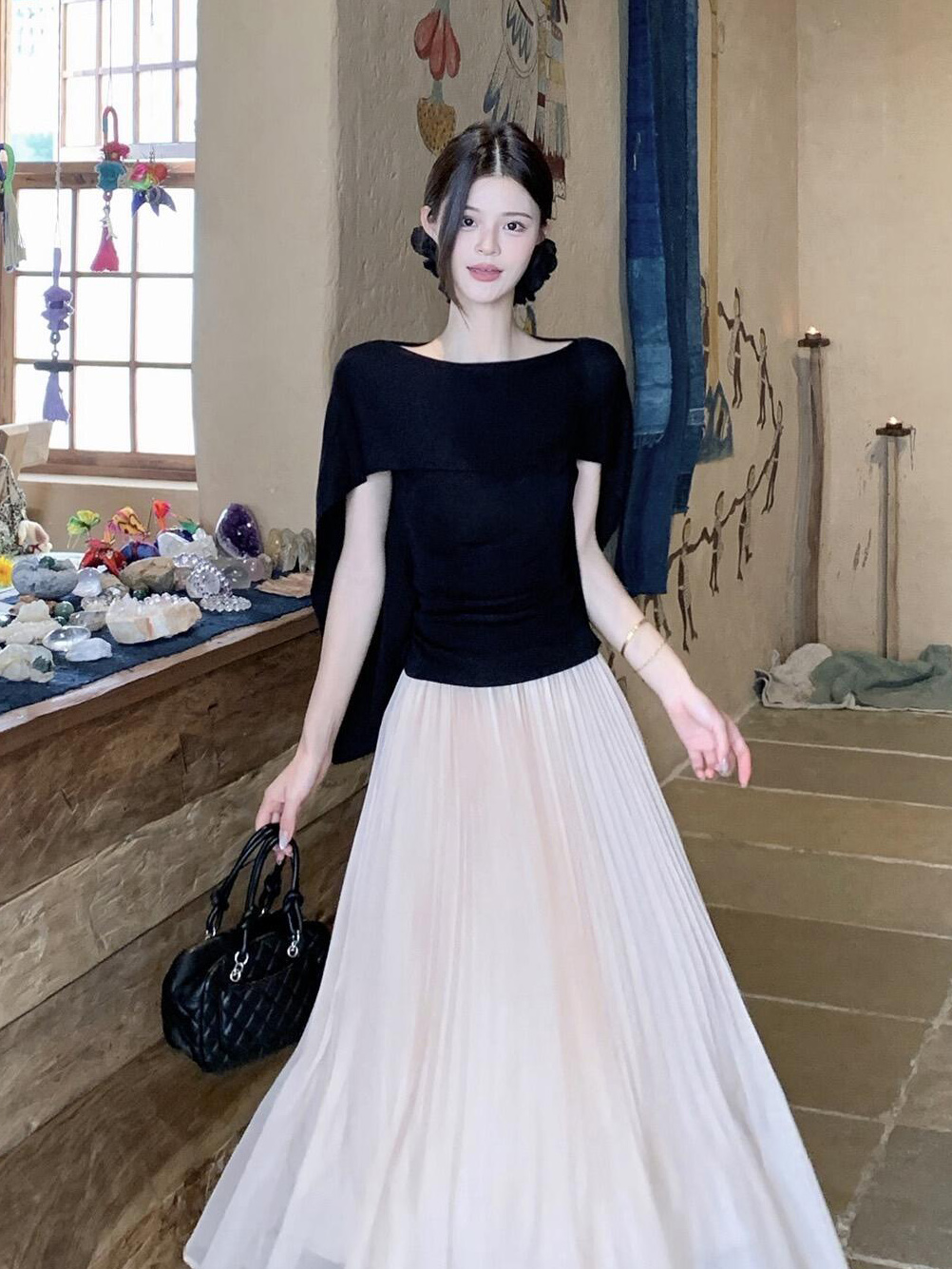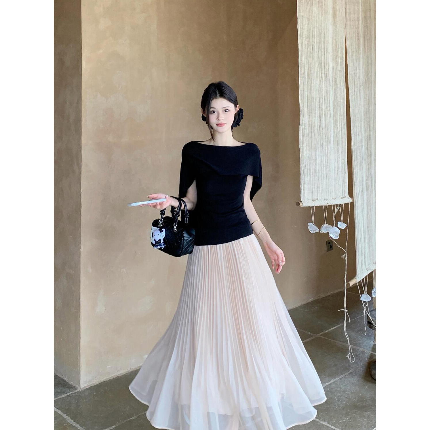 있음 도착 부드러운 치엥 여름 한 부서 여신 망토 디자인 센스 슬림해 보이는 얼음 센스 품격