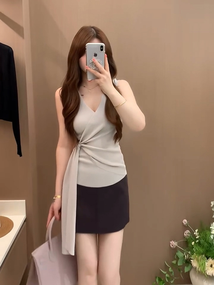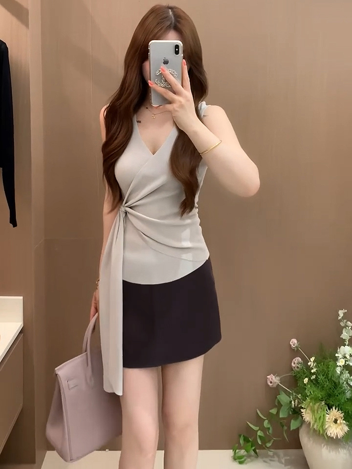 있음 도착 여름 새로운 한 부서 외국 가스 십자가 디자인 센스 V넥 다용도 슬림해 보이는 니트 조끼