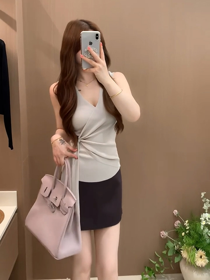 있음 도착 녹색 행침 목 작은 슬링 조끼 여성 여름 핫걸 착용 가져 가라. 디자인 센스 외출용 민소매 아름다움 뒤쪽에 의류