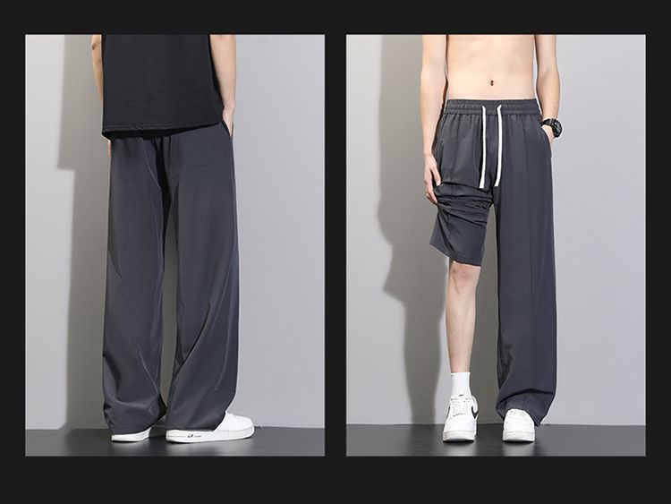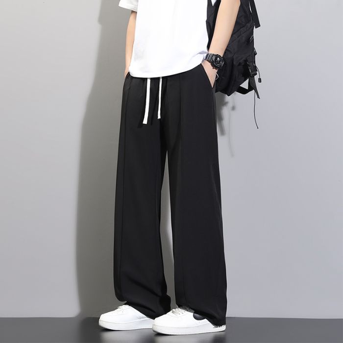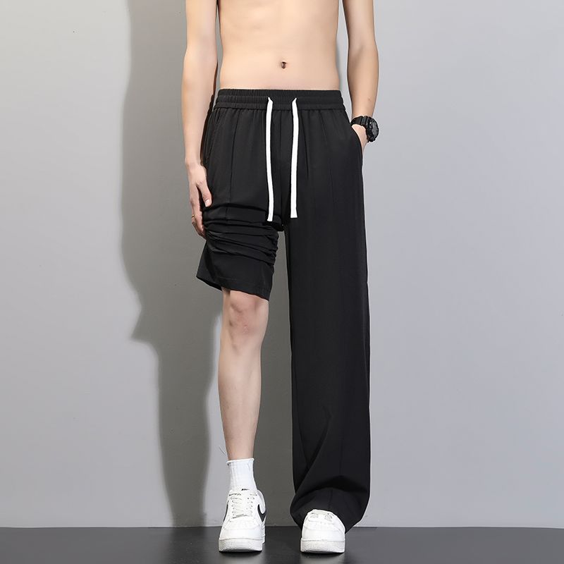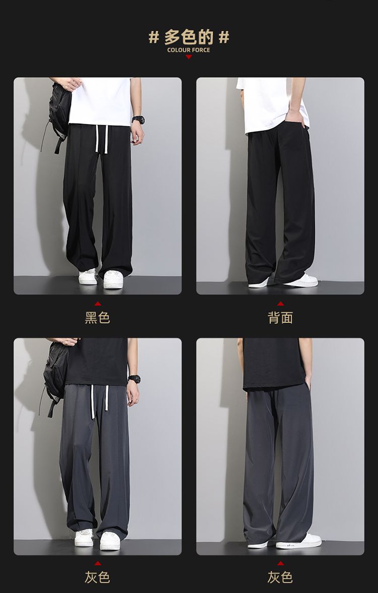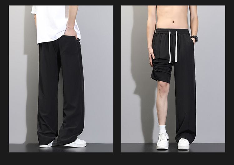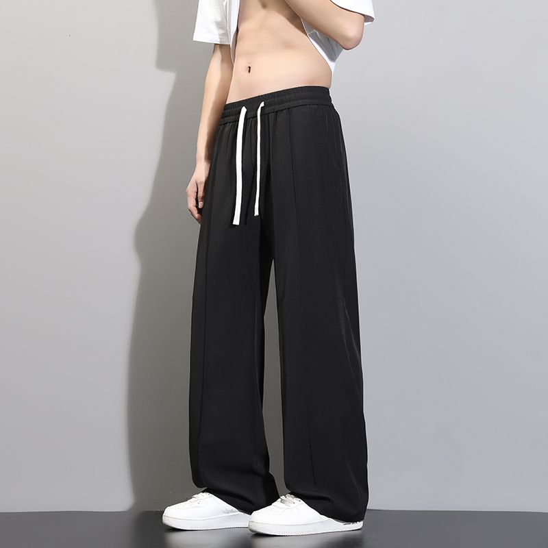 바지 검정색 루즈핏 긴 바지 남성 스트레이트 여름 얼음 실크 운동 캐주얼 바지 슬랙스 패션 트렌드 다용도 바지