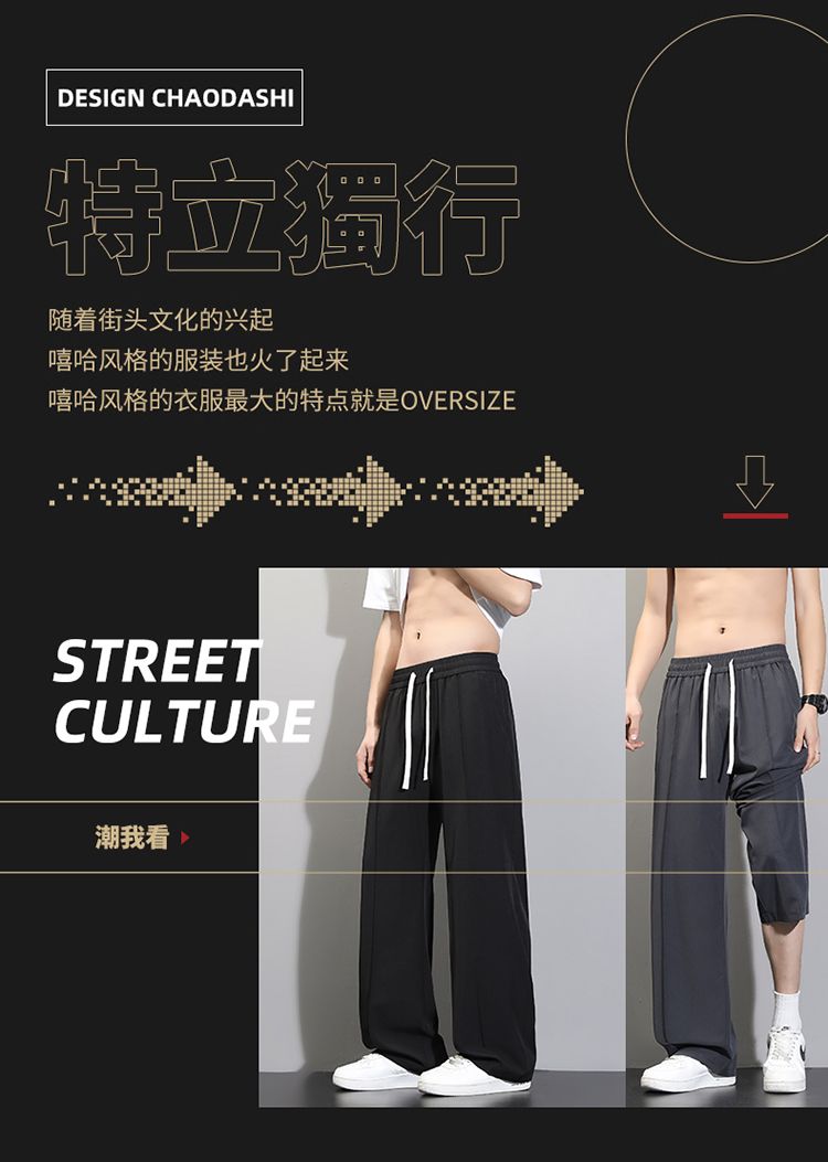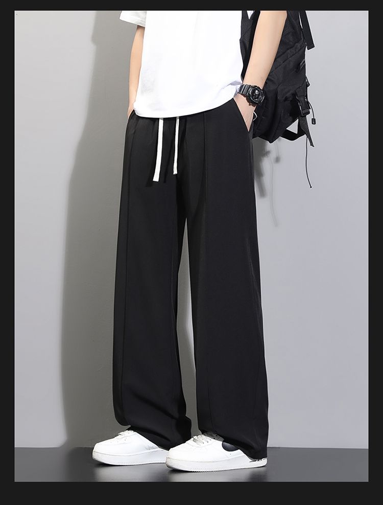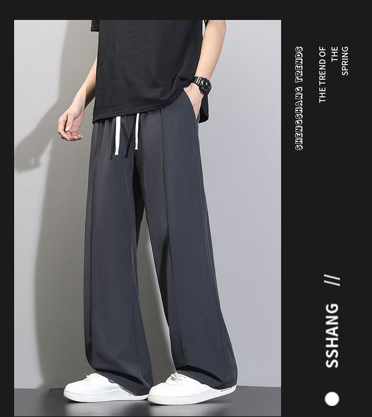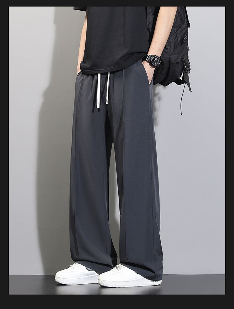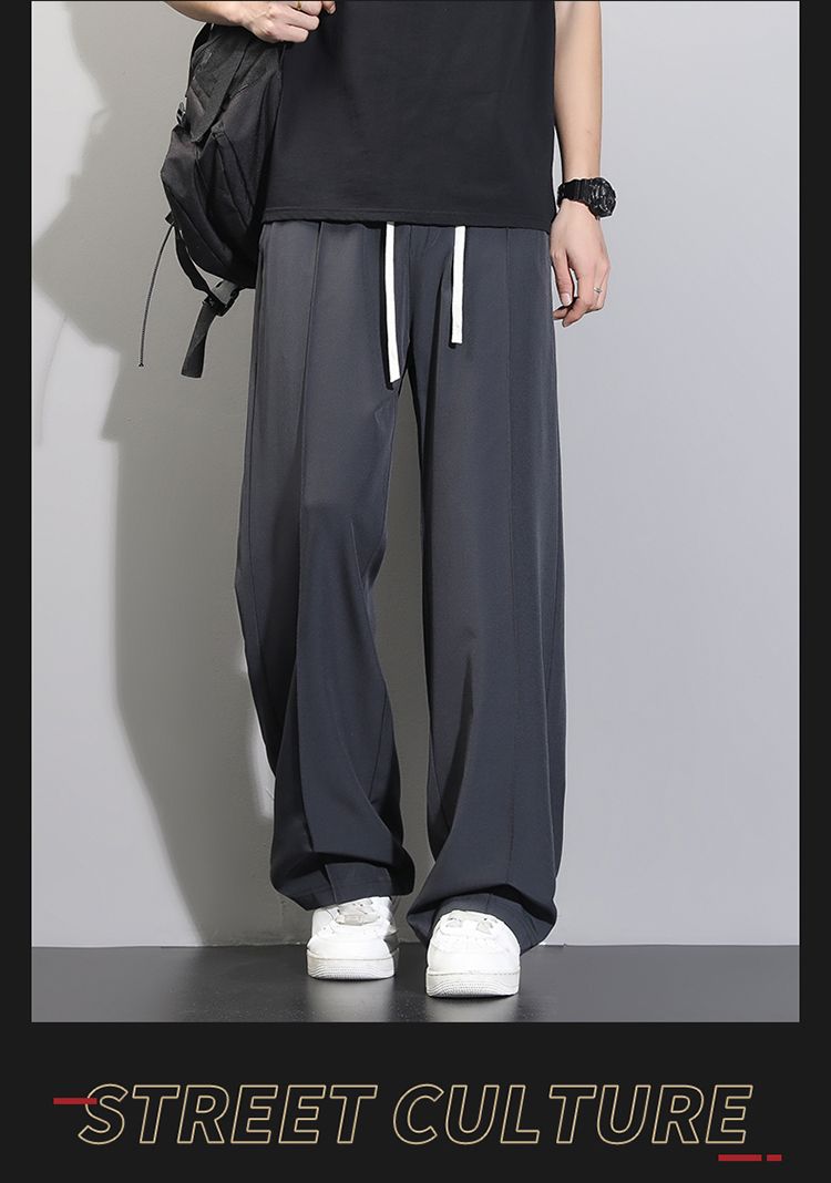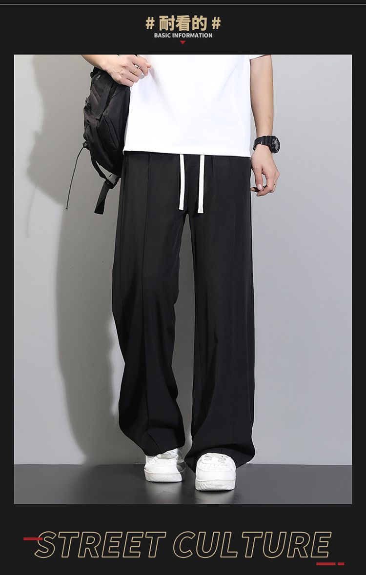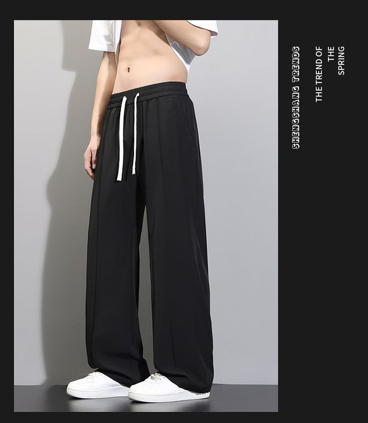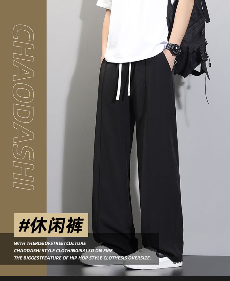 라이 경기 서울 주간 실크 아메리칸 남성 캐주얼 바지 봄 여름 새로운 도루 센스 루즈핏 스트레이트 캐주얼 조수 브랜드 와이드 레그 팬츠