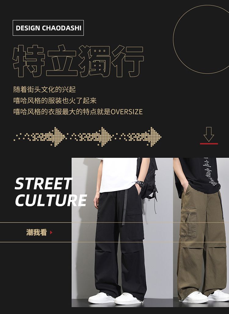 조수 브랜드 루즈핏 남성 캐주얼 카드 워크웨어 팬츠 ins 다용도 스트레이트 운동 낙하산 병 바지 펌프 로프 요금 캐주얼 바지