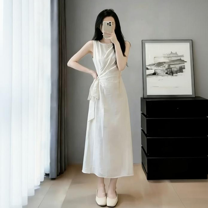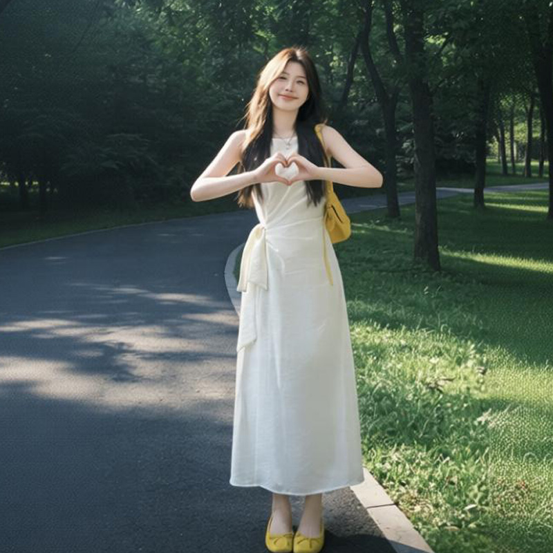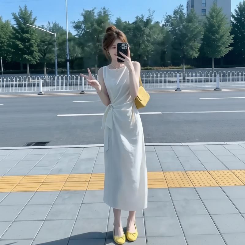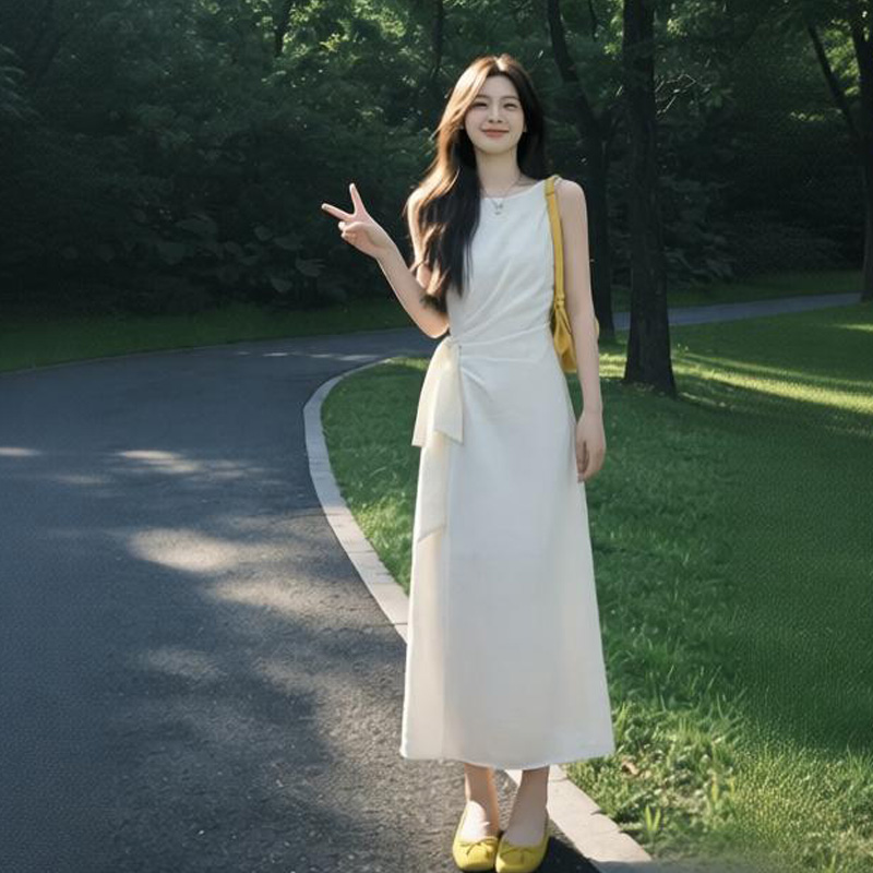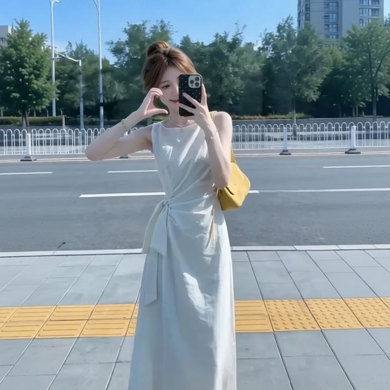프랑스식 화이트 민소매 조끼 원피스 아이들 여름 2026 새로운 작은 키 아름다운 아름다운 허리 수축 롱 스커트