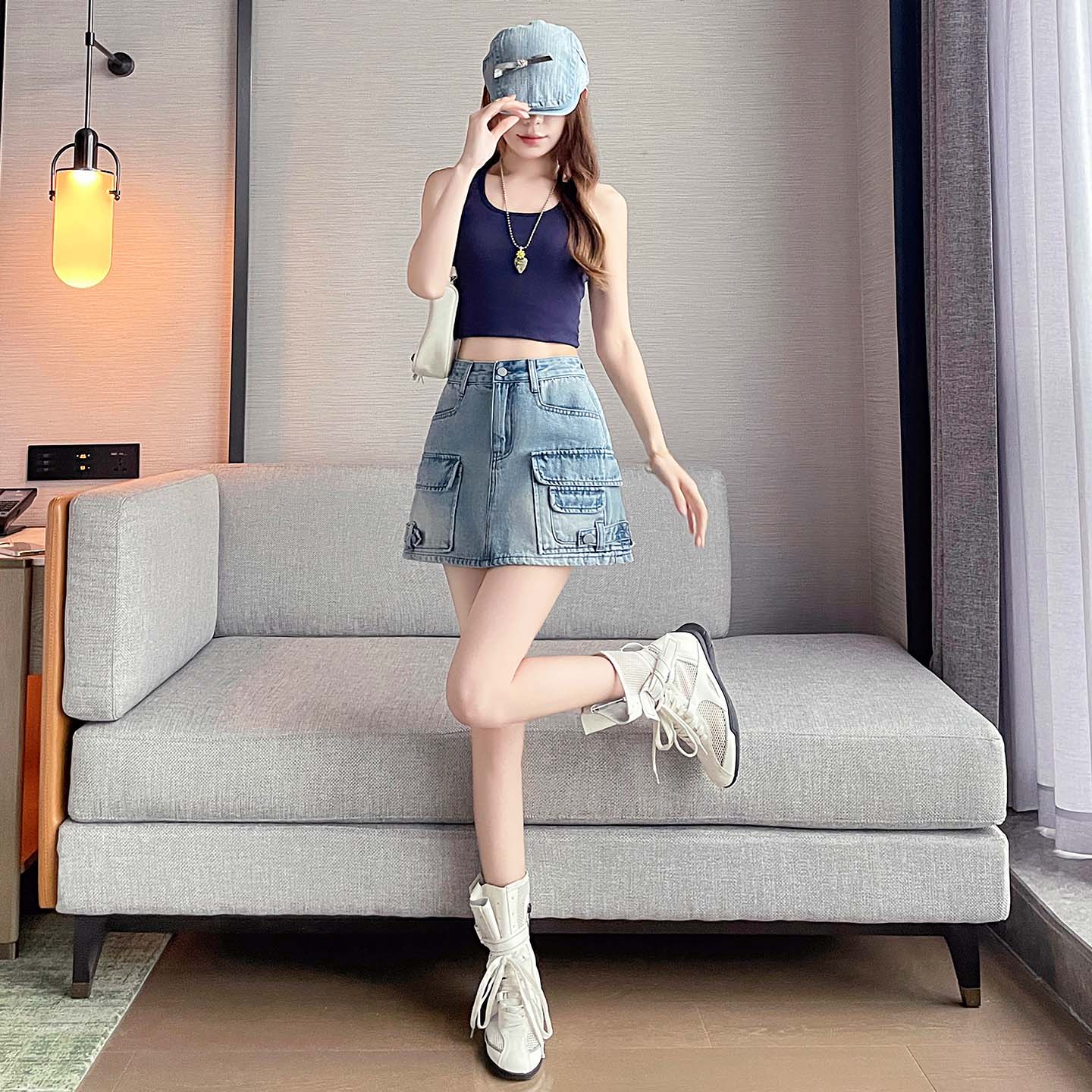 실사 레트로 워크웨어 바람 데님 미니 스커트 여성 여름 새로운 인기 하이웨이스트 핫걸 한 마디 타이트 스커트 반신 스커트 여성