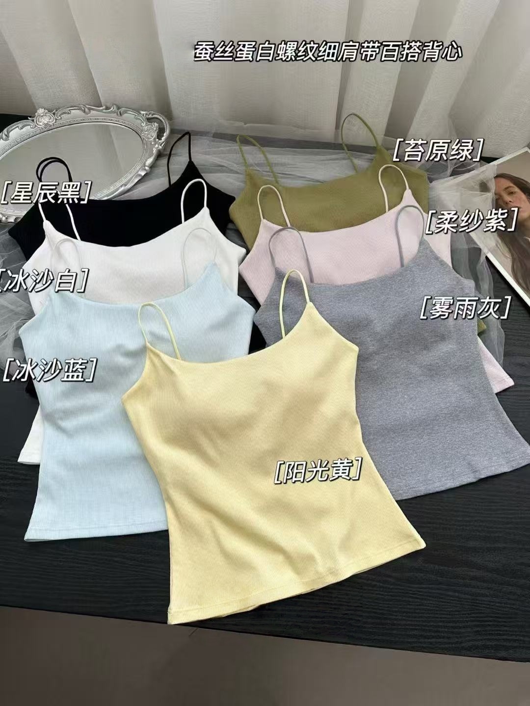 26 년 봄 여름 새로운 없음 흔적 알몸의 센스 얼음 실크 십자가 아름다움 뒤로 슬립 좋은 어깨끈 조절 가능 축제 나만의 것을 가져와 라. 가슴 패드 조끼