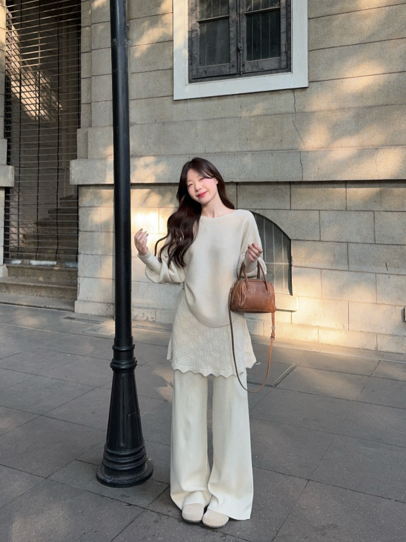 wu11 오리지널 다용도 라운드 넥 루즈핏 반팔 티셔츠 허리 인감 높은 허리 바지 패션 3종 세트