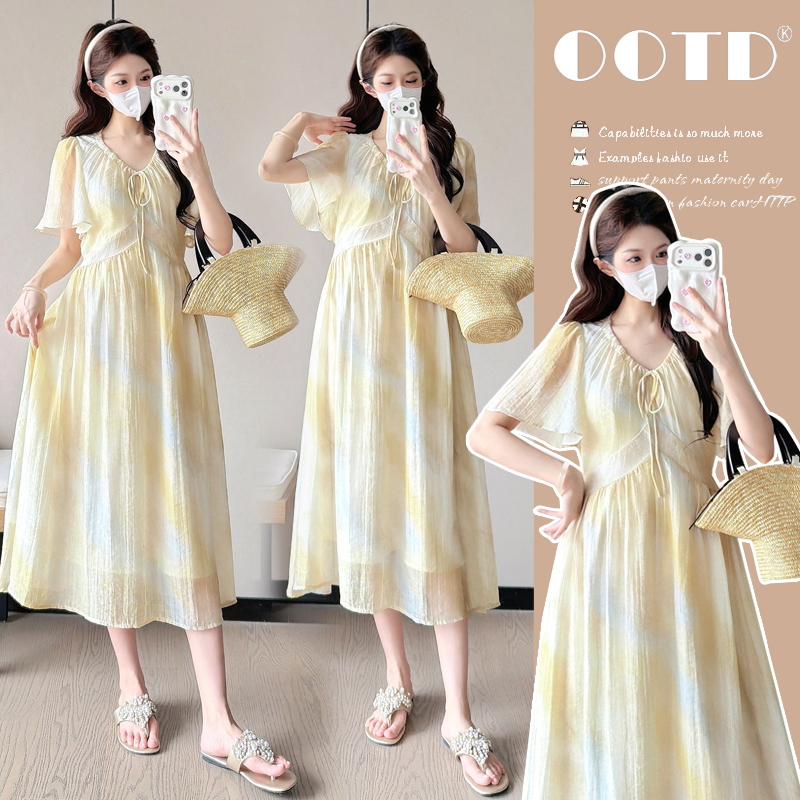 실사 2026 출산 착용 여름 새로운 V넥 프랑스식 슬림해 보이는 품격 드레스