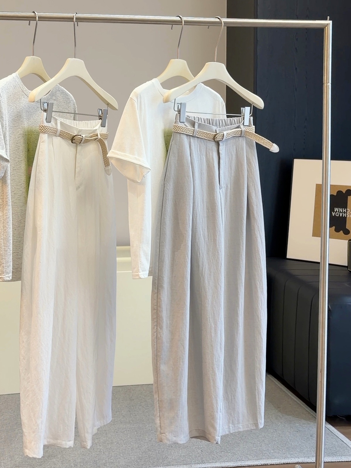 얼음 실크 아마 모통이 칼 와이드 레깅스 바지 여름 얇은 스타일 2026 새로운 폭발 루즈핏 슬림해 보이는 캐주얼 낫 바지