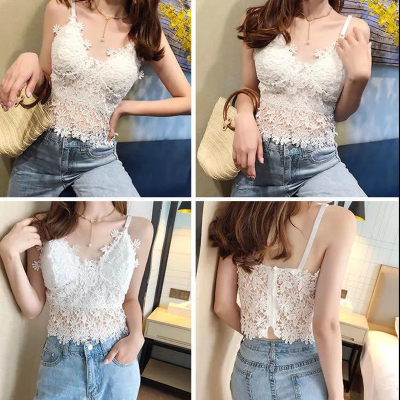 순수한 욕망 레이스 꽃무늬 작은 슬링 조끼 여성 외출용 트렌드 인사이드 가져 가라. 타이트 슬림해 보이는 핫걸 만나는 맨위 아름다움 뒤로
