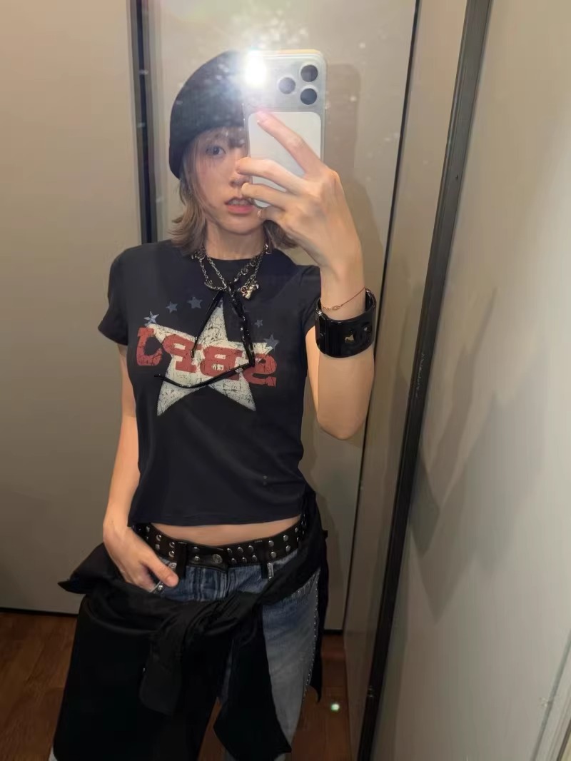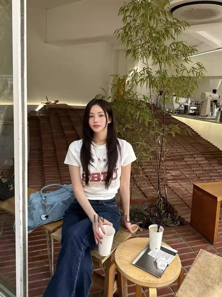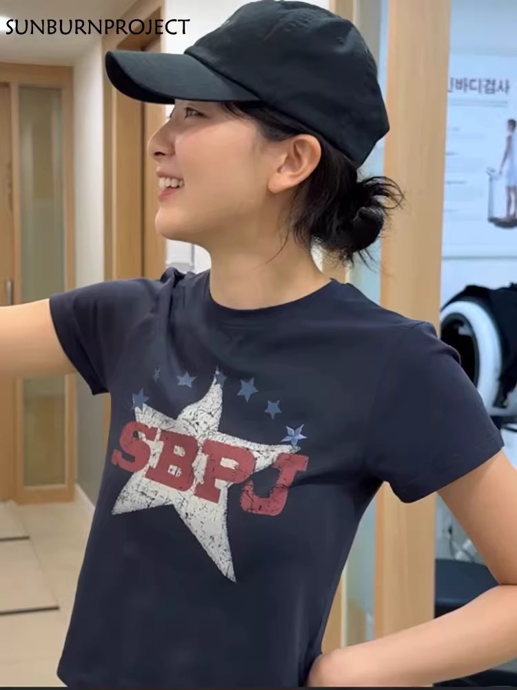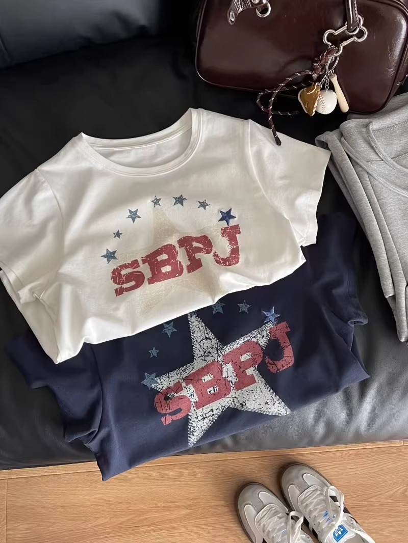 2026 년 한국 대외 무역 주문 캐주얼 패션 92 면 8 암모니아 Lun 긍정적 인 어깨 반팔 티셔츠 여성 프린트