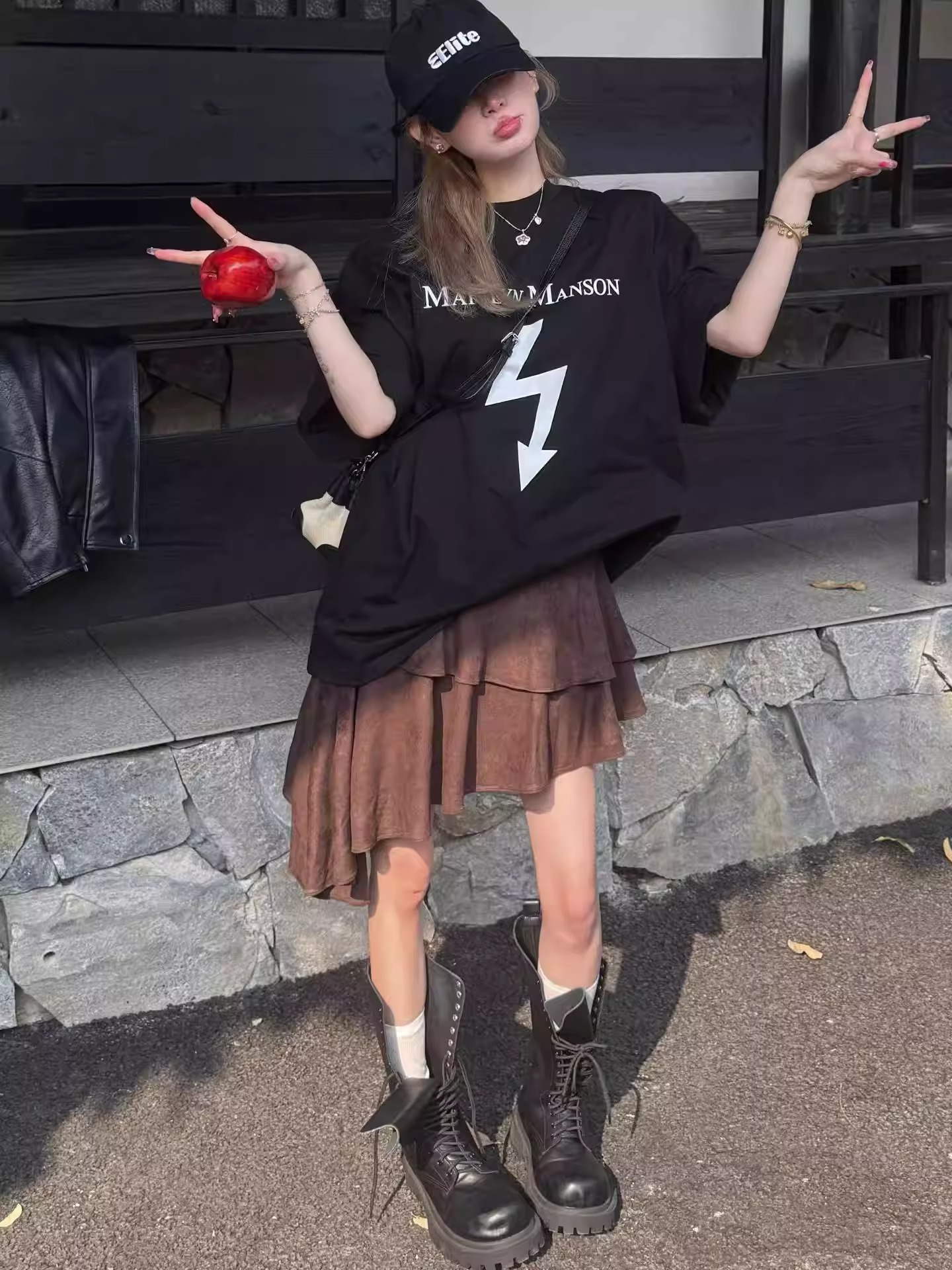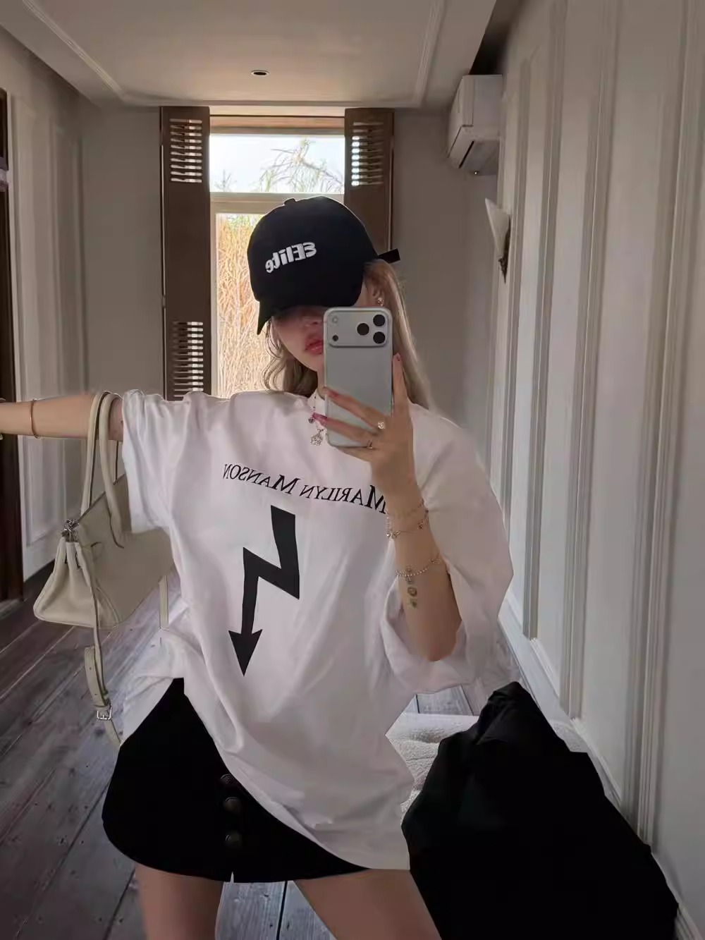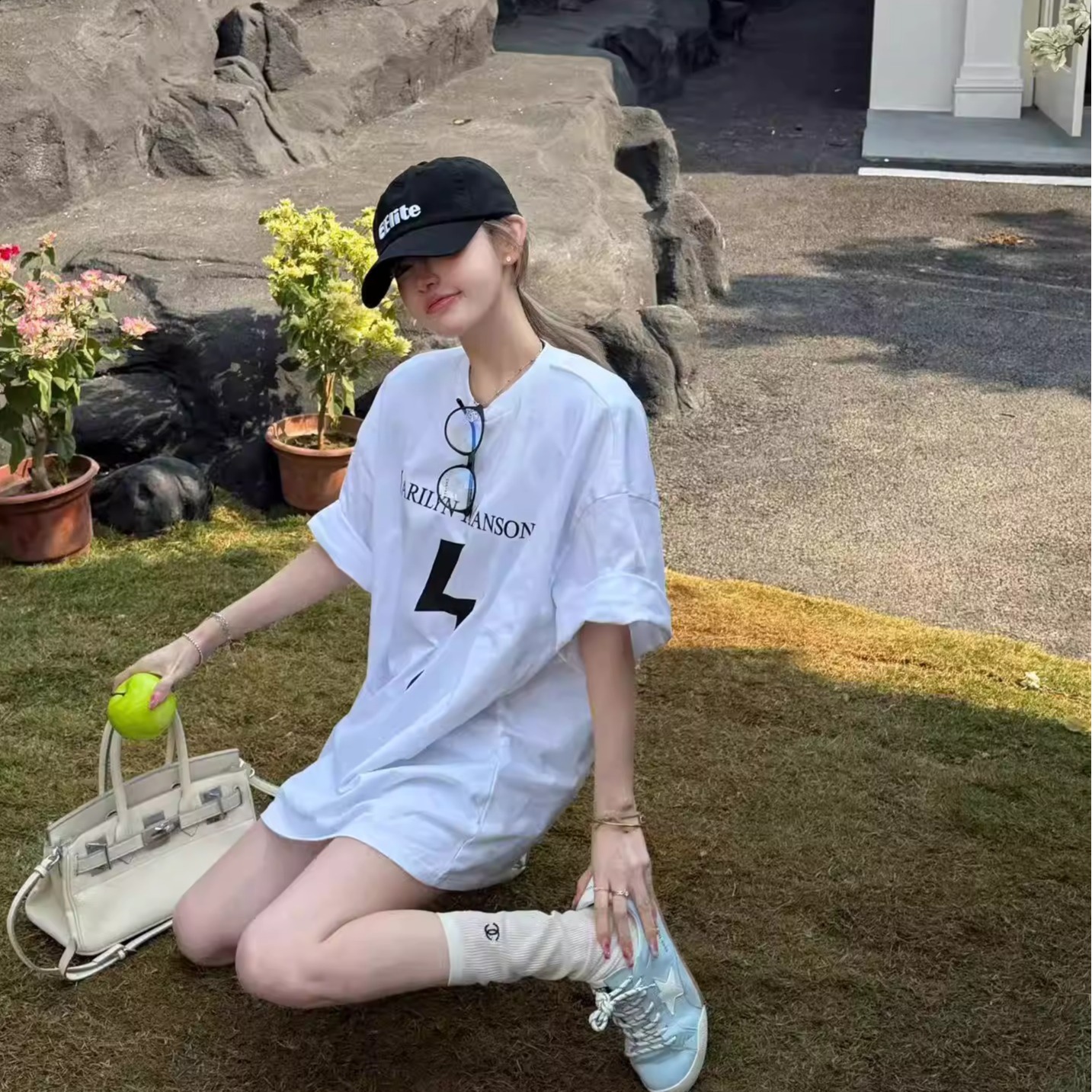 2026 한국 대외 무역 새로운 빅 사이즈 주문 루즈핏 여름 드레스 반팔 티셔츠 여성 한국 스타일 프린트
