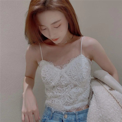 순수한 욕망 레이스 꽃무늬 작은 슬링 조끼 여성 외출용 트렌드 인사이드 가져 가라. 타이트 슬림해 보이는 핫걸 만나는 맨위 아름다움 뒤로