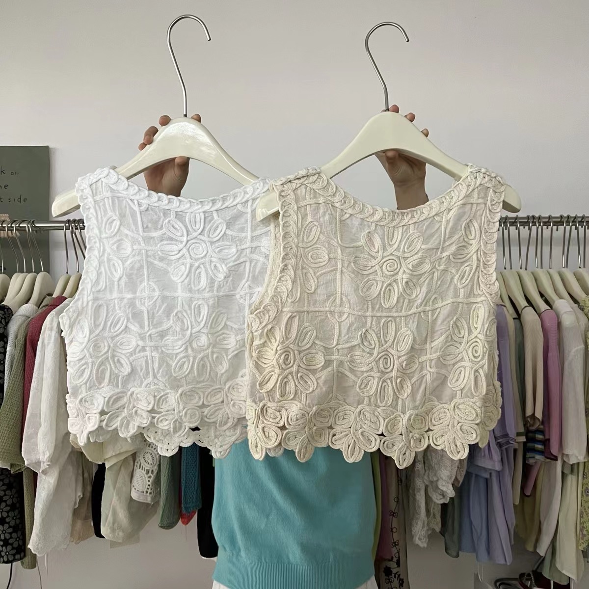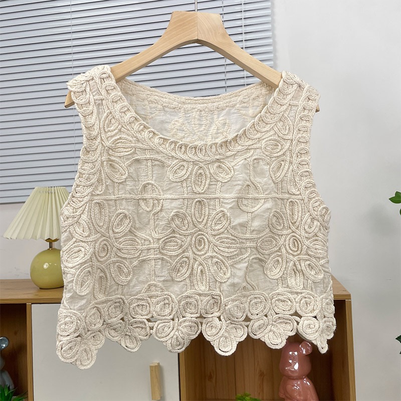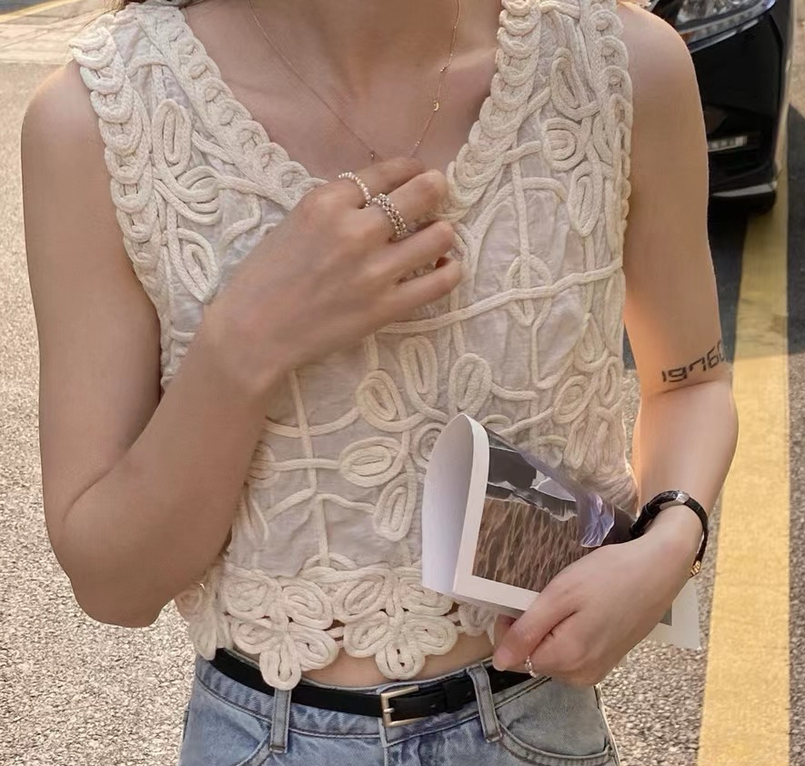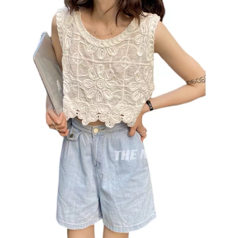한국 동대문 자수 쇼트 스타일 조끼 맨위 여성 디자인 센스 3 차원 꽃 외국 가스 민소매 맨위