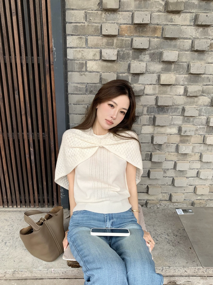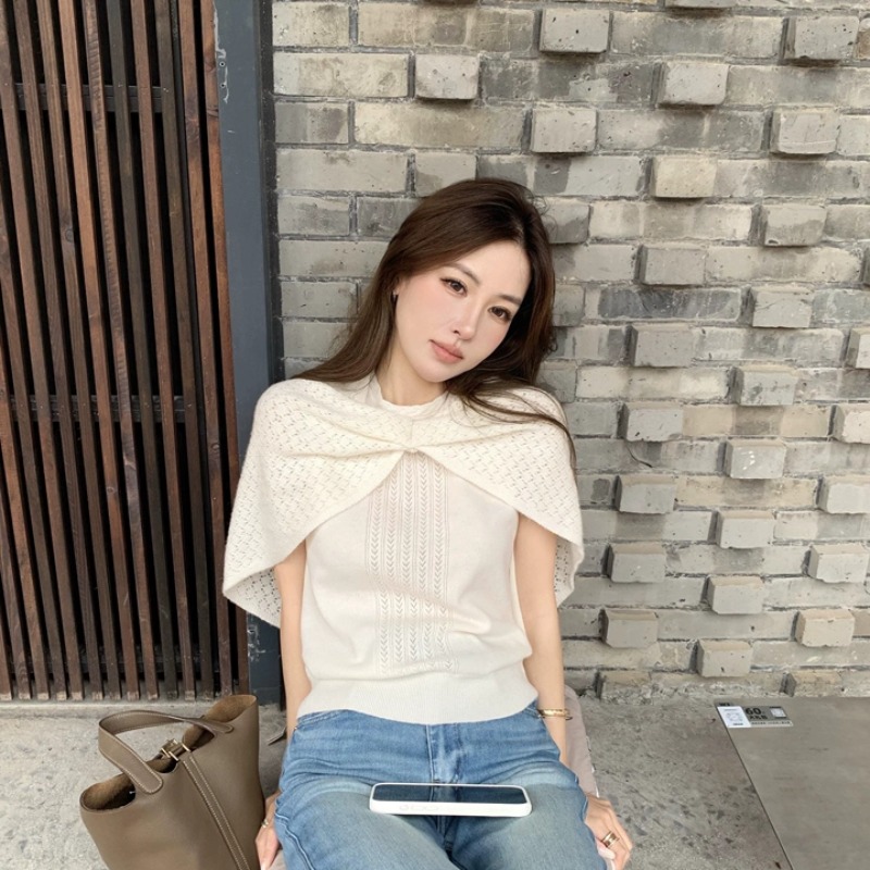 프랑스식 망토 디자인 니트 스웨터 여성 2026 년 여름 새로운 고유 한 자이언트 잘 생긴 품격 출퇴근 맨위