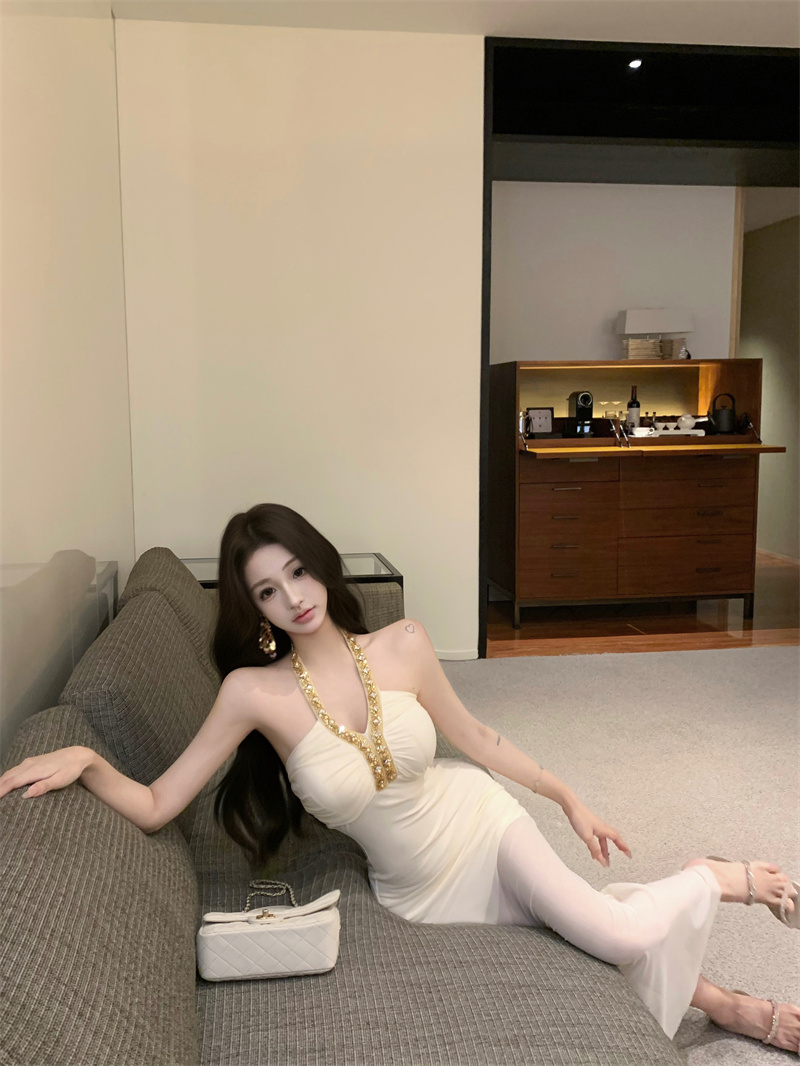 실사 핫걸 무거운 작업 명문 여성 고급 몸매 가꾸기 슬림해 보이는 순수한 욕망 섹시함 롱 코트 행침 보 드레스